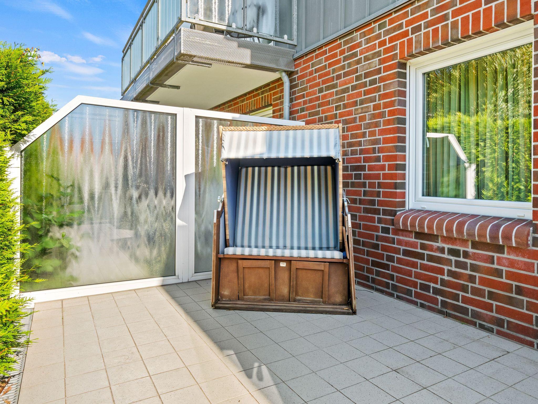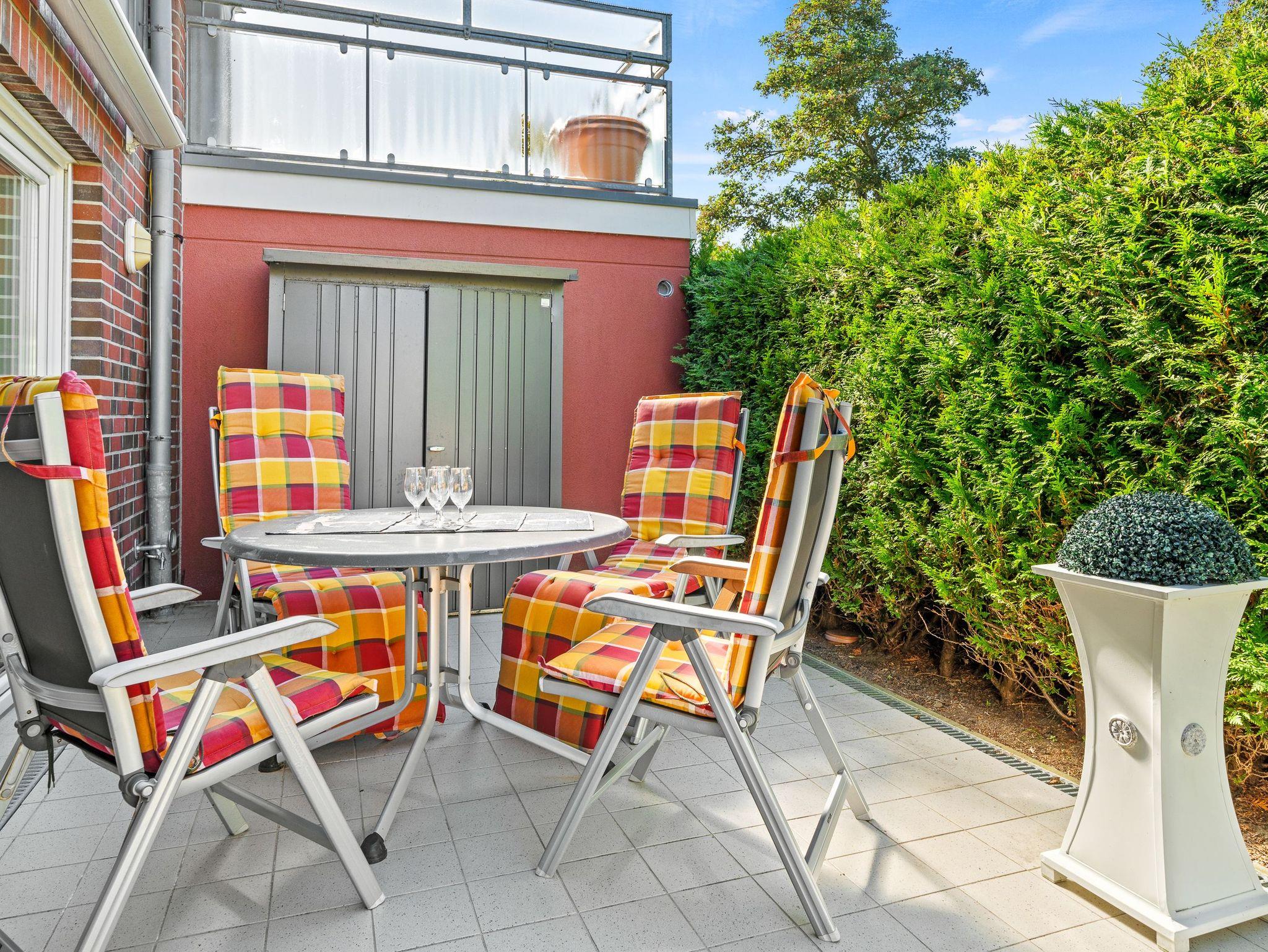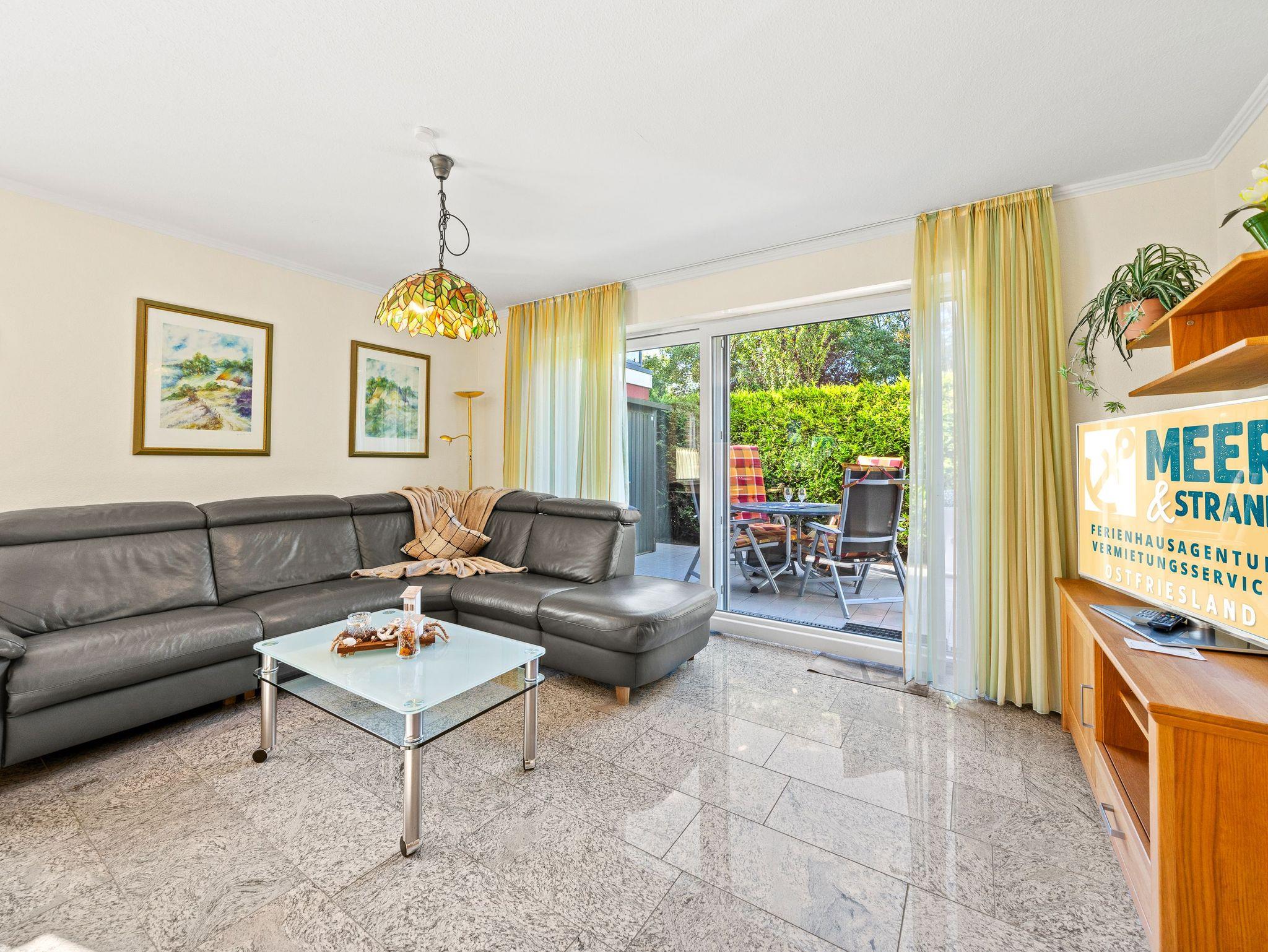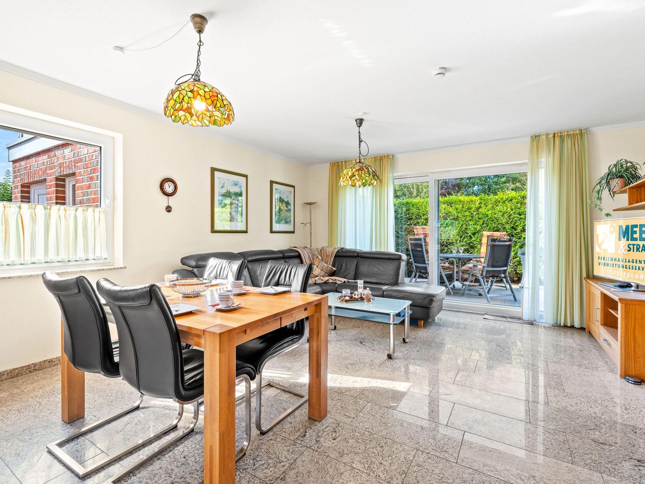 Die Ferienwohnung Ruteplate in Bensersiel bietet barrierefreien Komfort, Nähe zum Strand und eine Terrasse zum Entspannen.