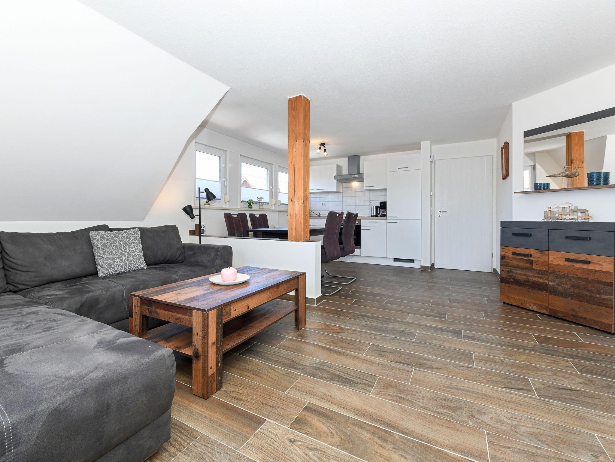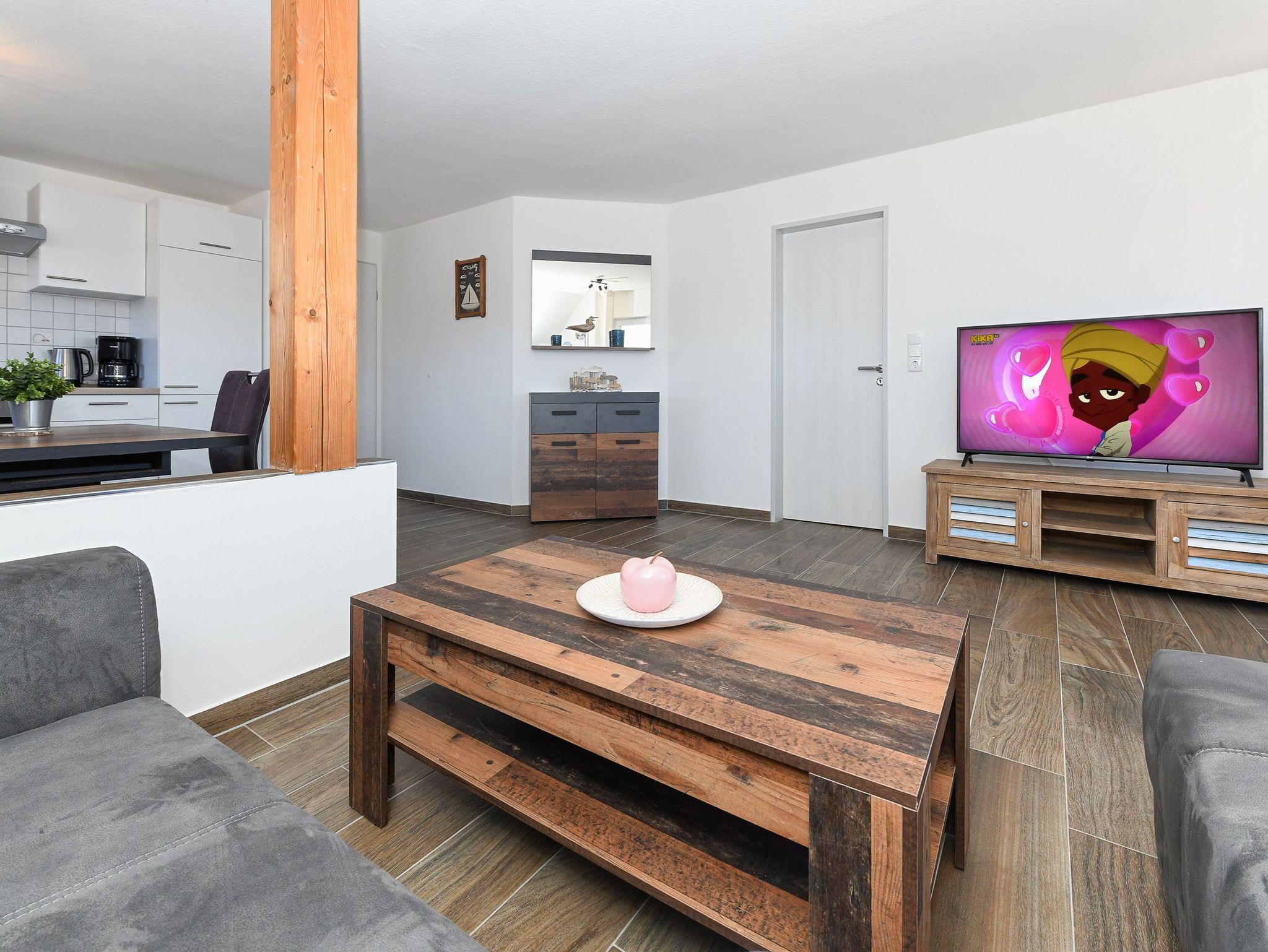 Gemütliche Ferienwohnung Robbe in Bensersiel mit voll ausgestatteter Küche und WLAN für erholsame Nordseeferien.