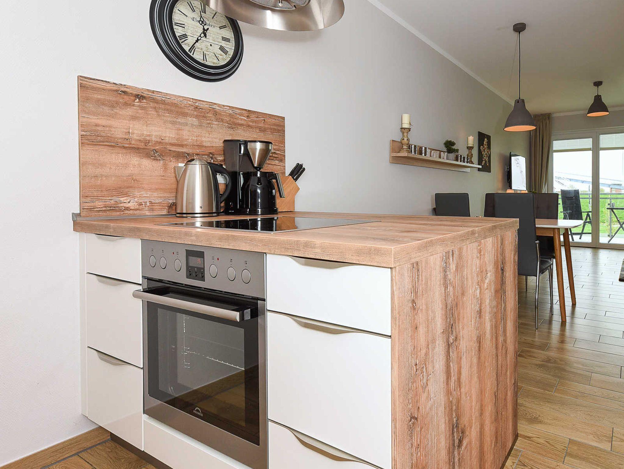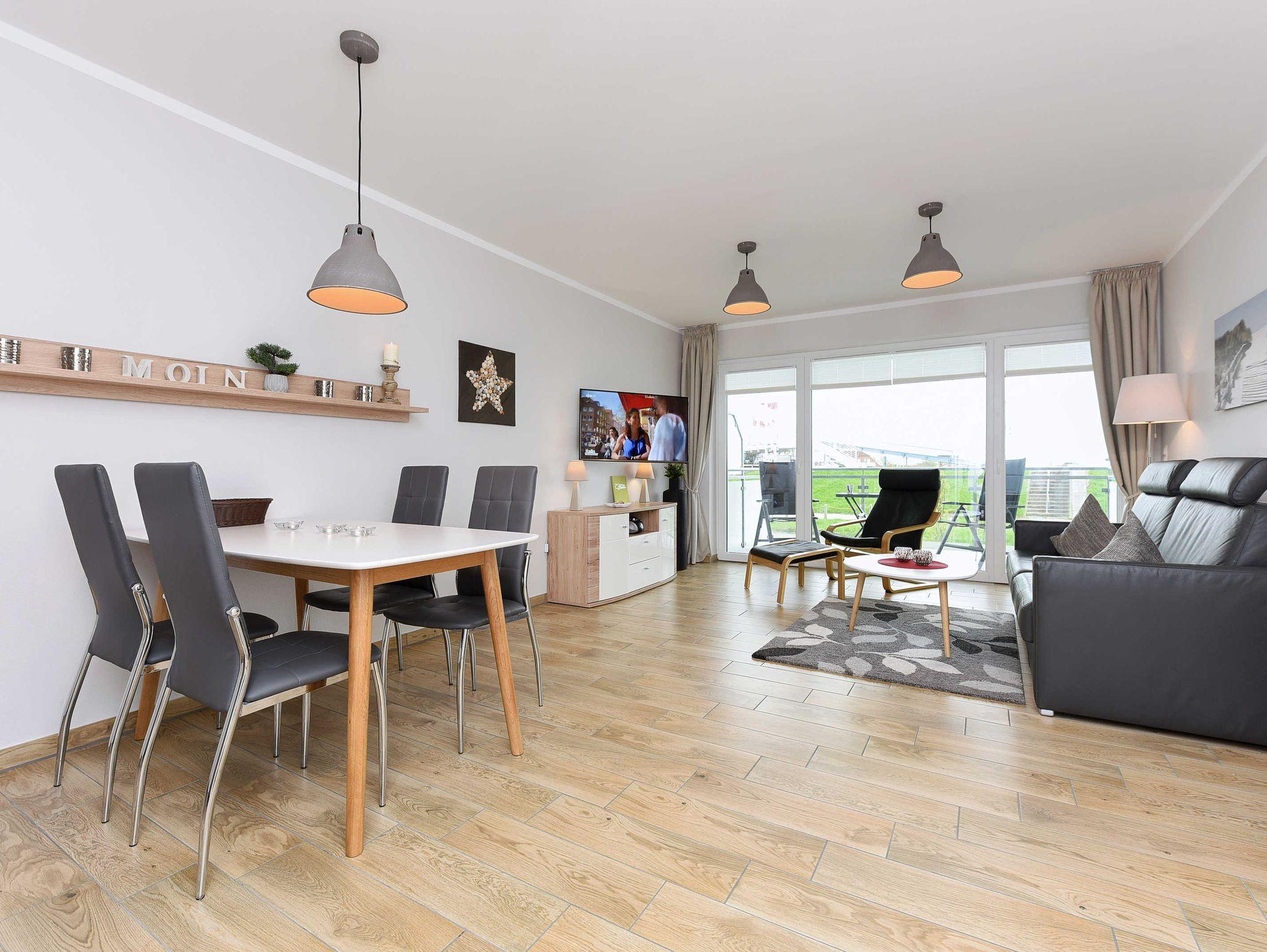 Moderne Ferienwohnung direkt am Deich mit Balkon und Blick auf den Hafen in Bensersiel.