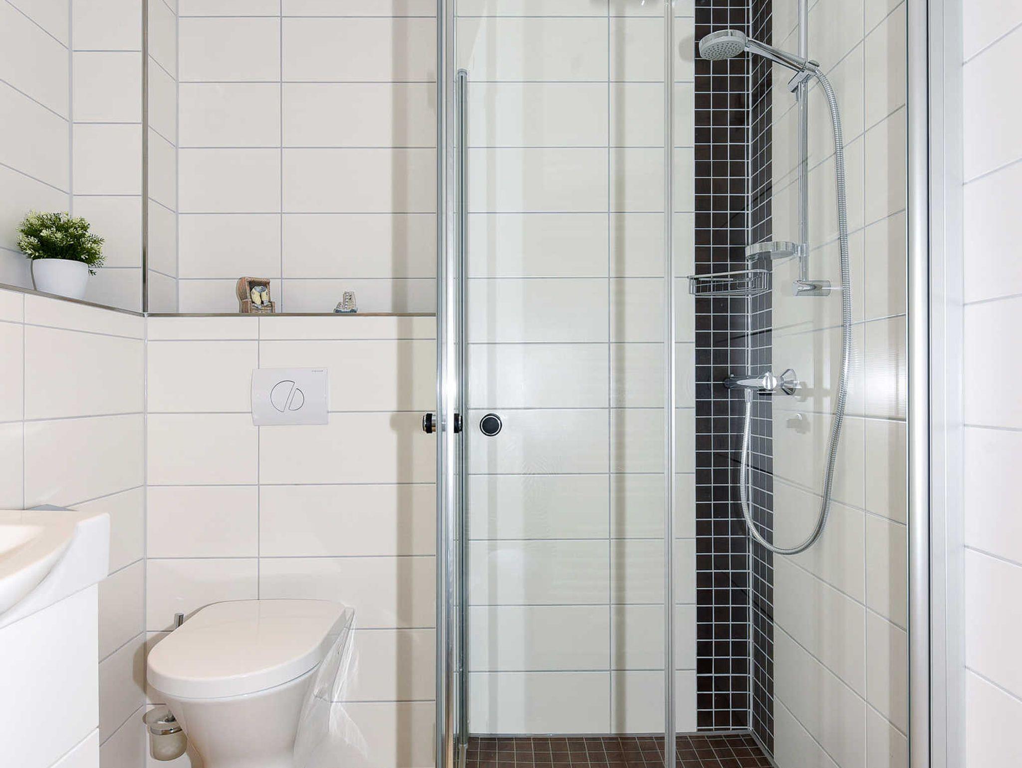 Badezimmer mit Dusche, Waschtisch und WC