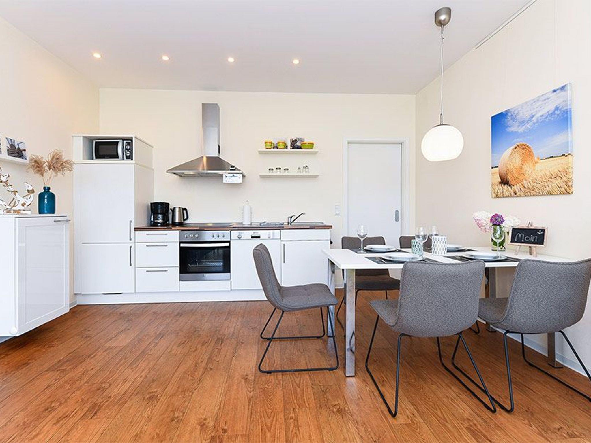 Modern eingerichtete Ferienwohnung im Haus Marenor in Bensersiel, nur 150 Meter vom Nordseedeich entfernt.