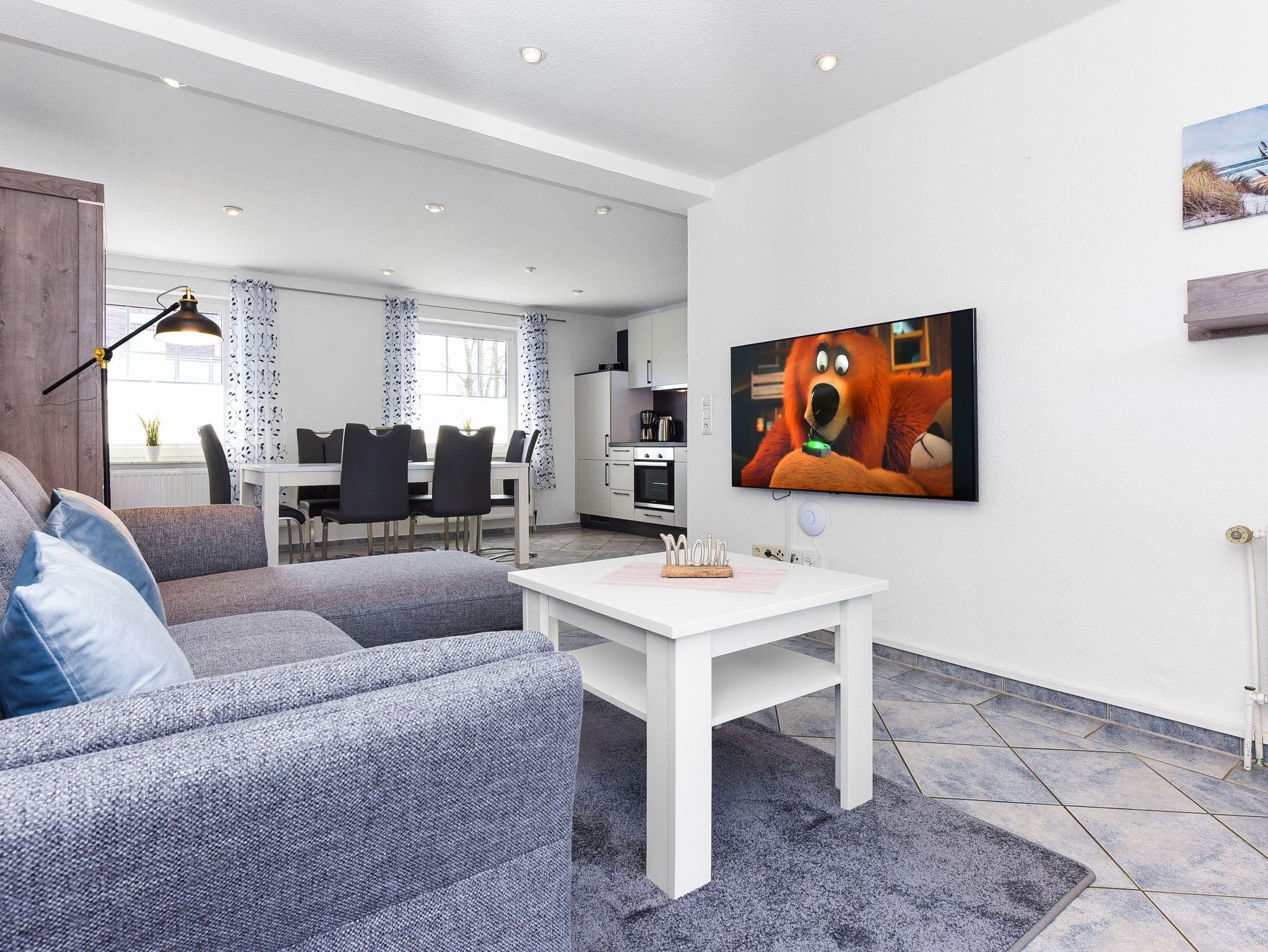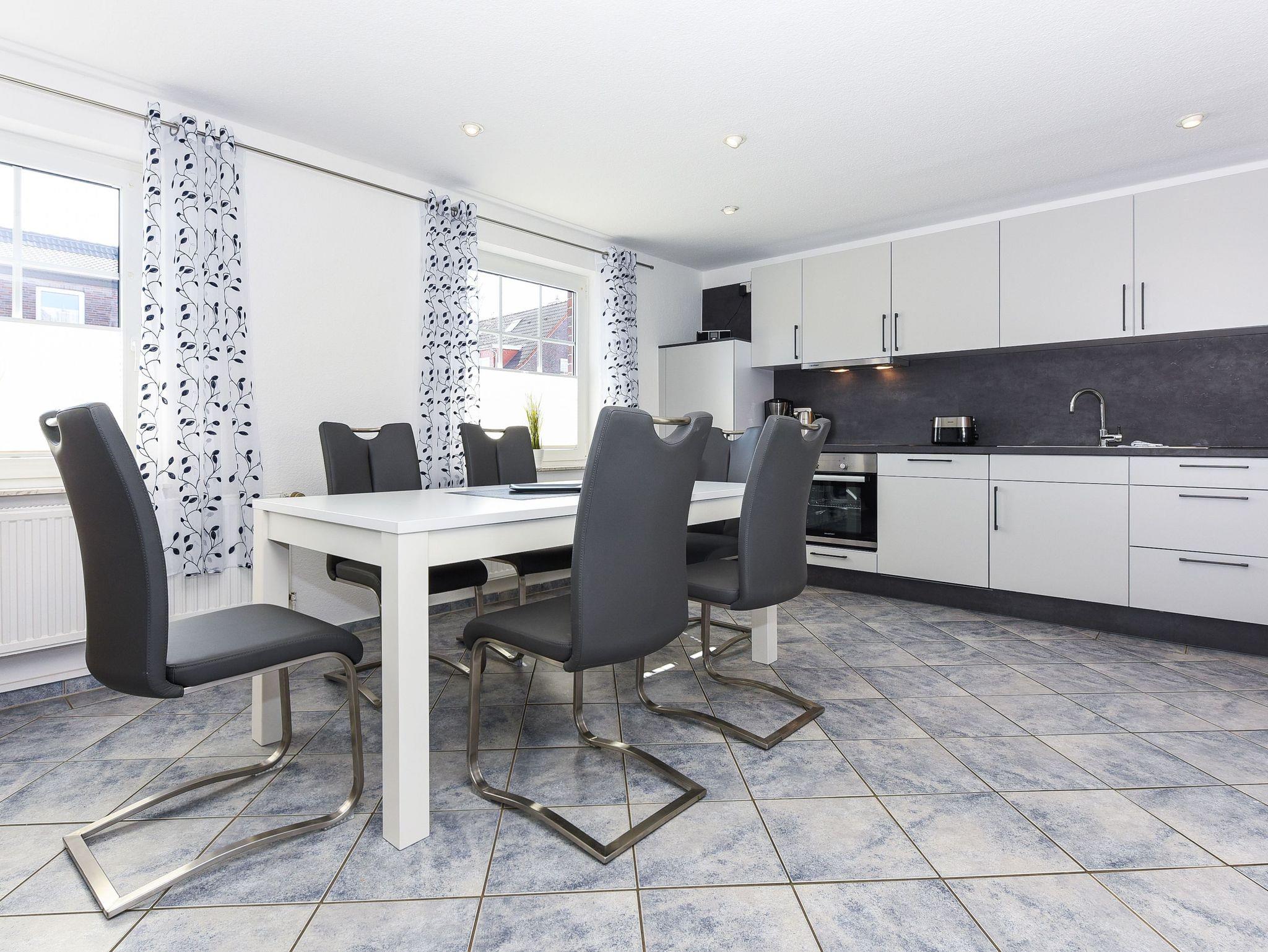 Moderne Ferienwohnung Luv in Bensersiel mit Terrasse, WLAN und drei Schlafzimmern für erholsamen Nordseeurlaub.