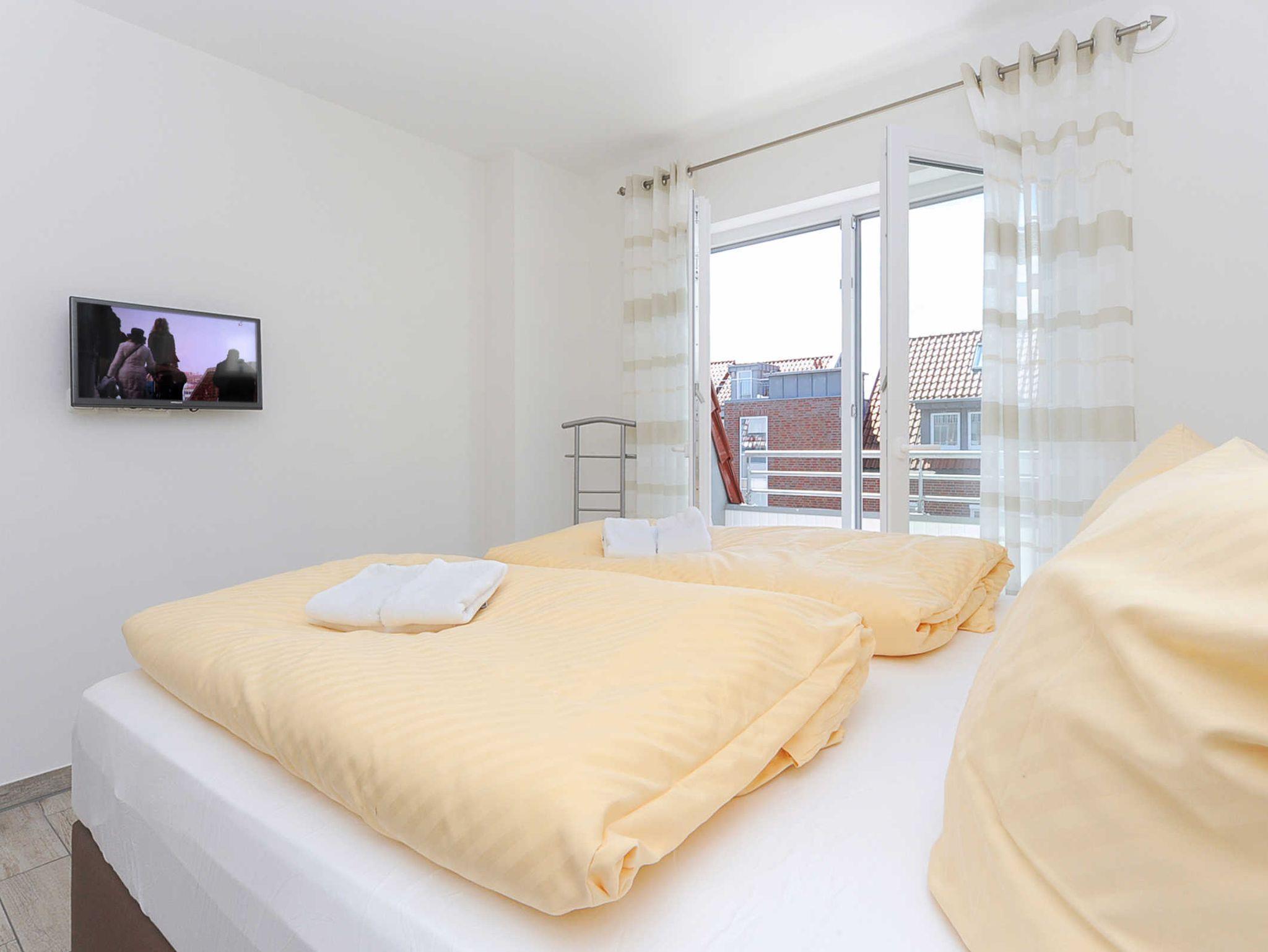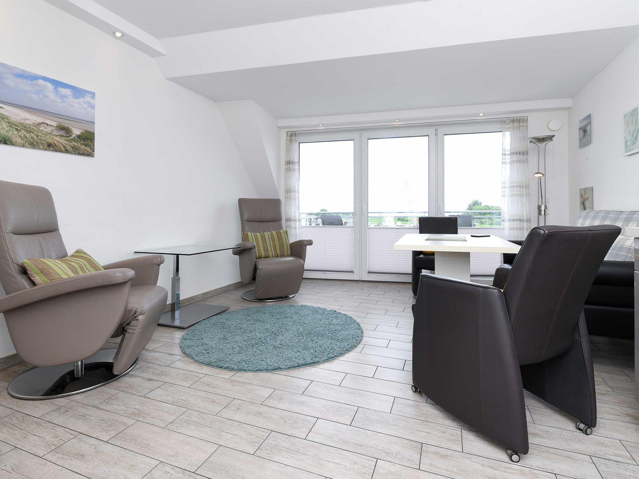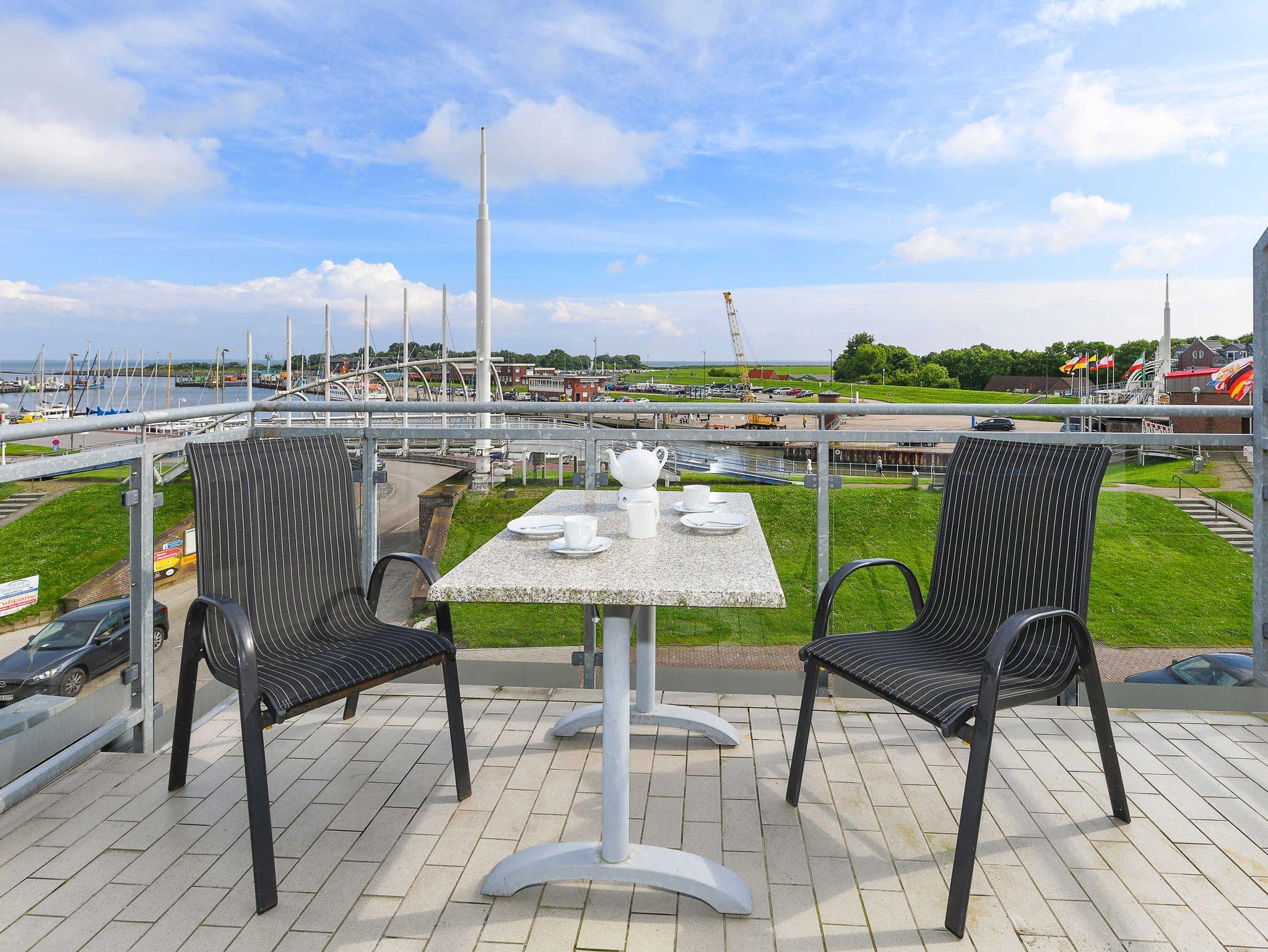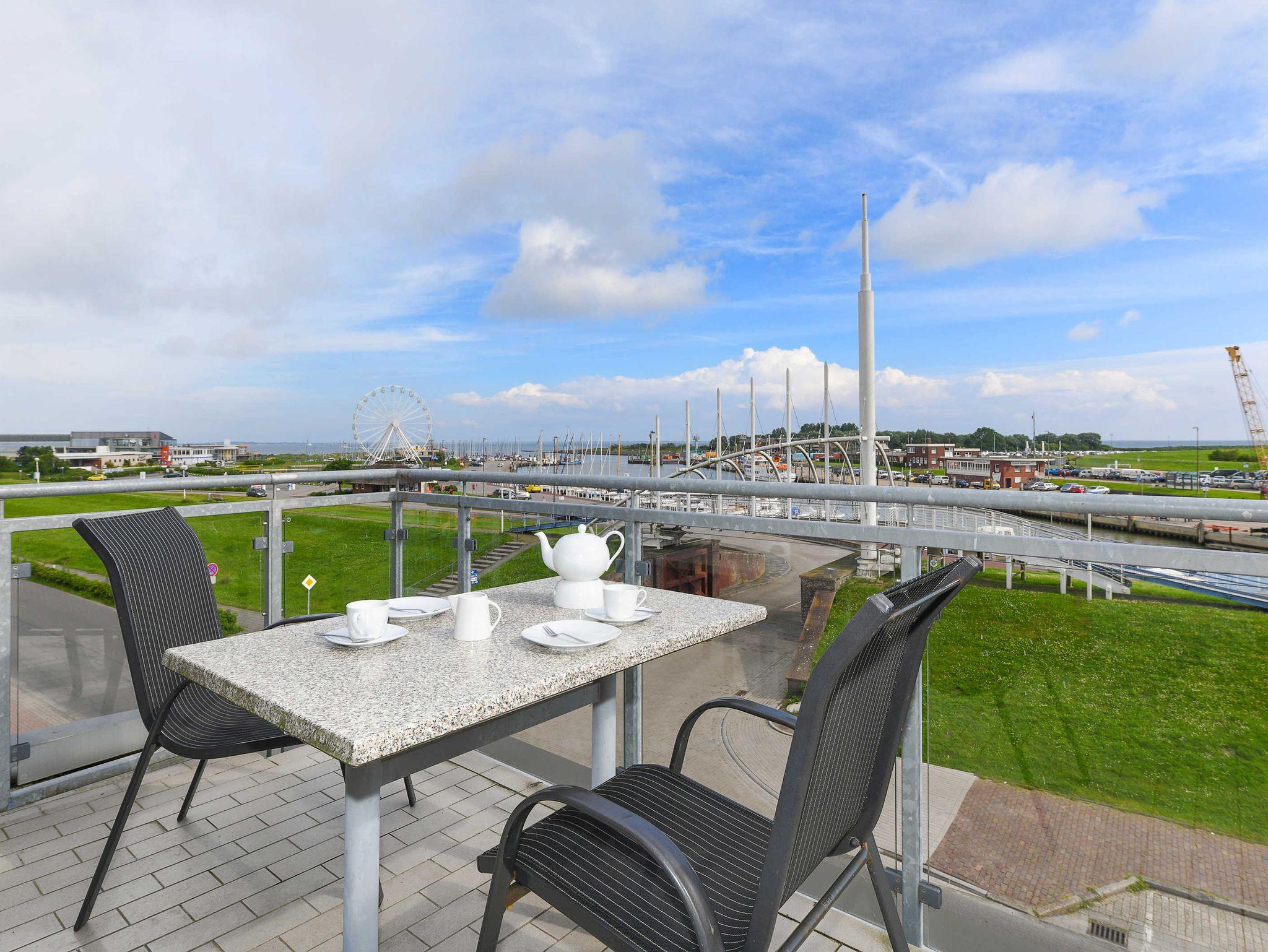 Vom Balkon aus haben Sie einen herrlichen Blick auf die Nordsee, Inseln, Strand und Hafen.