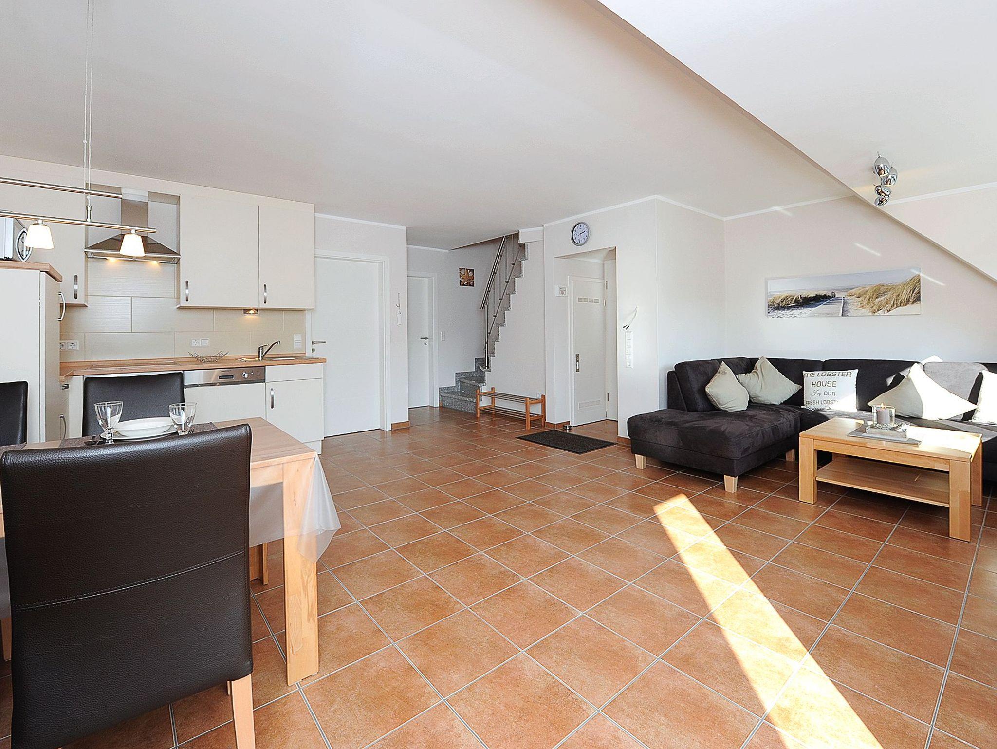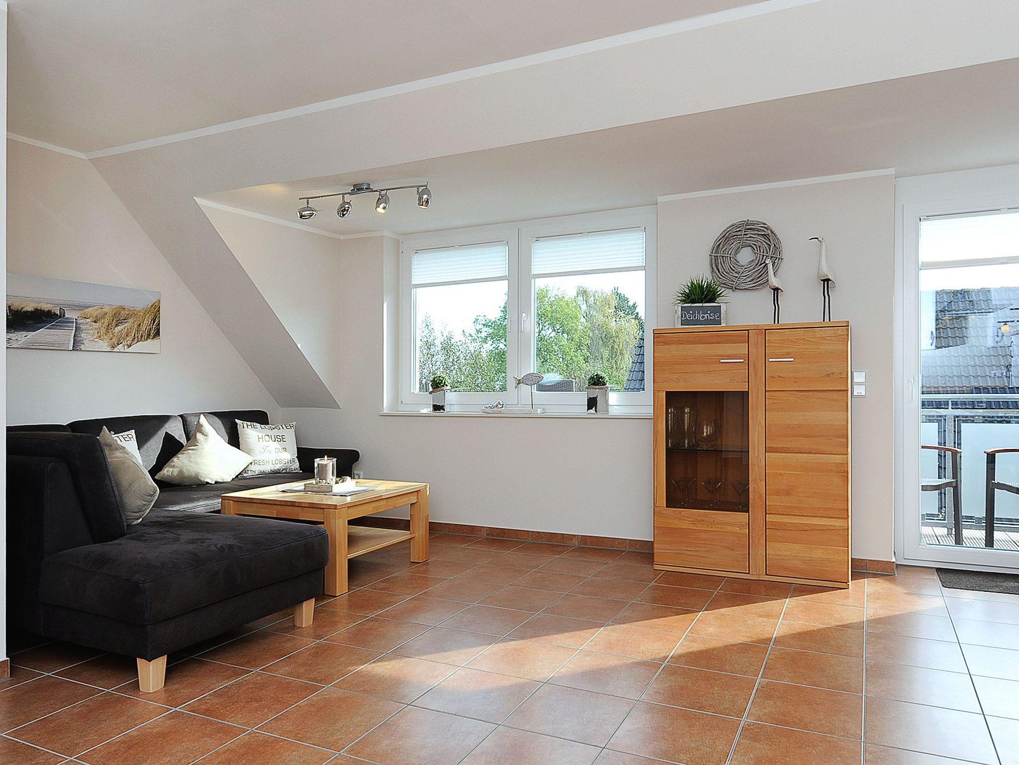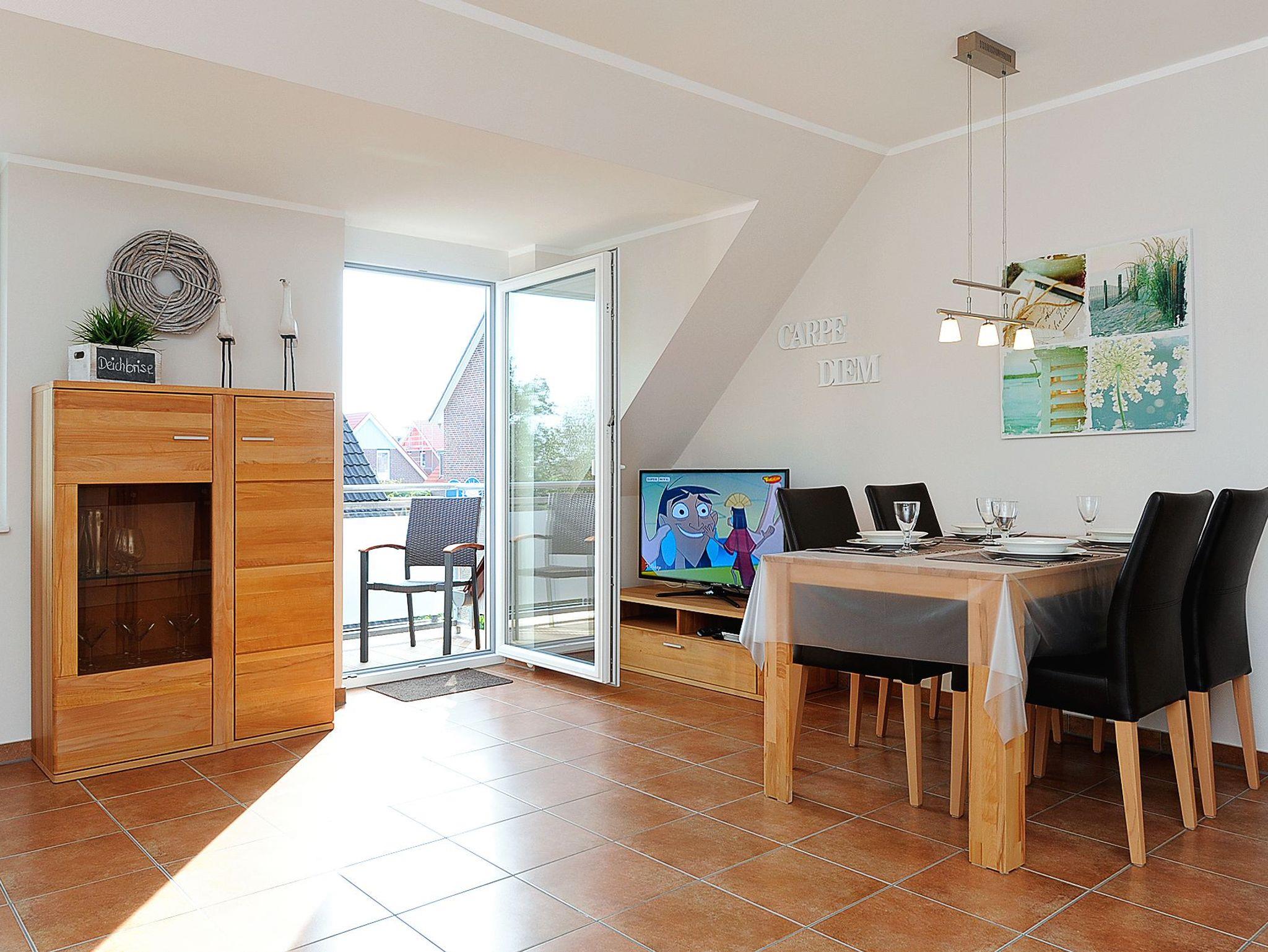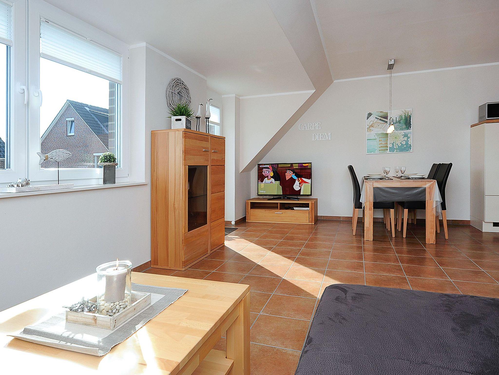 Moderne Ferienwohnung in Bensersiel, 100 m vom Nordseedeich, mit Balkon und WLAN, ideal für entspannte Nordseeurlaube.