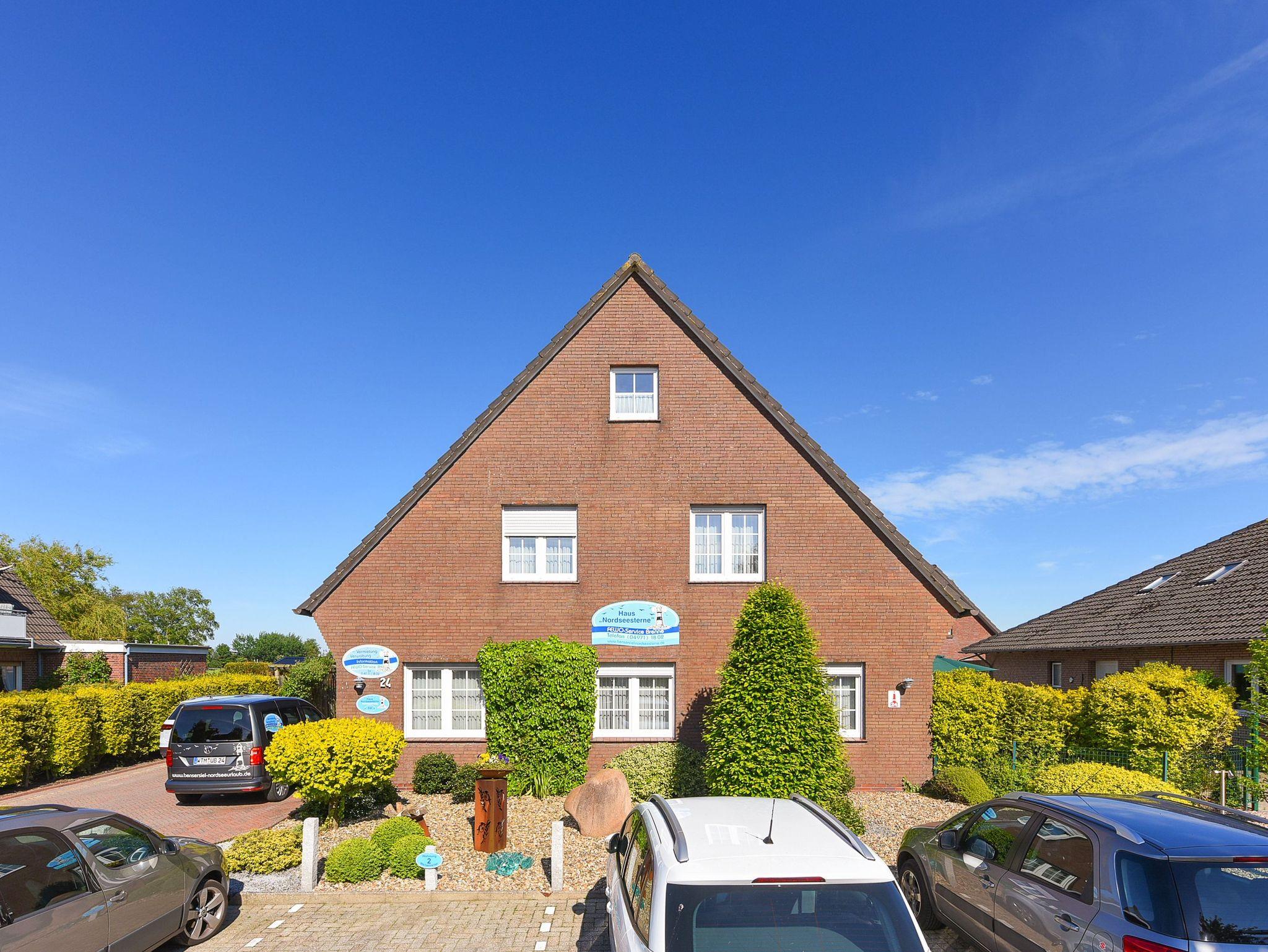 Das „Haus Nordseesterne“ liegt in einer ruhigen Anliegerstraße ohne Hinterlandbebauung. Sie haben also teilweise freie Sicht auf Ostfrieslands saftige Marschwiesen und -felder.