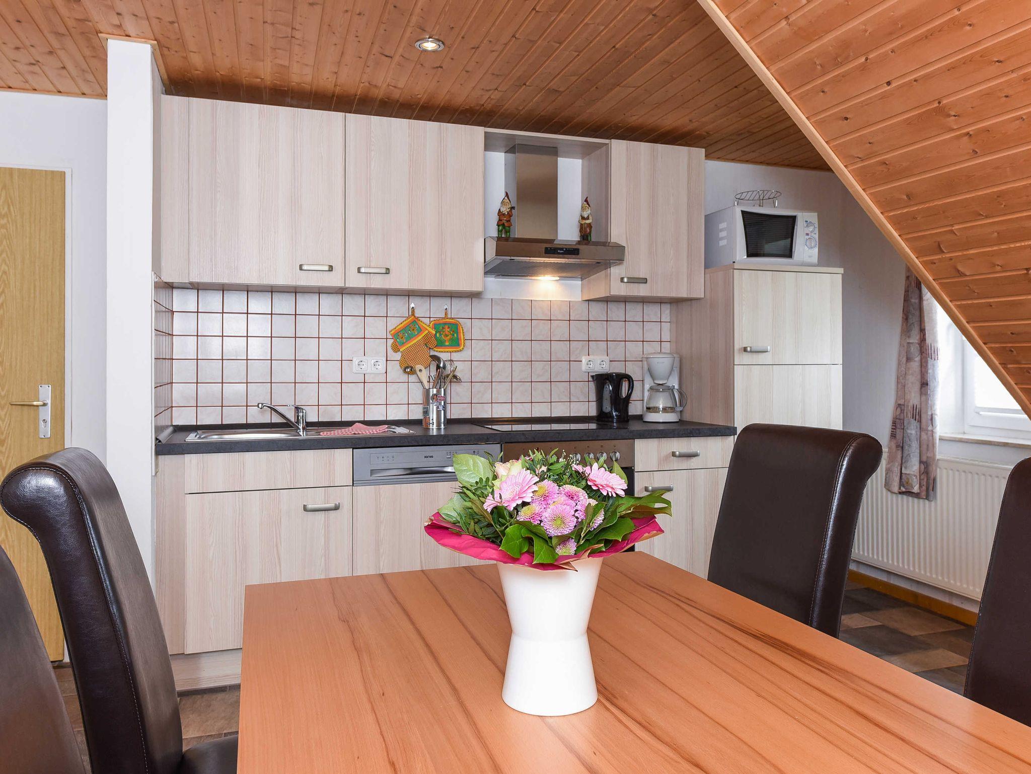 Größe ca. 74 Quadratmeter, Wohnzimmer, Küche, Schlafzimmer, zweites separates Schlafzimmer, drittes separates Schlafzimmer/Kinderzimmer, Badezimmer mit Dusche, Waschtisch und WC, Obergeschoss, Terrasse (Sitzgruppe im Garten), Internetzugang über WLAN möglich, optimal für 2 bis 7 Personen.