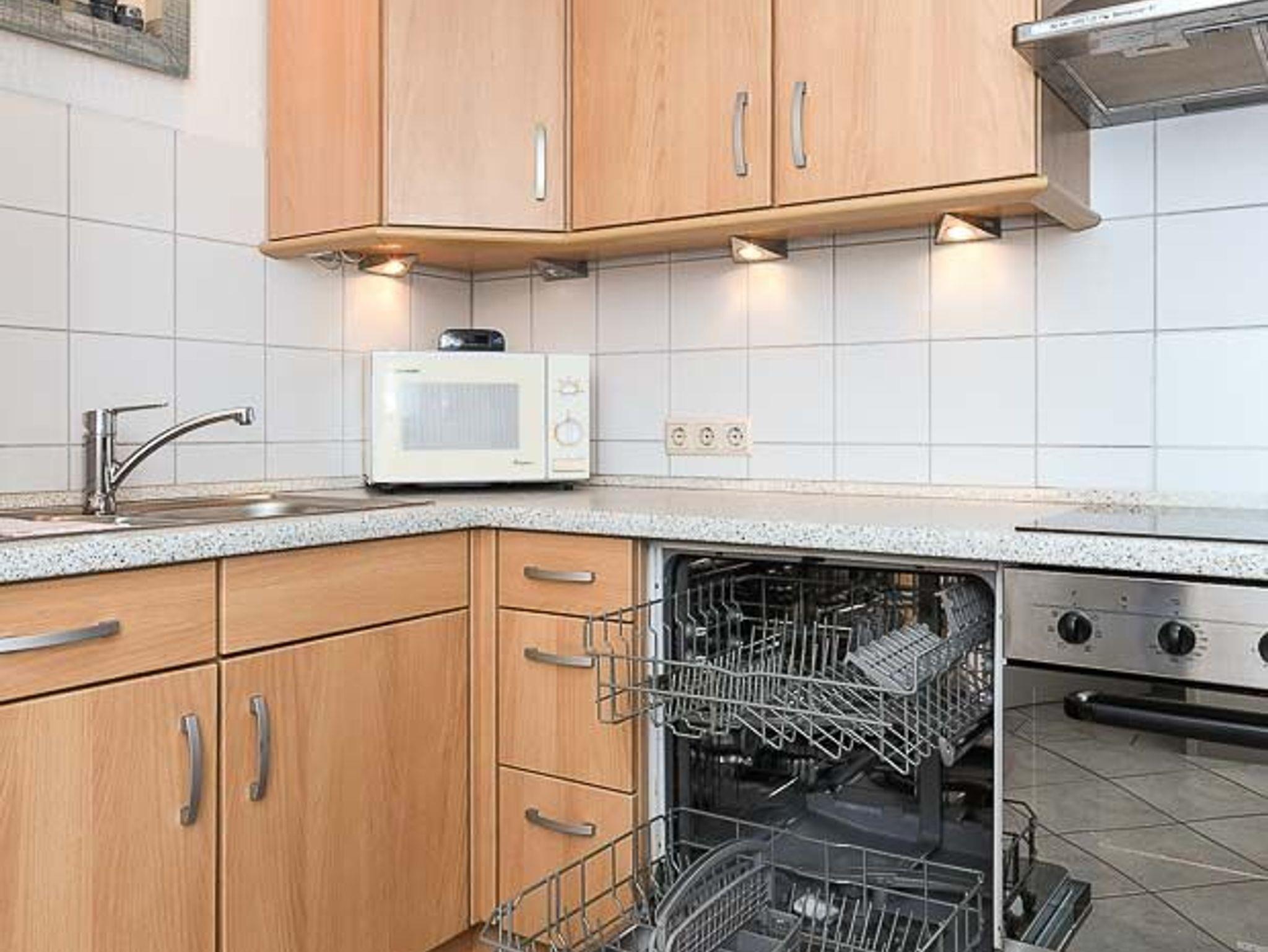 Moderne Küche mit Geschirrspülmaschine, Ceran-Kochfeld und Umluft-Backofen