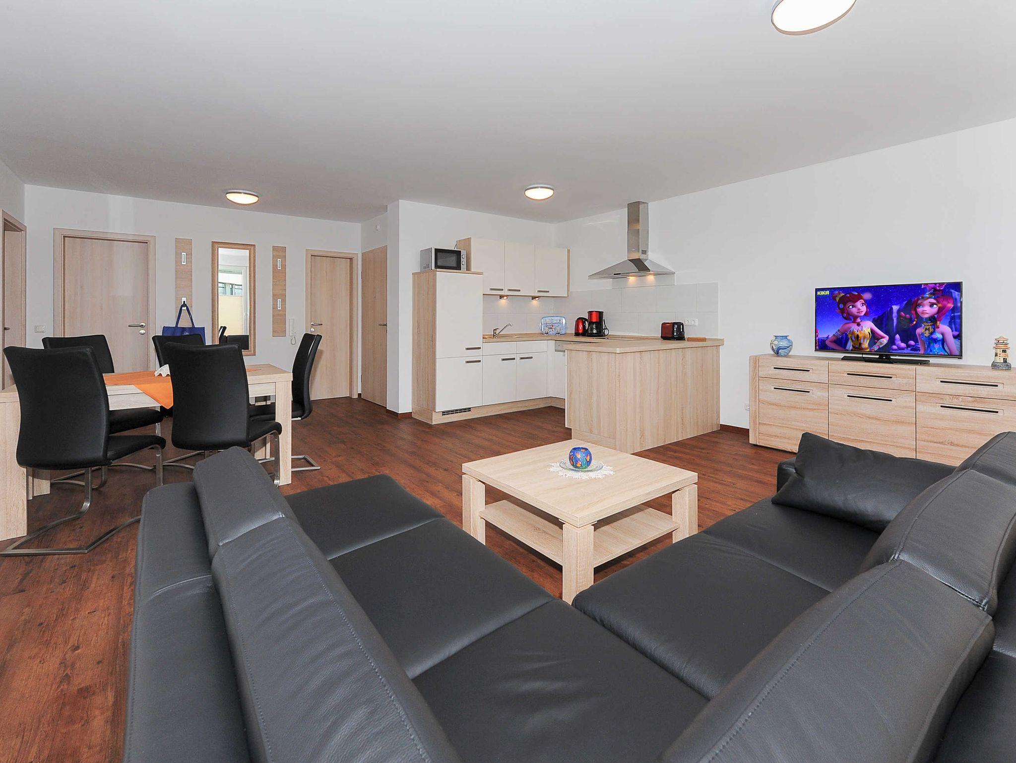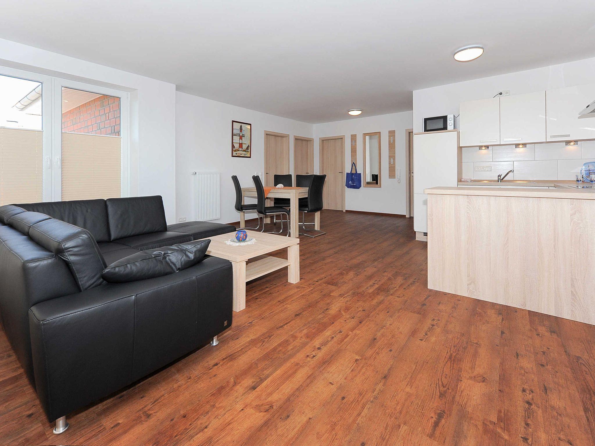Moderne Ferienwohnung im Haus Bensersieler Leuchtturm, nur 300 m vom Strand und Nationalpark Wattenmeer entfernt.