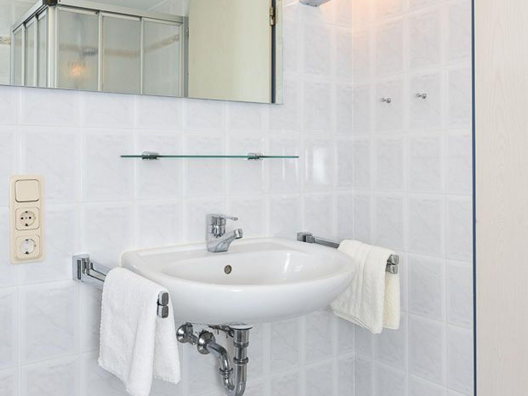 Badezimmer mit Dusche, 2 Waschtischen und WC