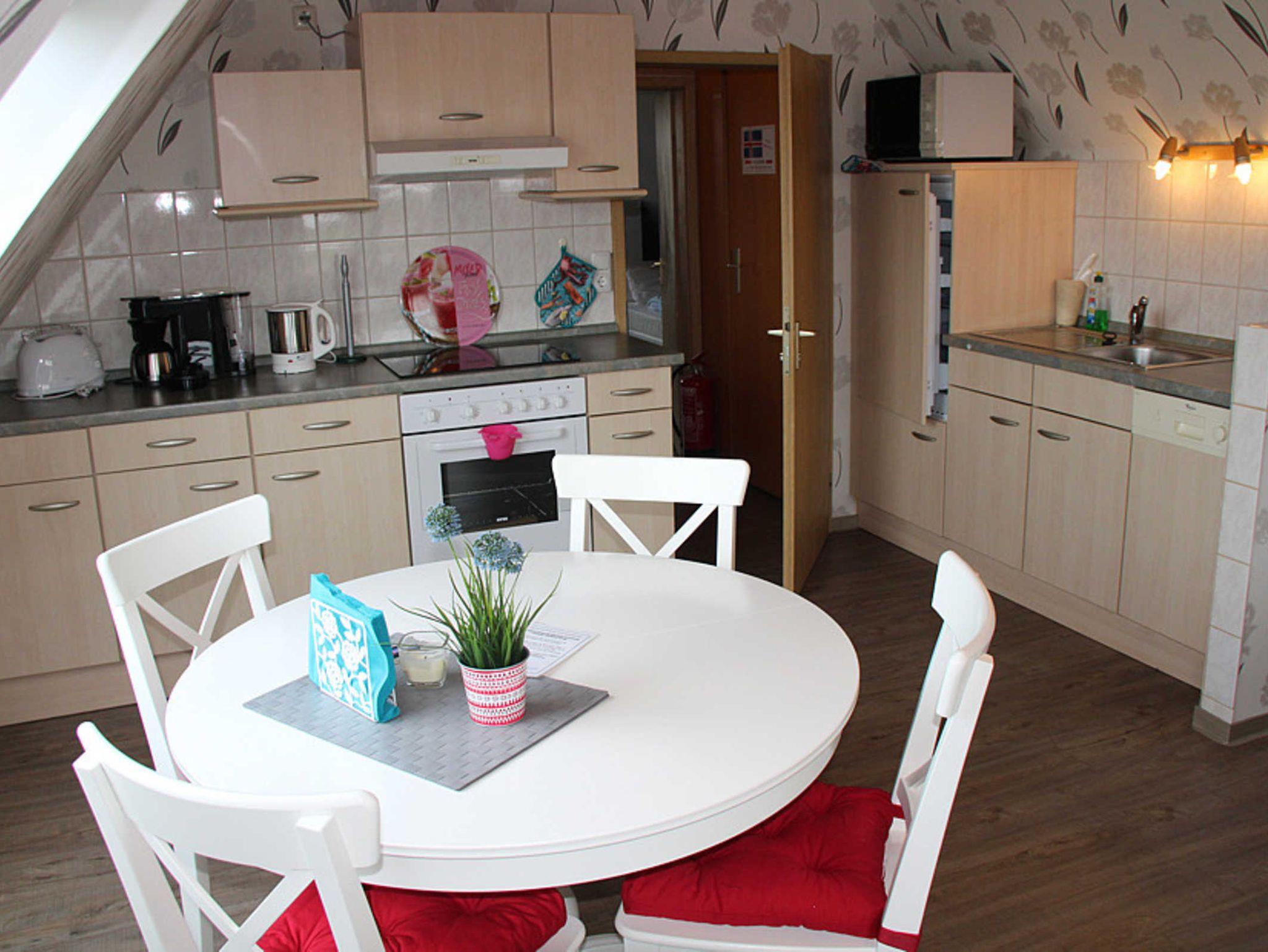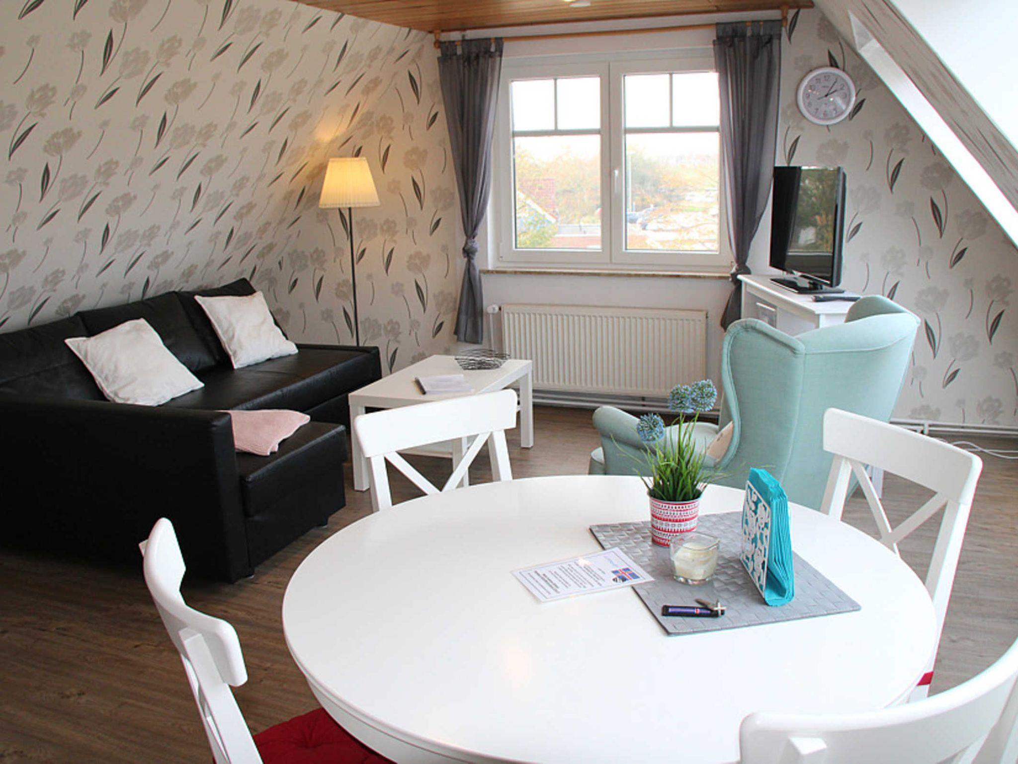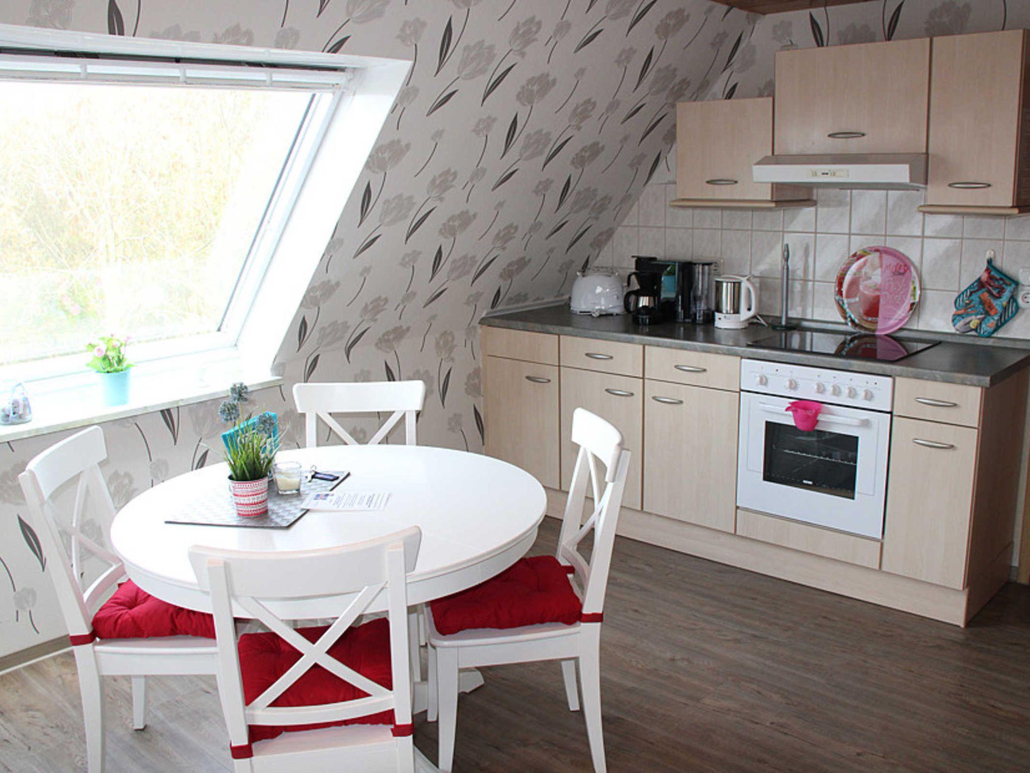 Die fünfte Wohnung heißt „Island“ und ist ganz oben im Haus untergebracht, so dass ein Blick über den Deich auf die Nordsee und die vorgelagerten Inseln möglich ist. Diese Wohnung „Island“, geeignet für 1 bis 2 Personen nebst zusätzlichem Kleinkind, verfügt über einen Wohnraum mit integrierter vollständiger Küche, ein Schlafzimmer sowie ein Badezimmer mit Dusche, Waschtisch und WC.