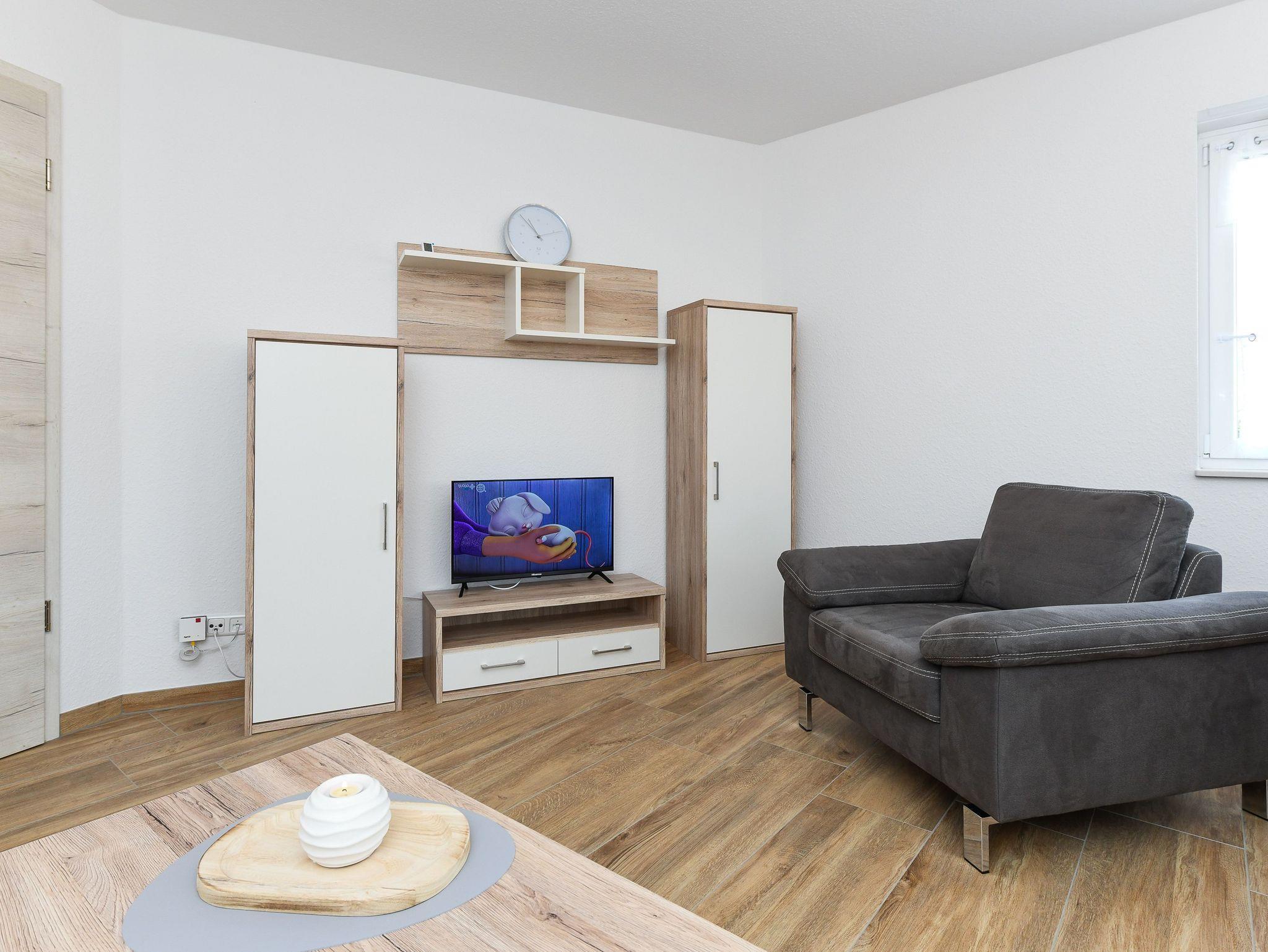 Größe ca. 60 Quadratmeter, Wohnzimmer mit integrierter Küche, Schlafzimmer, zweites separates Schlafzimmer, Badezimmer mit Dusche, Waschtisch und WC, Erdgeschoss, Terrasse (teilweise überdacht), Hauswirtschaftsraum mit Waschmaschine und Wäschetrockner, Internetzugang über WLAN möglich, optimal für 2 bis 4 Personen und zusätzlich ein Kleinkind.