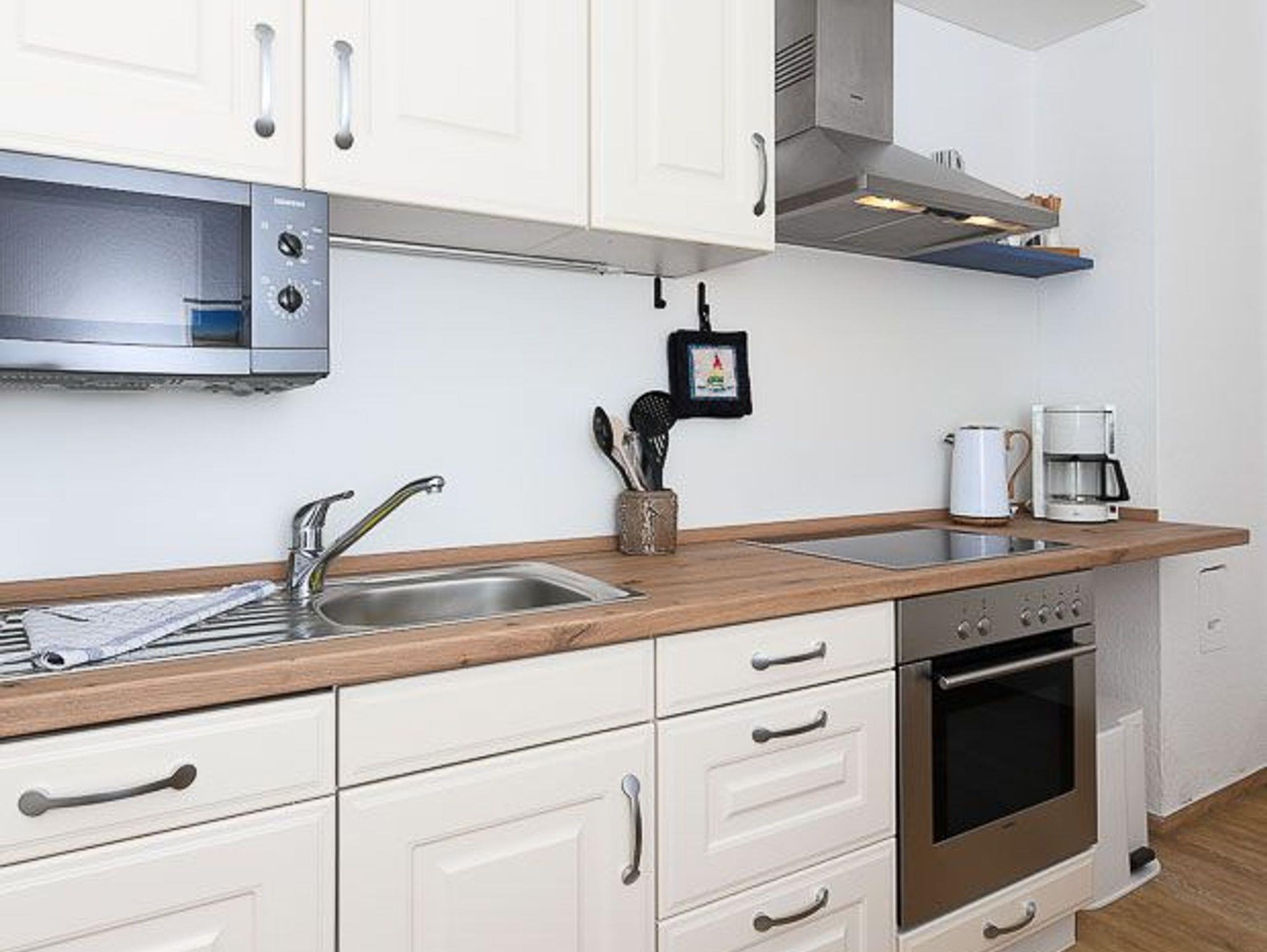 Weiter Highlights der Wohnung sind die Küche mit Backofen und Geschirrspüler, der kostenlose WLAN Internetzugang, sowie das moderne Badezimmer mit ebenerdiger Dusche.