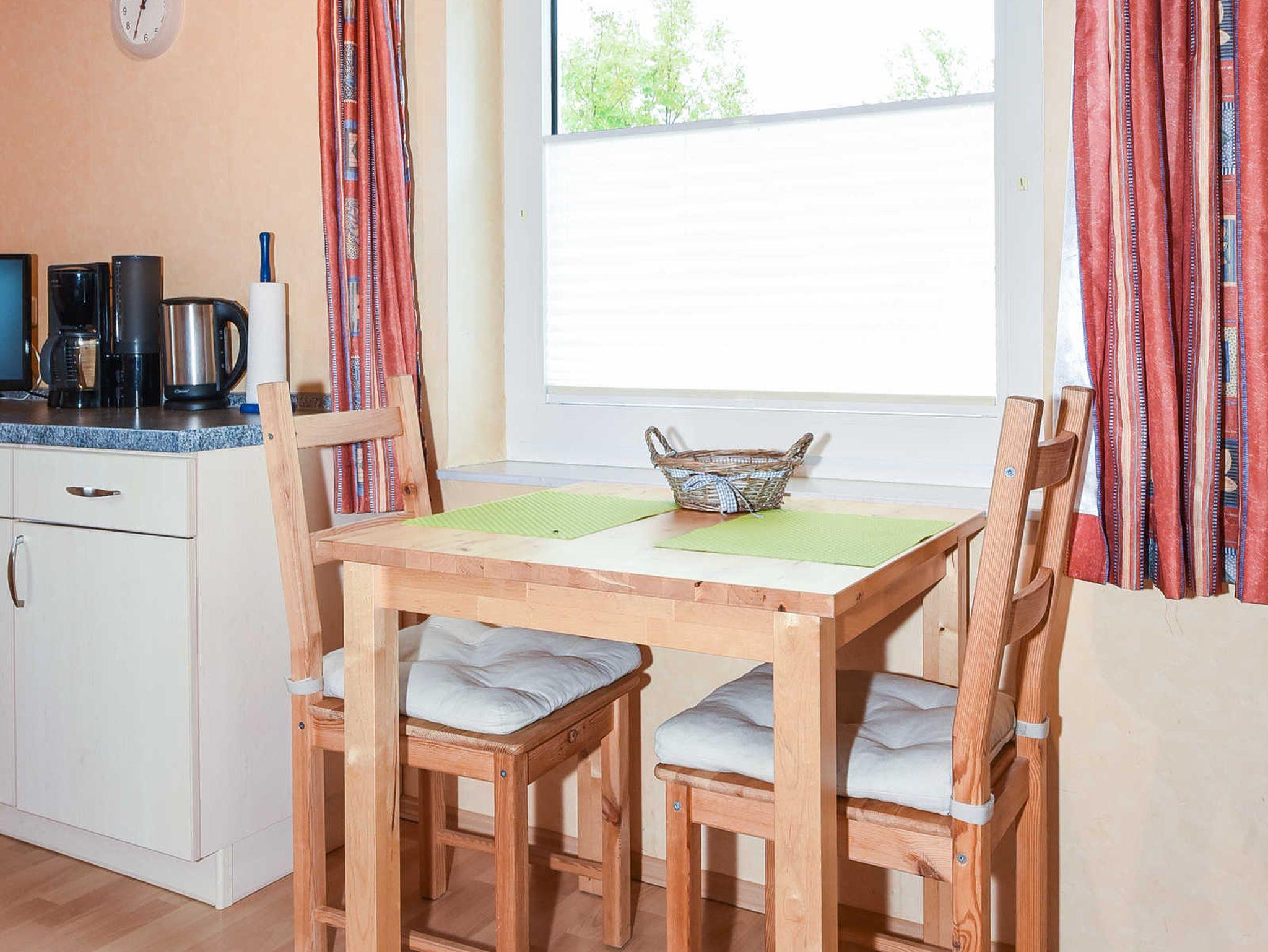 Größe ca. 40 Quadratmeter, Wohnküche mit Essgruppe und Wohnzimmer-Garnitur, Schlafzimmer, Badezimmer mit Dusche, Waschtisch und WC, Erdgeschoss, optimal für 2 Personen.
