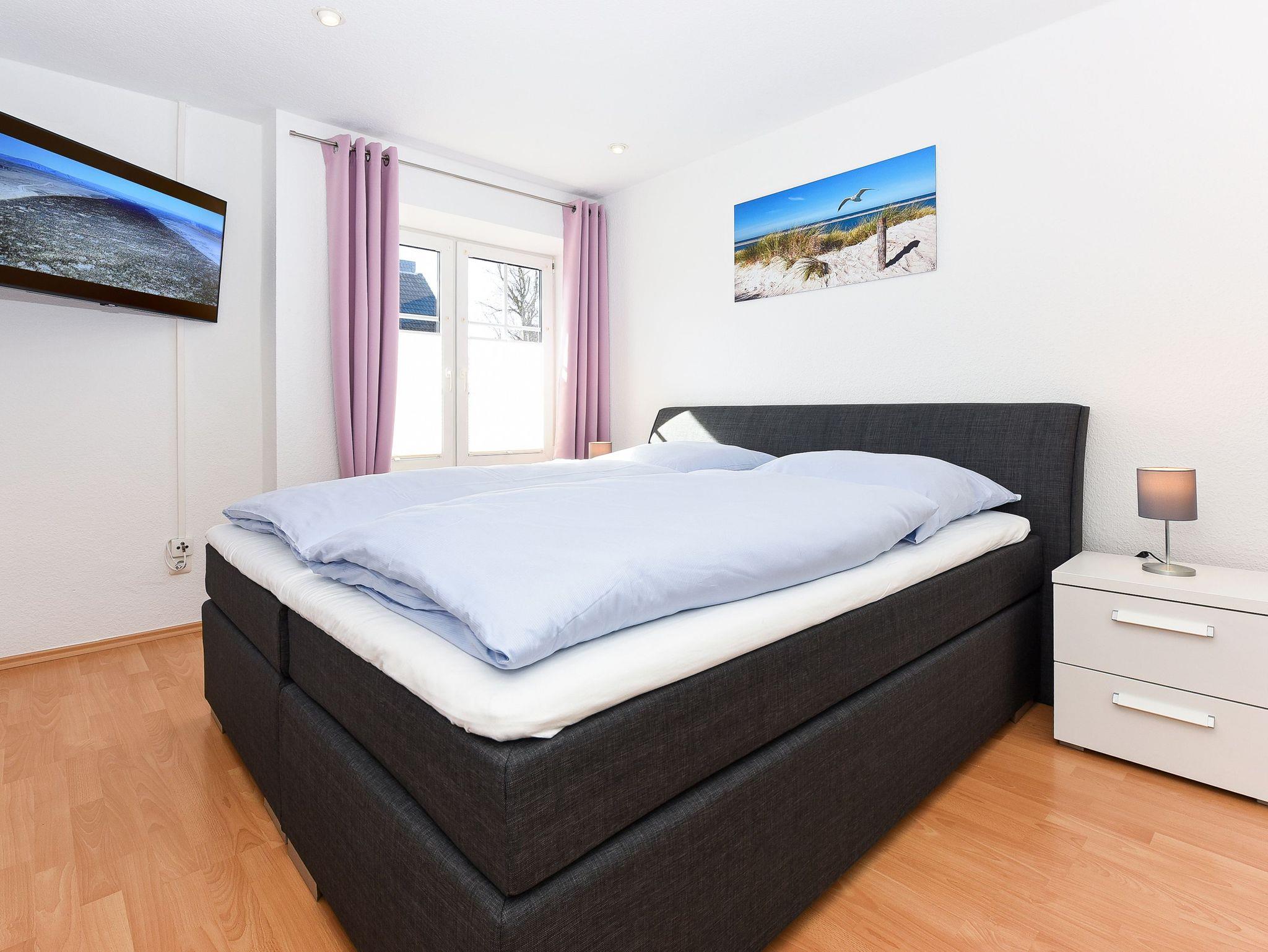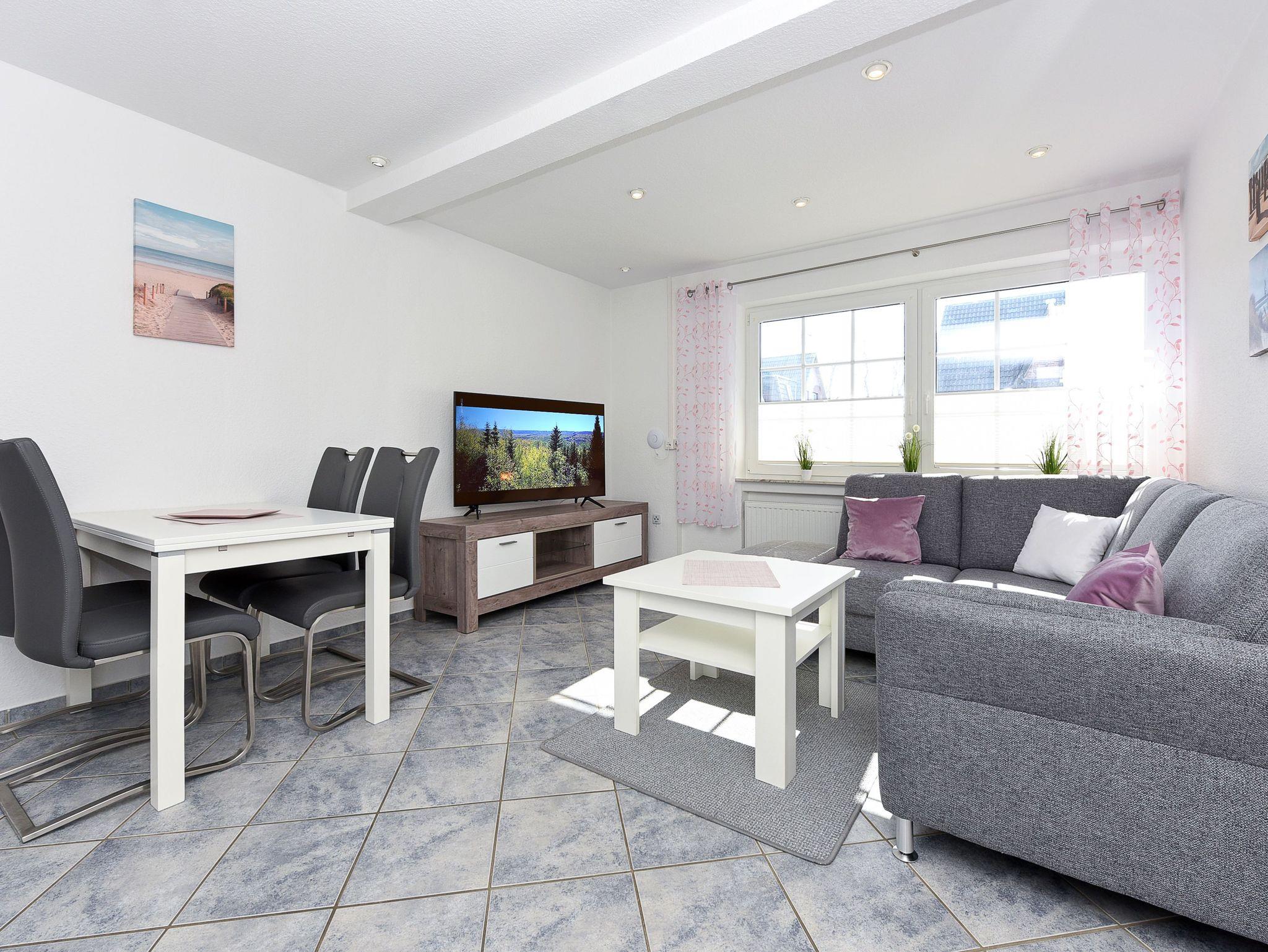 Moderne Ferienwohnung Lee in Bensersiel mit WLAN, Terrasse und zweitem TV im Schlafzimmer für erholsamen Nordseeurlaub.