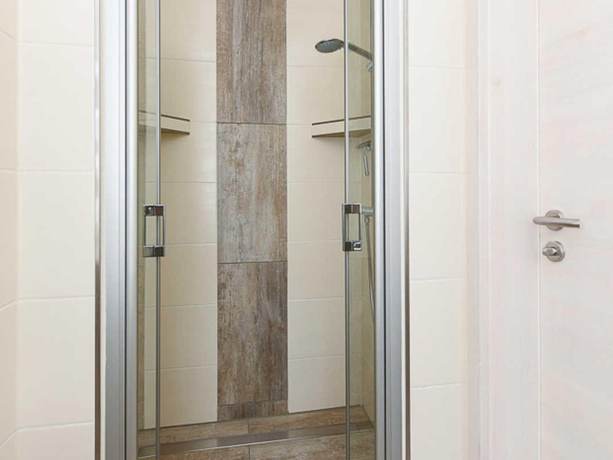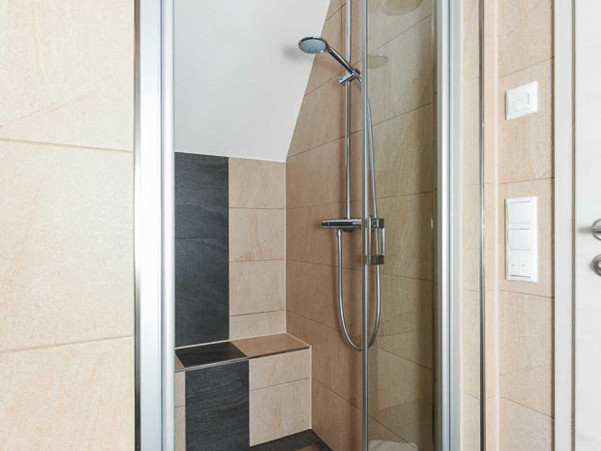 zweites Badezimmer mit Dusche, Waschtisch und WC