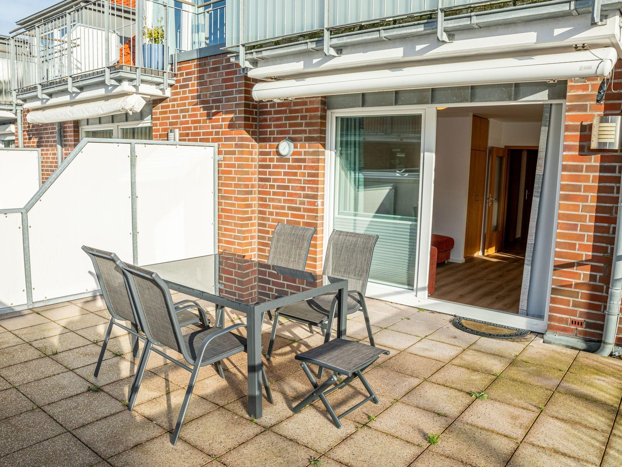 Moderne Ferienwohnung Sonnendeck im Nordseegartenpark Bensersiel, direkt an der Nordseeküste mit Balkon und Tiefgaragenplatz.