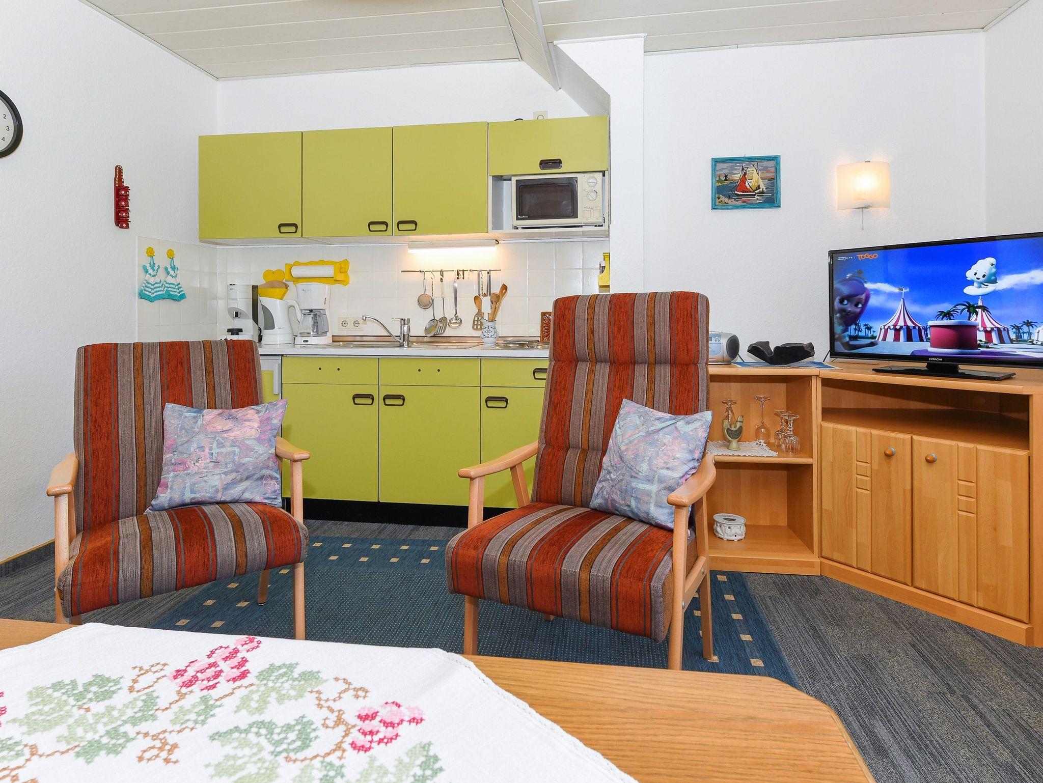 Die Ferienwohnungen, Backbord und Steuerbord genannt, sind komfortabel eingerichtet und ausgestattet sowie gemütlich gestaltet. Die Wohnungen sind jeweils 45 qm groß und am besten für bis zu 4 Personen zuzüglich eines Kleinkindes geeignet. Es gibt einen Wohnraum mit integrierter und voll ausgestatteter Küchenzeile (Kühlschrank mit Gefrierfach, Mikrowelle, 4-Platten-Herd etc.), ein Schlafzimmer (mit Wickelkommode in Wohnung Backbord), ein kleines Kinderzimmer sowie ein Badezimmer mit Dusche, Waschtisch und WC.