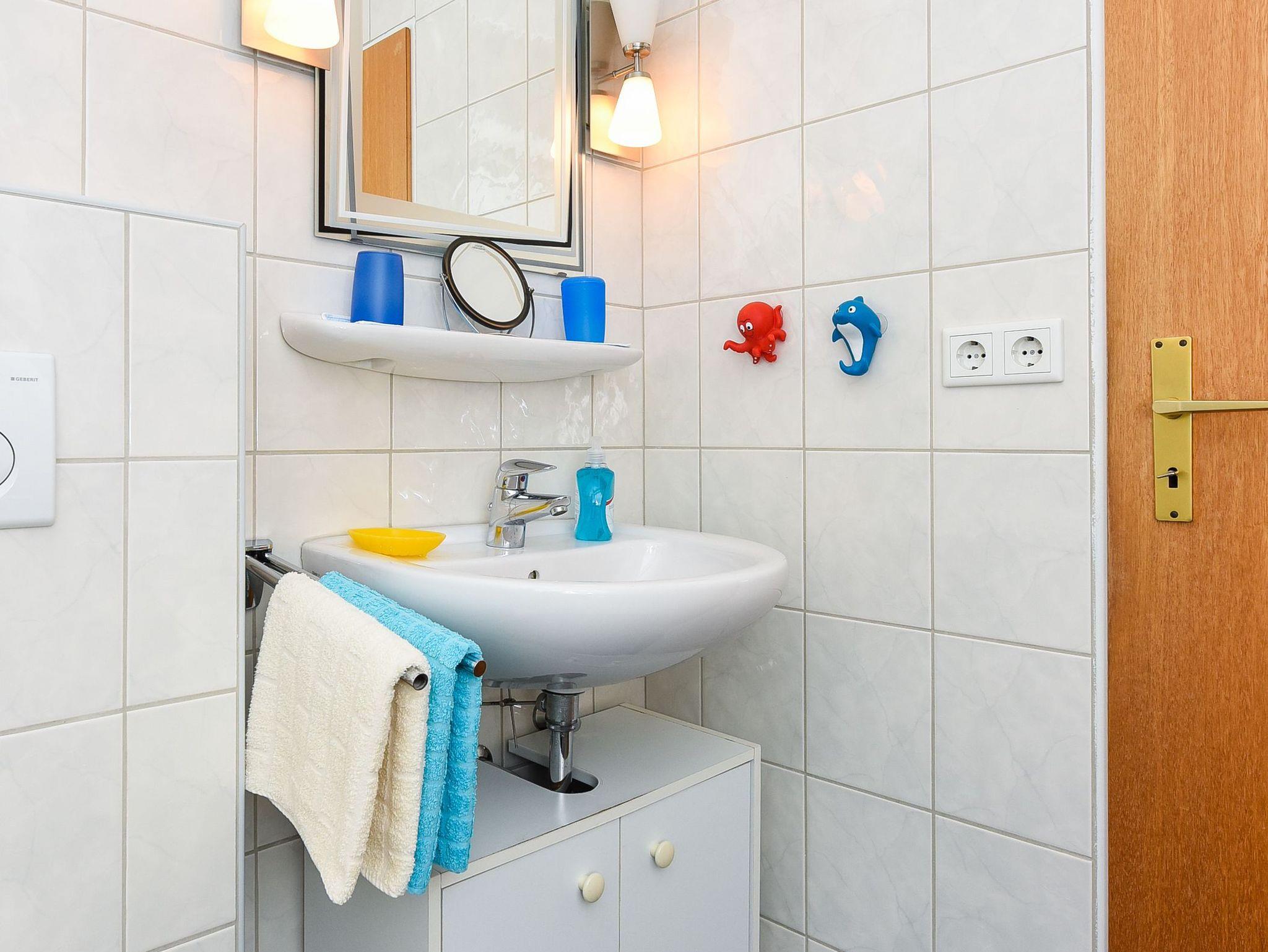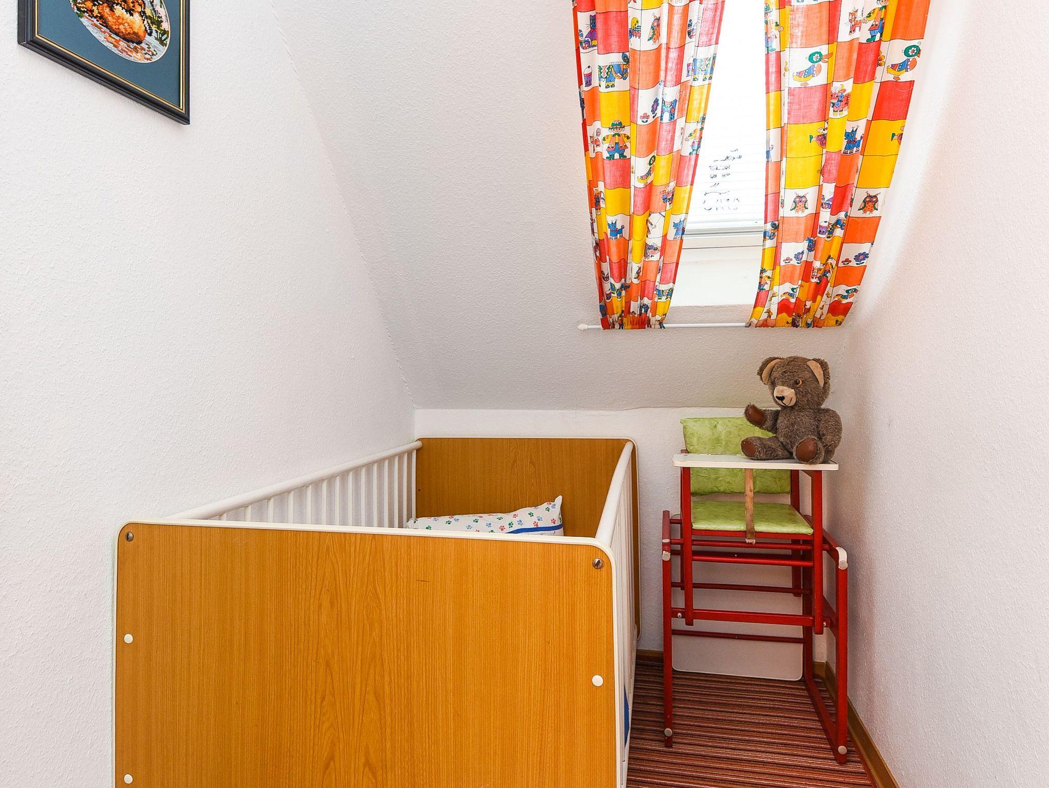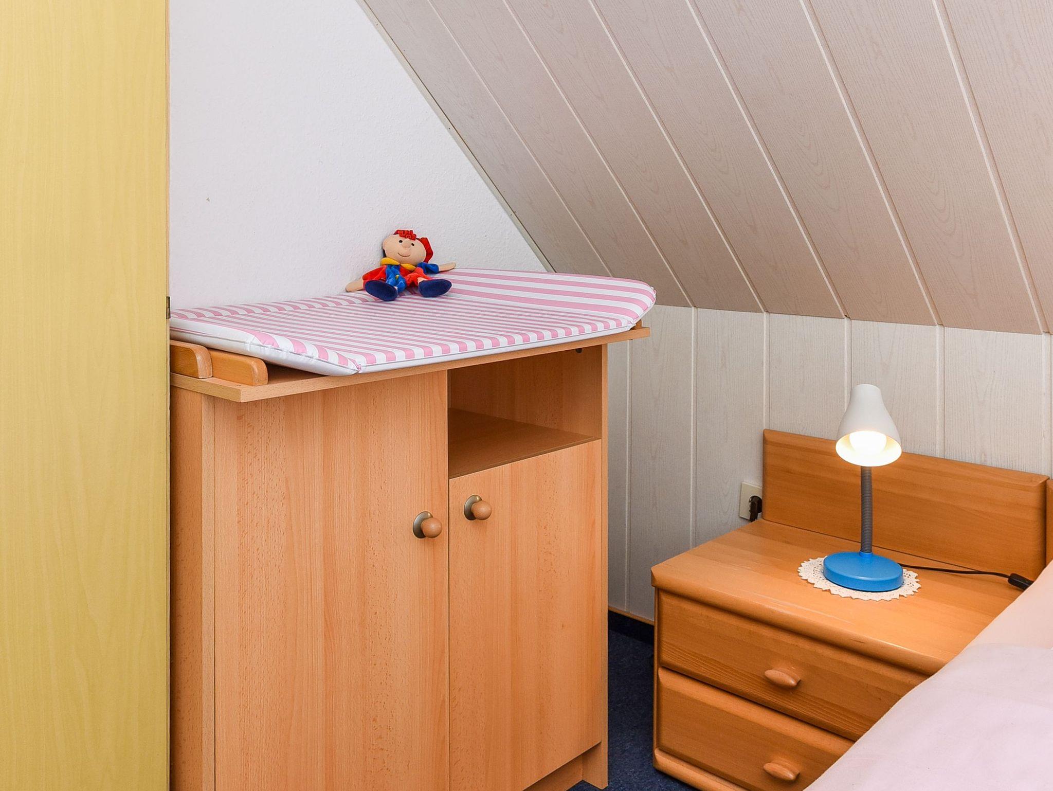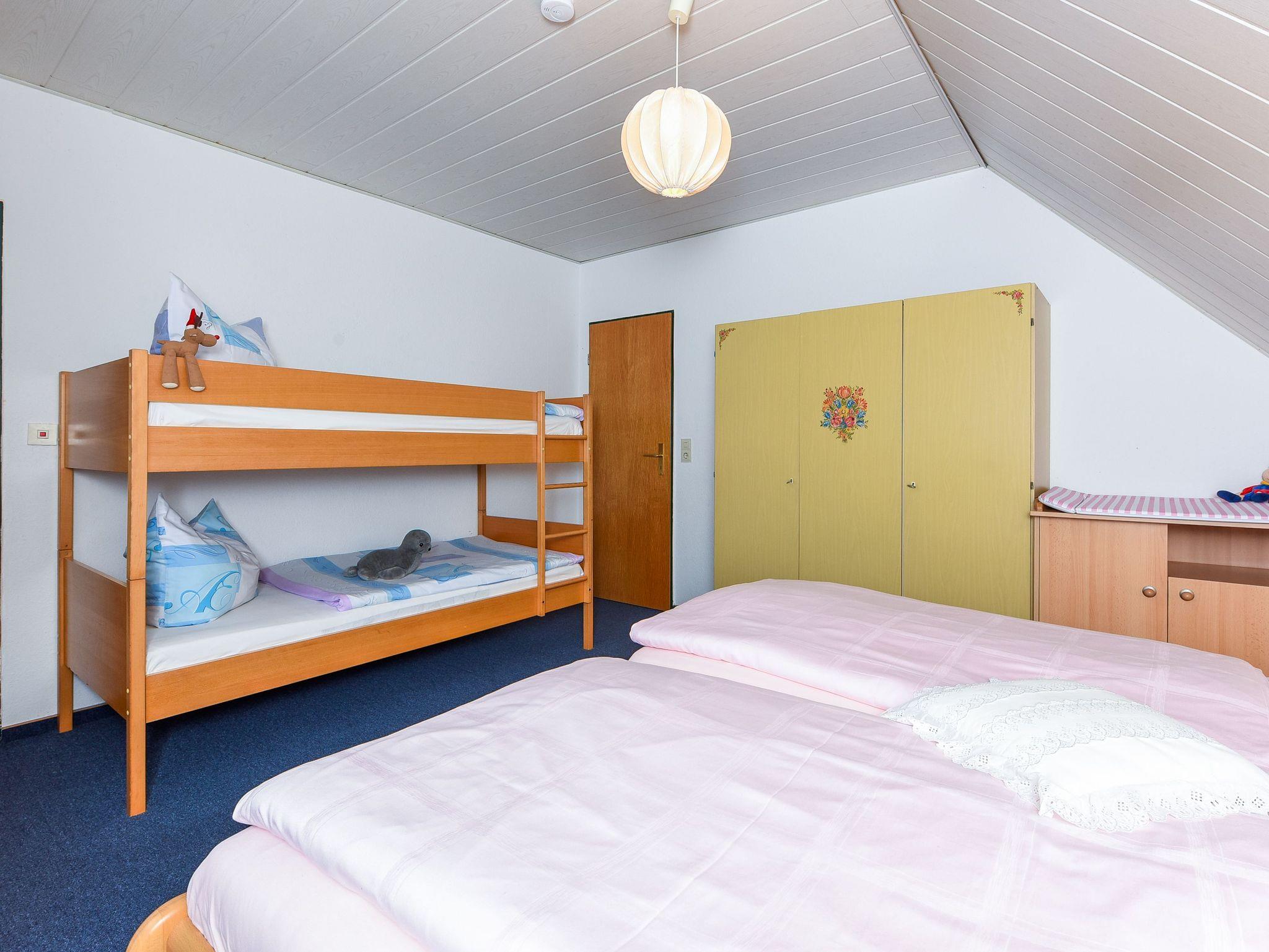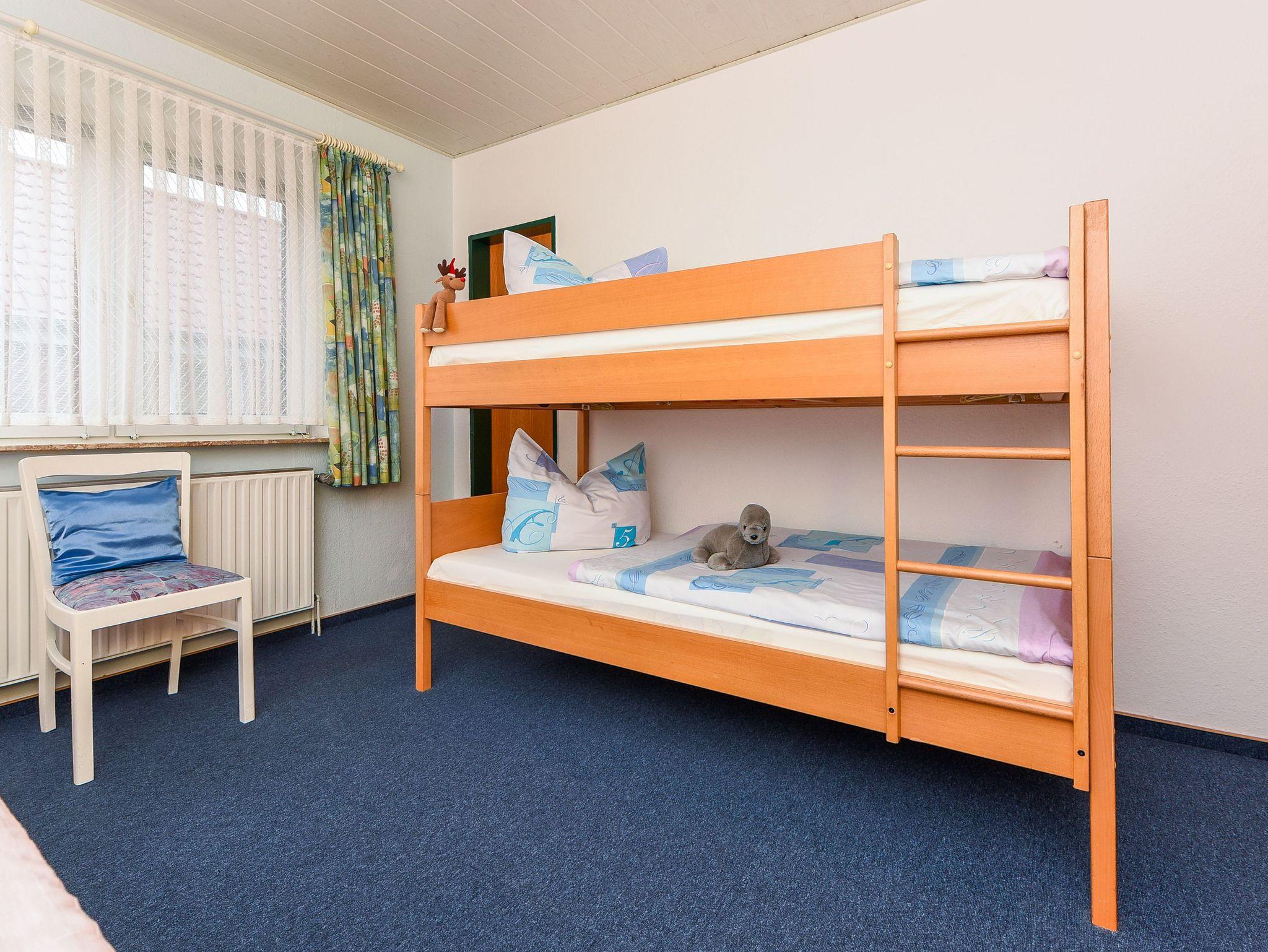 Anmerkung zum Schlafzimmer und zum Kinderzimmer: Ein Schlafraum ist mit altengerechtem Bett und Hochbett (Etagenbett) ausgestattet und ein kleines Extra-Kinderzimmer ist für das Kleinkind gedacht oder wahlweise als Abstellraum, zum Beispiel für die Koffer, geeignet.