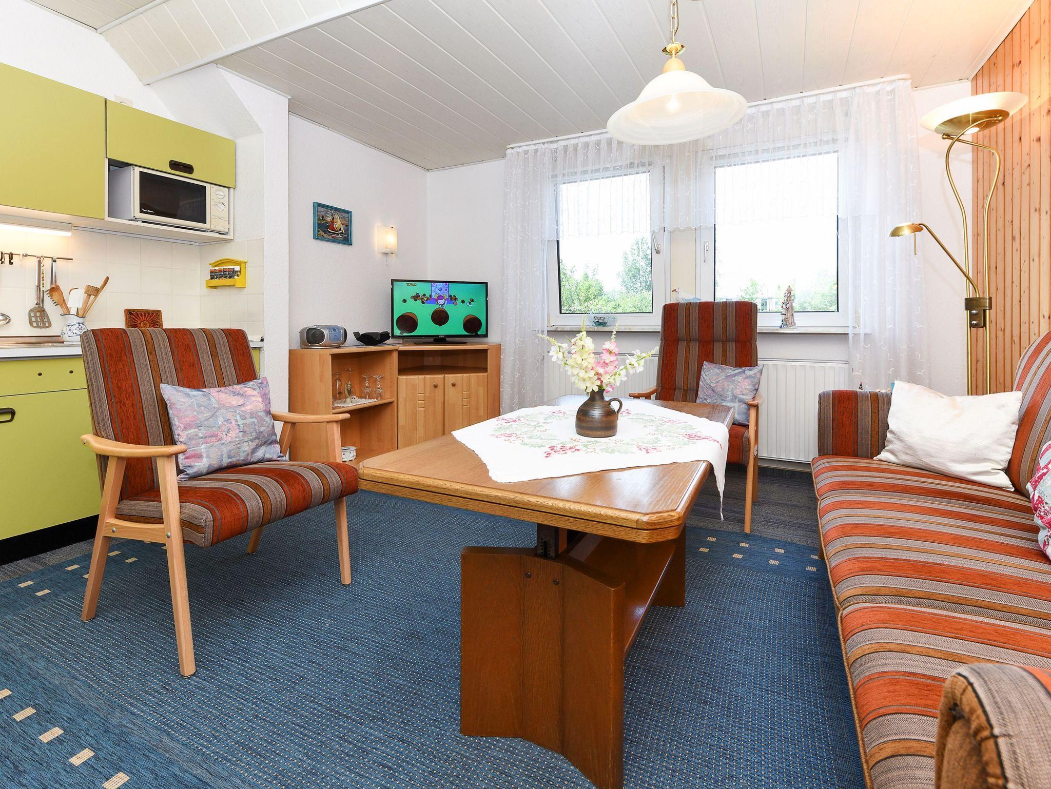 Gemütliche Ferienwohnung Backbord im Haus Beluga, zentral in Bensersiel, 200 m vom Strand und Hafen, ideal für Familien mit Kindern.