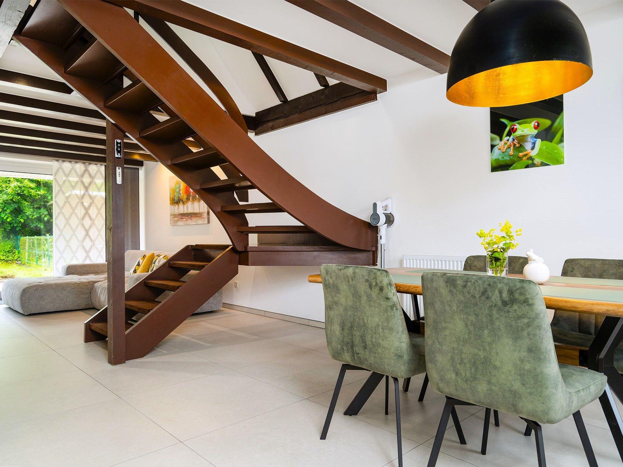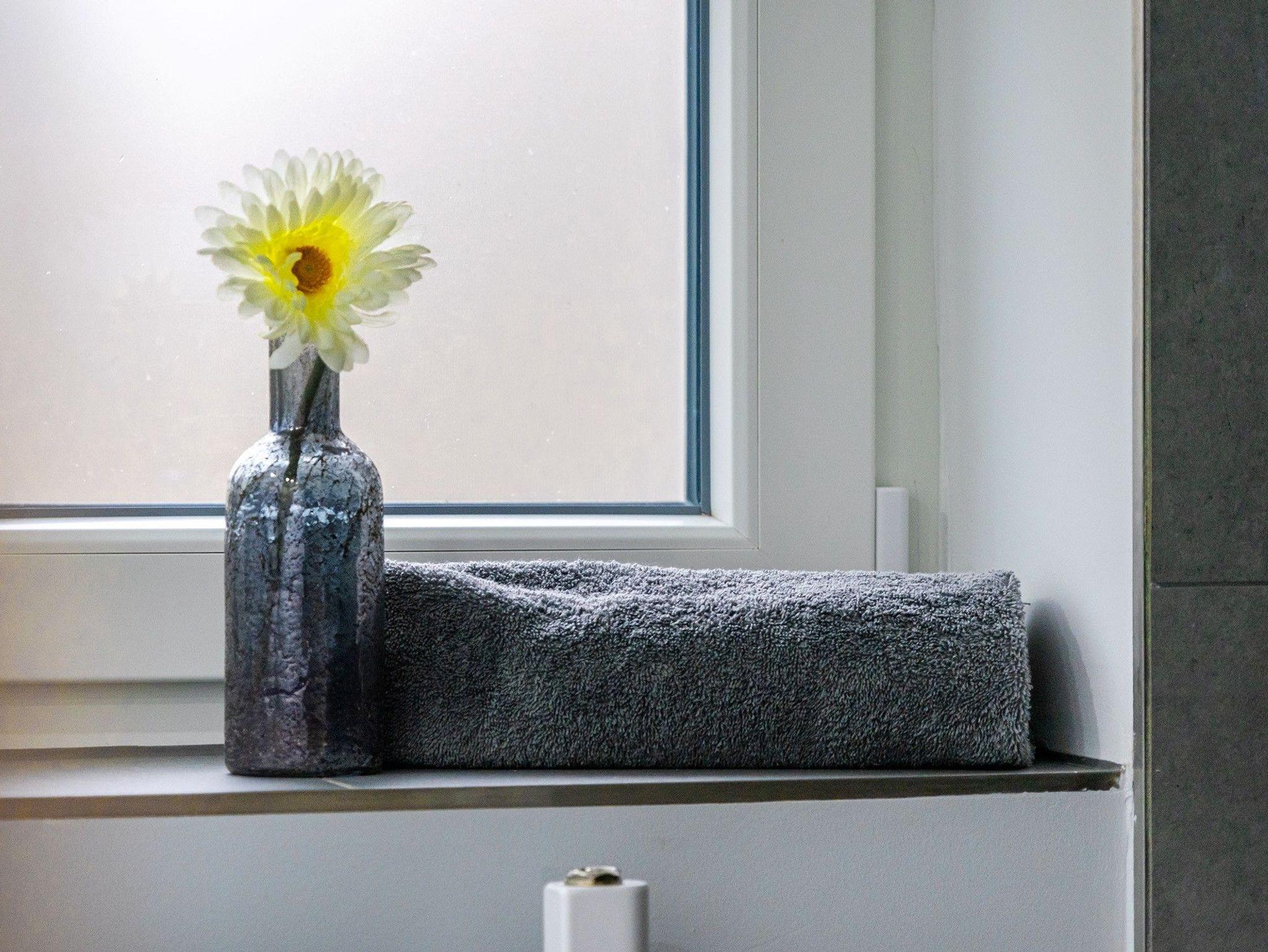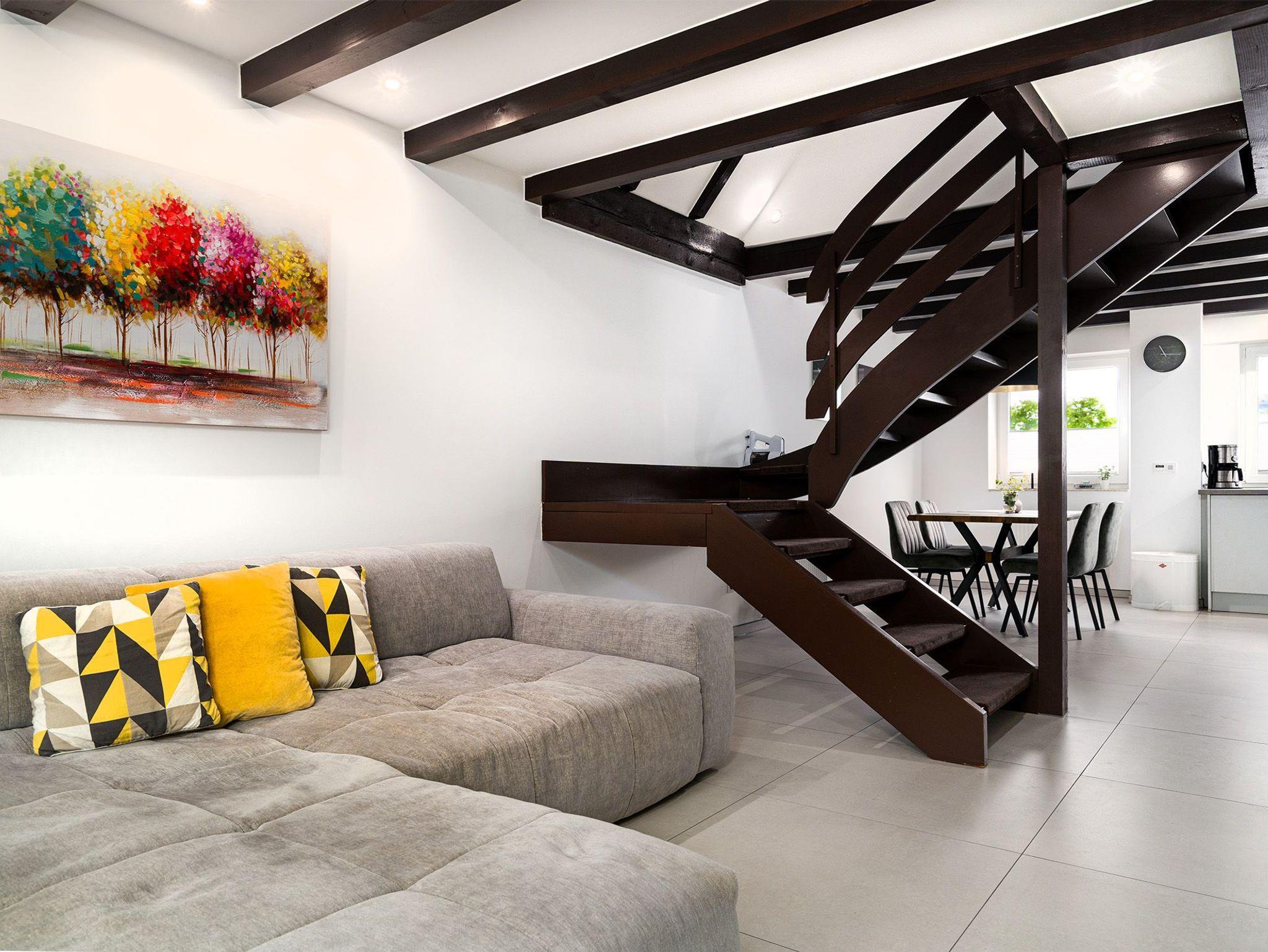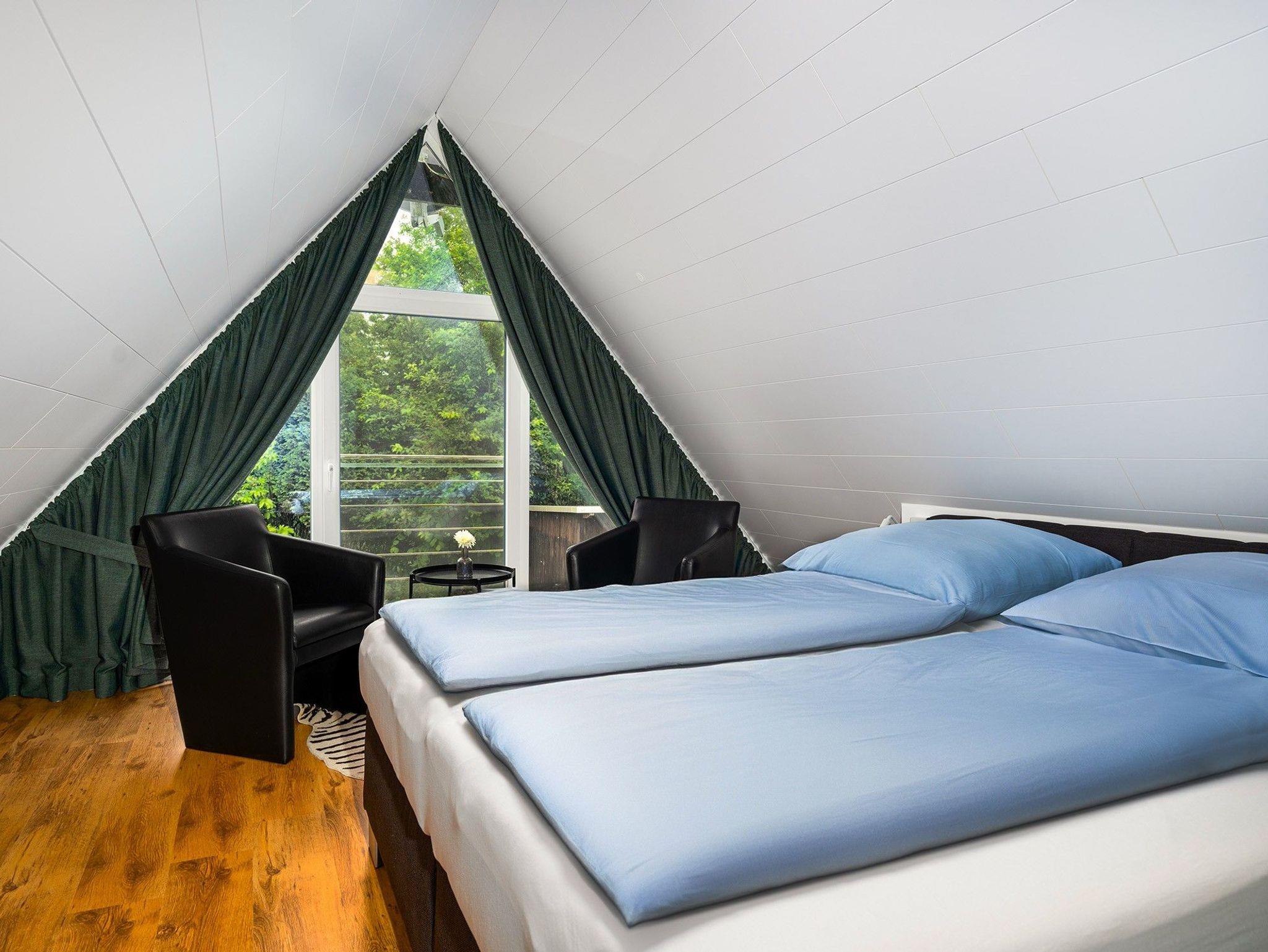 Das Ferienhaus „Kleine Hütte“ ist modern und gemütlich eingerichtet und gestaltet sowie sehr gut ausgestattet. Es gibt zum Beispiel eine Küche mit Geschirrspülmaschine und eine große Terrasse am Wohnzimmer mit direktem Gartenzugang und ein großzügiges Badezimmer.