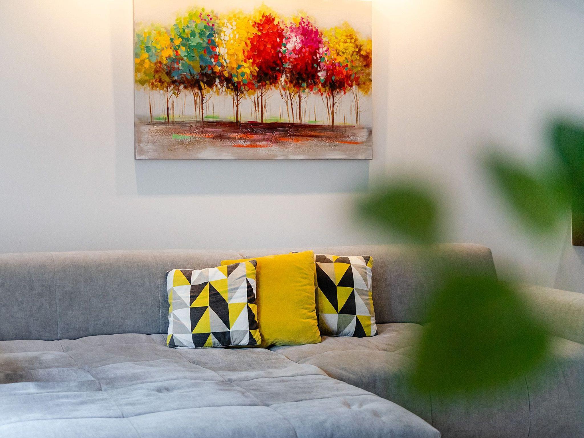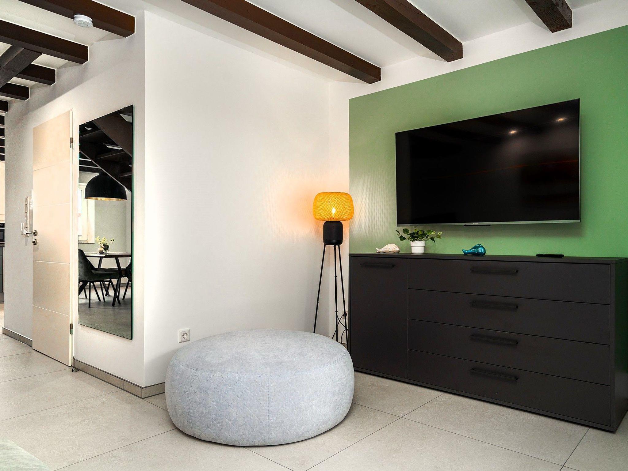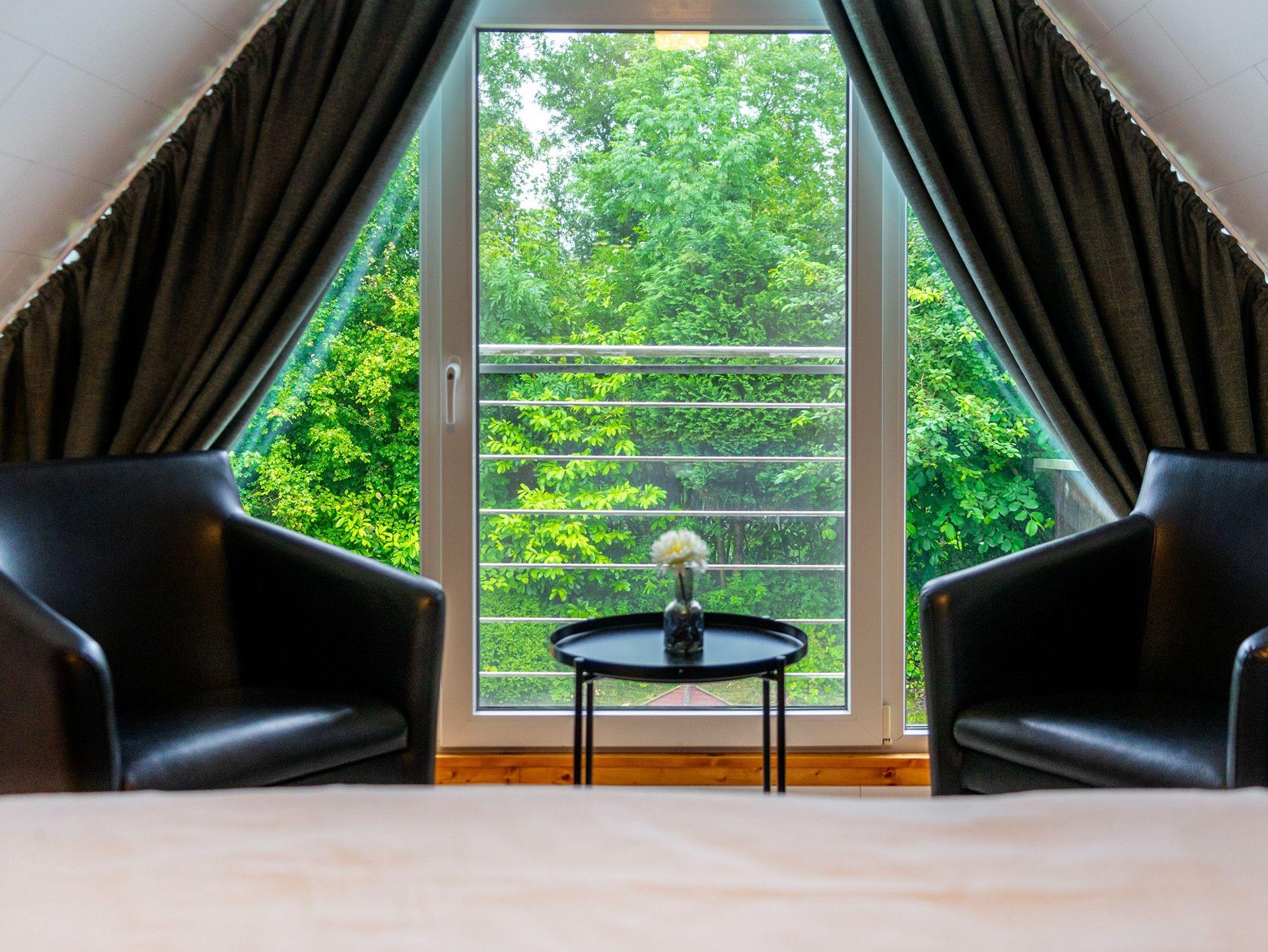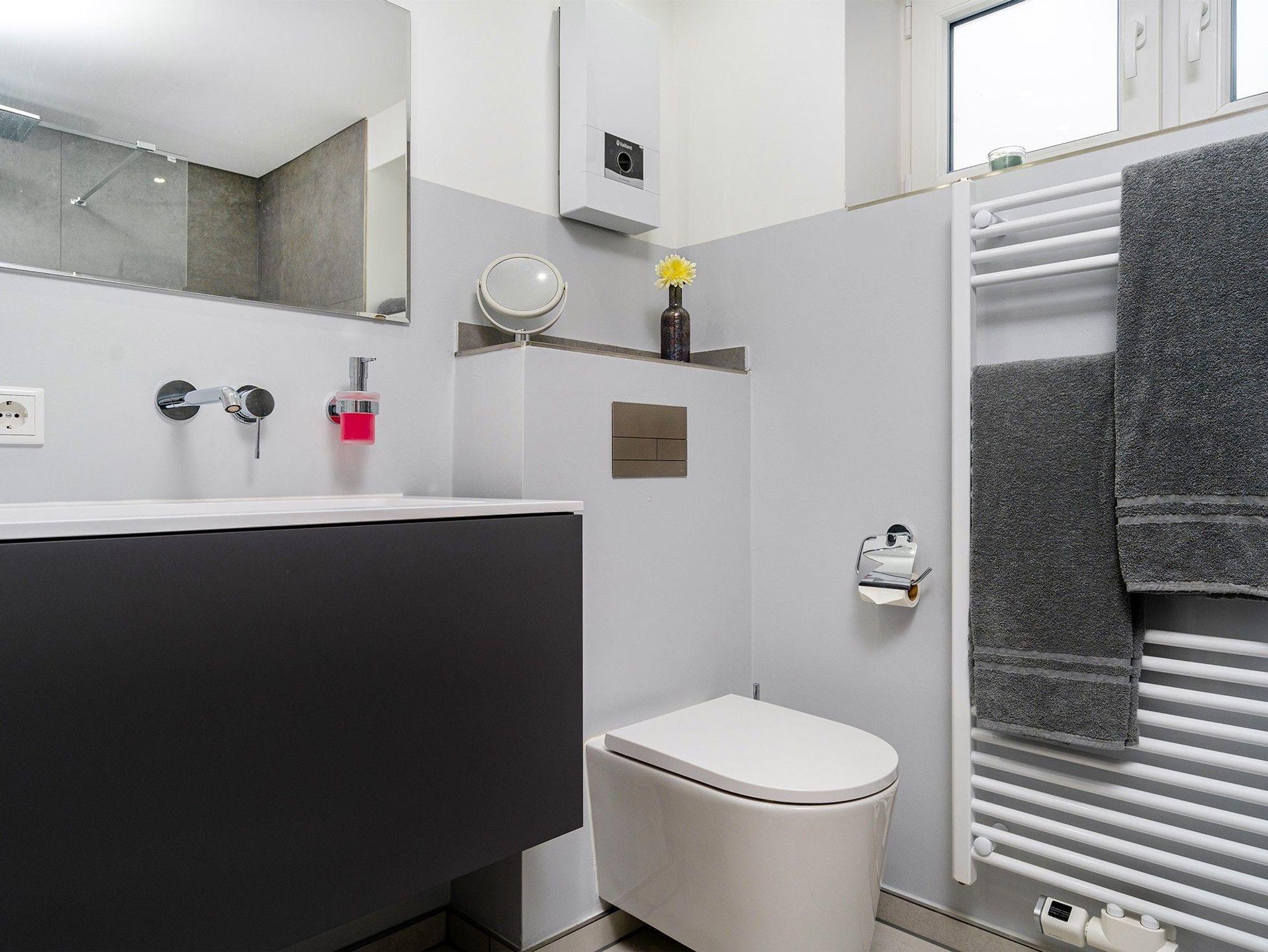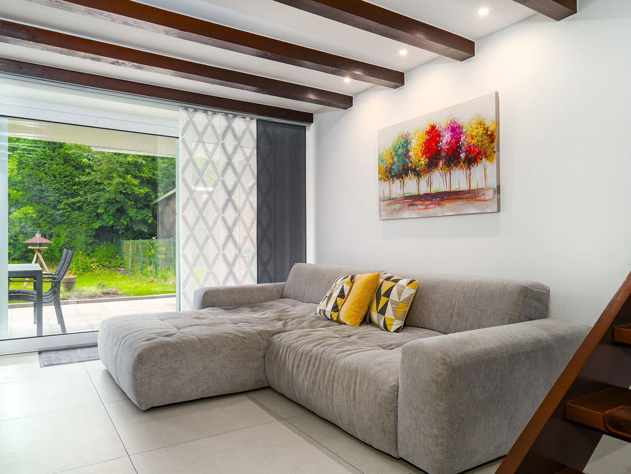 Das Ferienhaus „Kleine Hütte“ ist modern und gemütlich eingerichtet und gestaltet sowie sehr gut ausgestattet. Es gibt zum Beispiel eine Küche mit Geschirrspülmaschine und eine große Terrasse am Wohnzimmer mit direktem Gartenzugang und ein großzügiges Badezimmer.