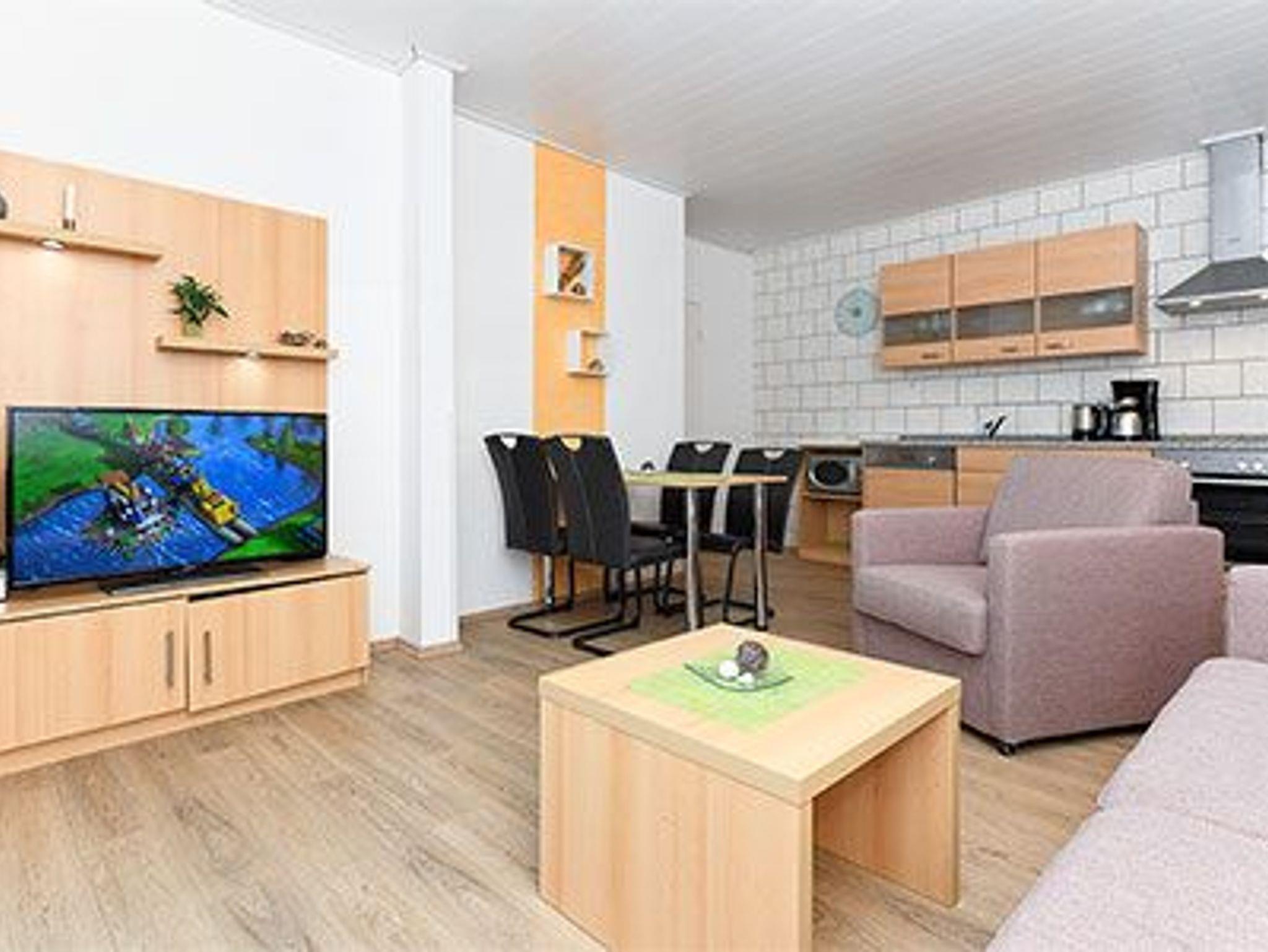 Gemütliche Ferienwohnung Sonnensegel im Haus Nordseesterne, nur 200 m vom Deich in Bensersiel, ideal für Familien und Naturliebhaber.