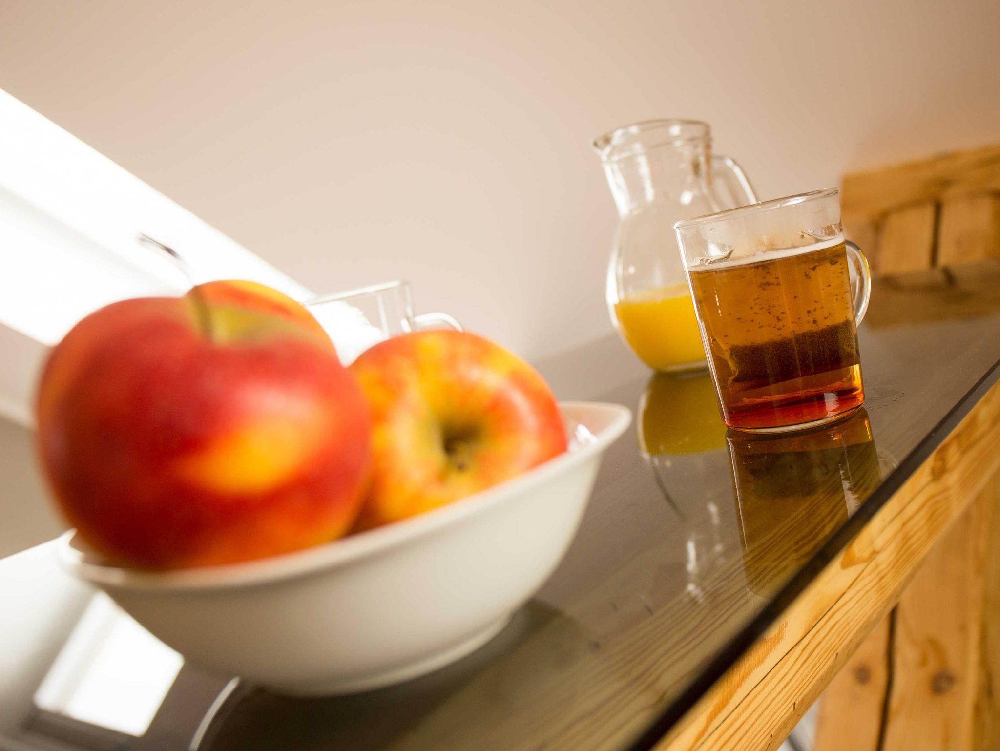 Ihre Unterkunft verfügt über kostenfreies WLAN. Der Wohnbereich mit zusätzlicher Schlafcouch bietet zudem eine gut ausgestattete offene Küchenzeile mit Kühlschrank, Gefrierfach, Kaffeemaschine, Wasserkocher und Mikrowelle. Das Appartement verfügt über einen Esstisch für 4 Personen und einen behaglichen Sitzbereich. im separaten Schlafzimmer steht Ihnen ein komfortables Boxspringbett zur Verfügung. Im stilvollen Badezimmer befinden sich eine große begehbare Dusche sowie ein Waschtisch mit Föhn. Des Weiteren ist im Buchungspreis ein Wäschepaket mit Handtüchern und Bettwäsche enthalten.