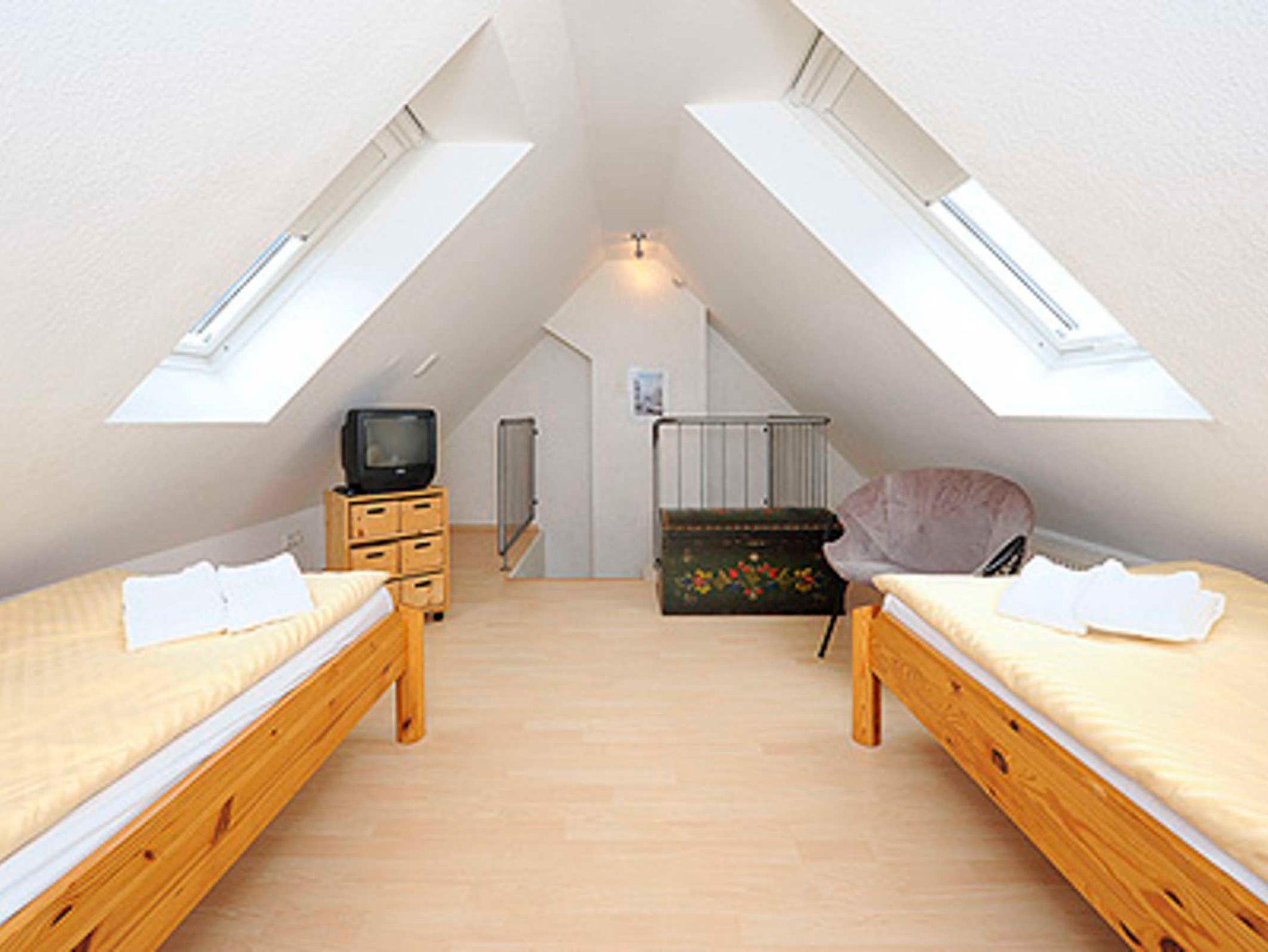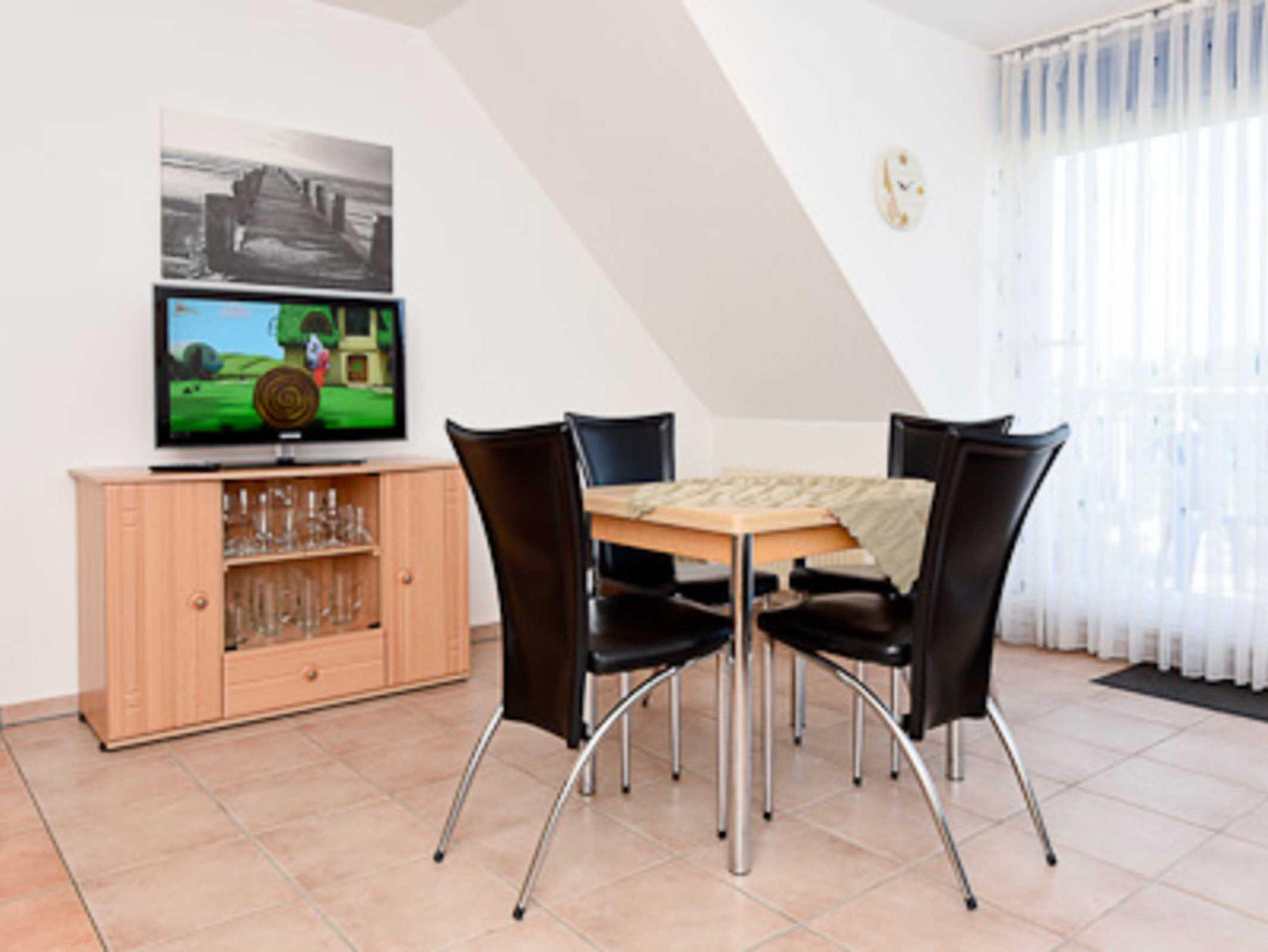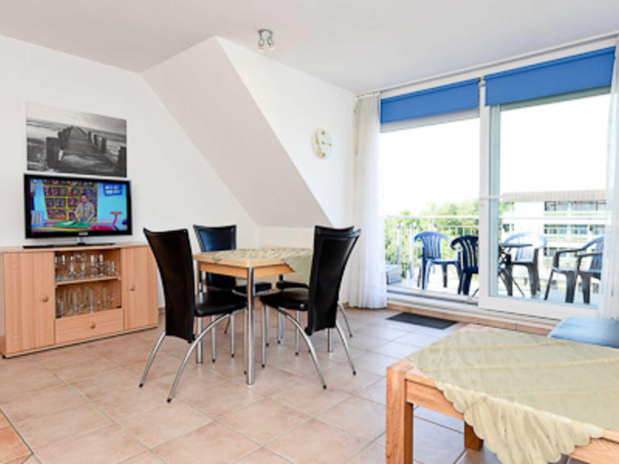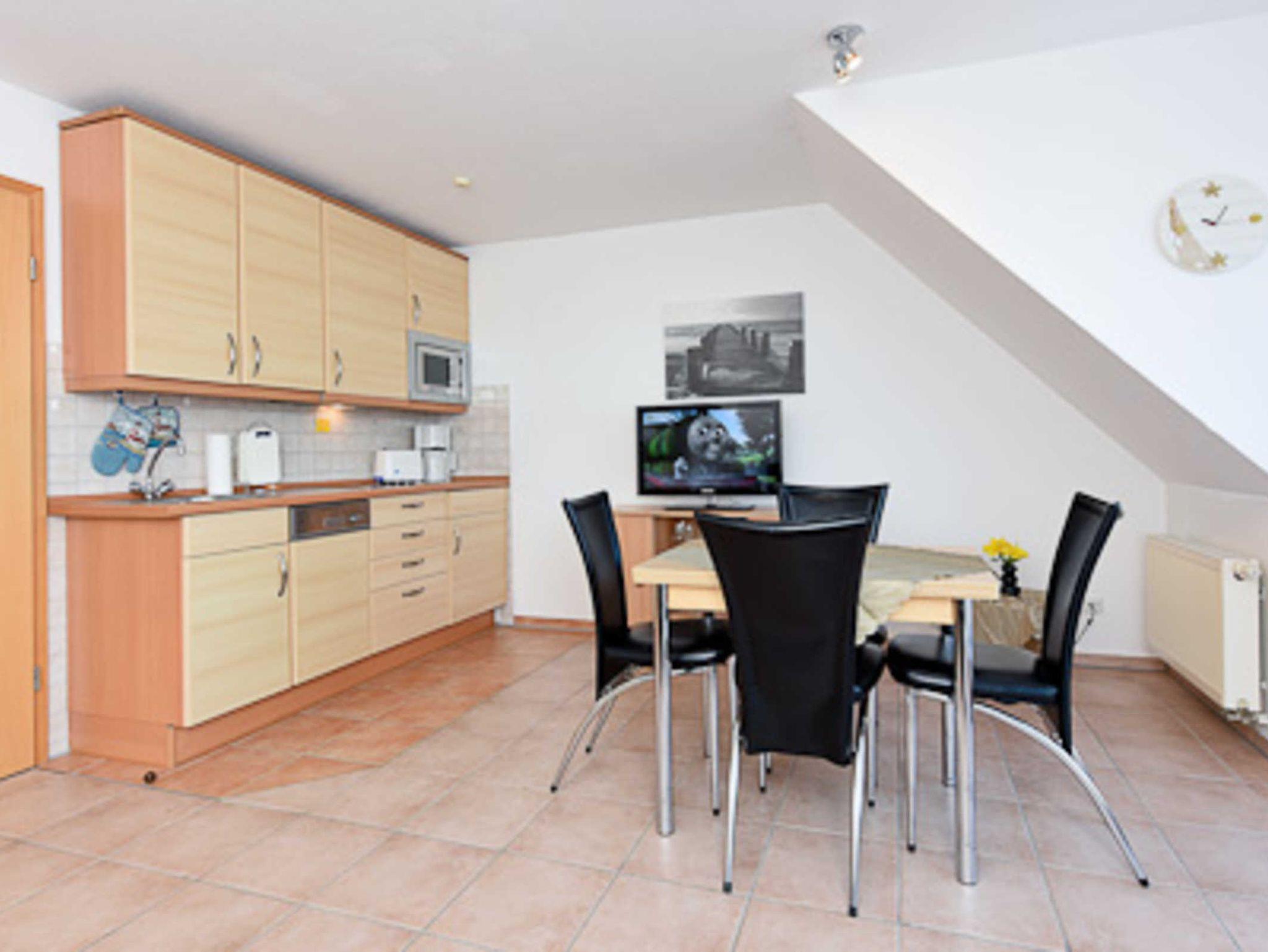 Die Wohnung befindet sich im 4. Obergeschoss des Nordseegartenparkes; vom Balkon aus haben Sie einen herrlichen Blick auf die Nordsee. Die Räume sind über zwei Wohn-Ebenen verteilt. Im zweiten Schlafzimmer, das sich im Dachstudio befindet, ist ein zweiter Fernseher untergebracht.