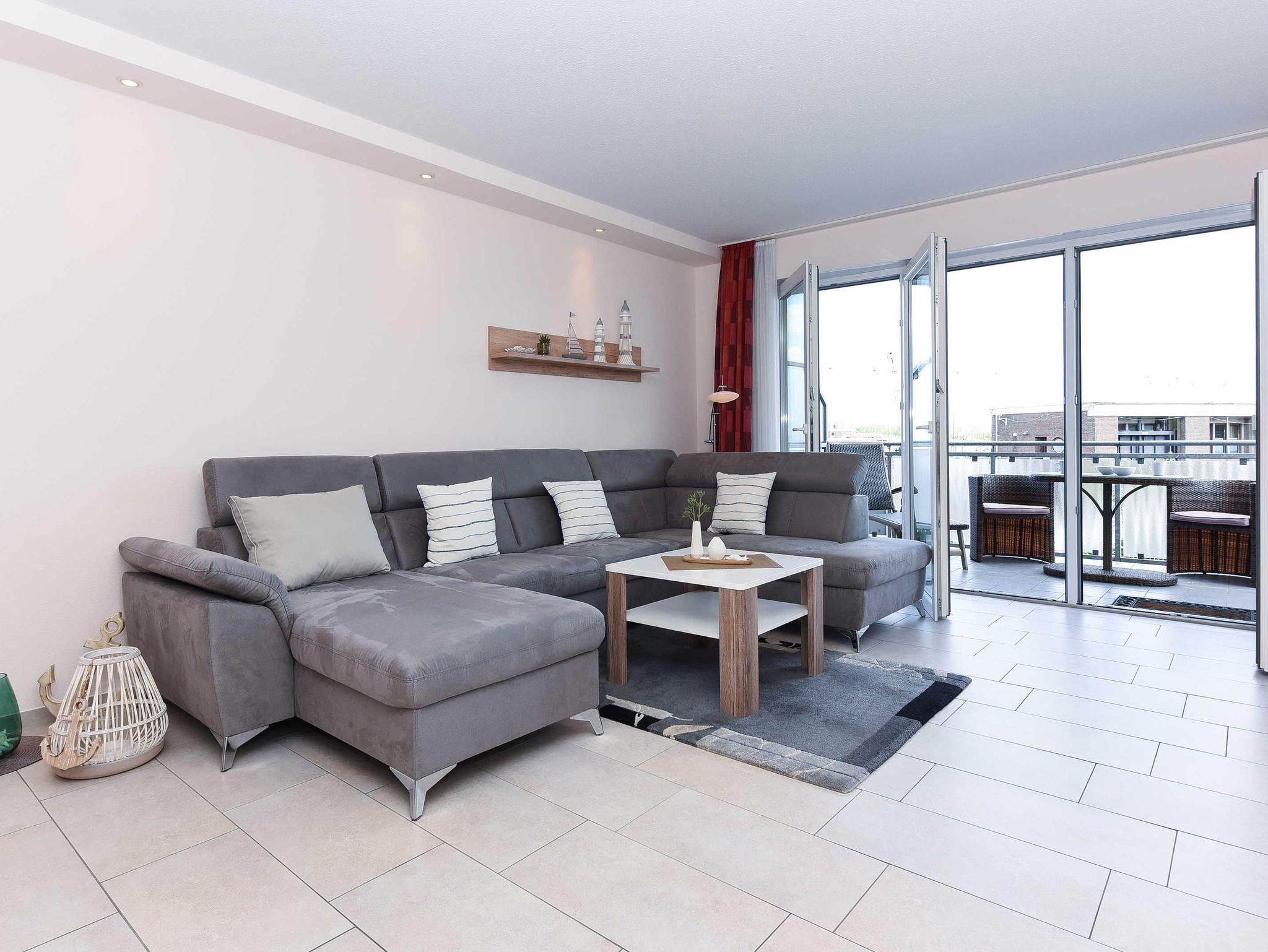 Komfortable Ferienwohnung in Bensersiel mit Balkon, Meerblick und direktem Zugang zum Strand und Hafen.