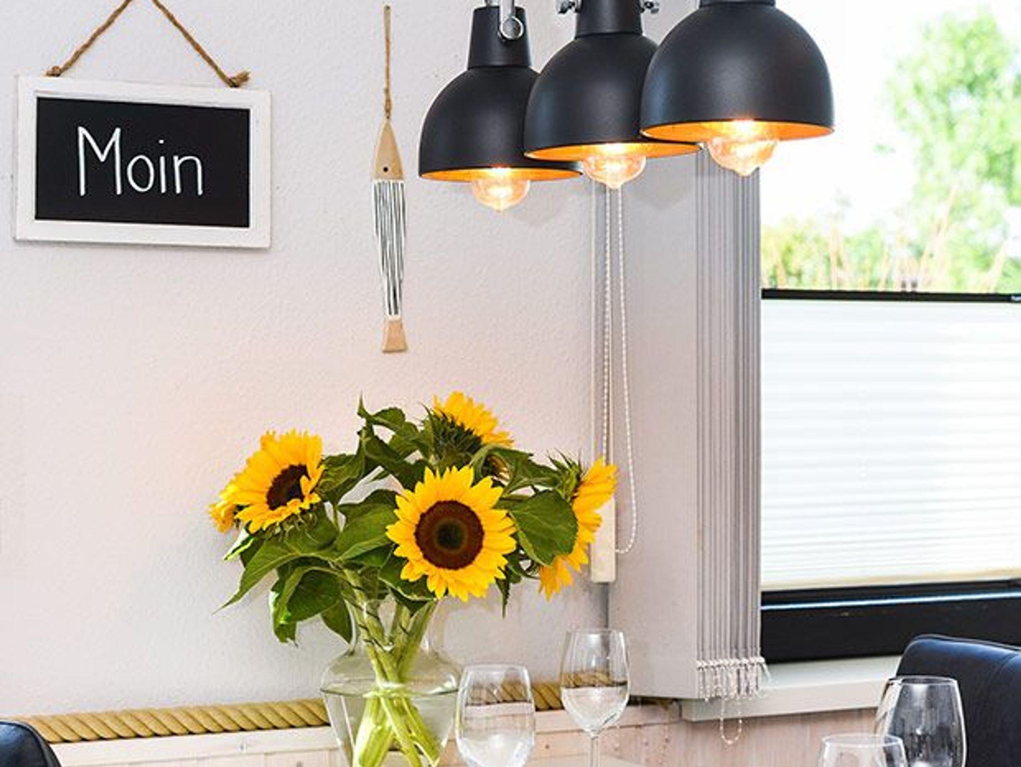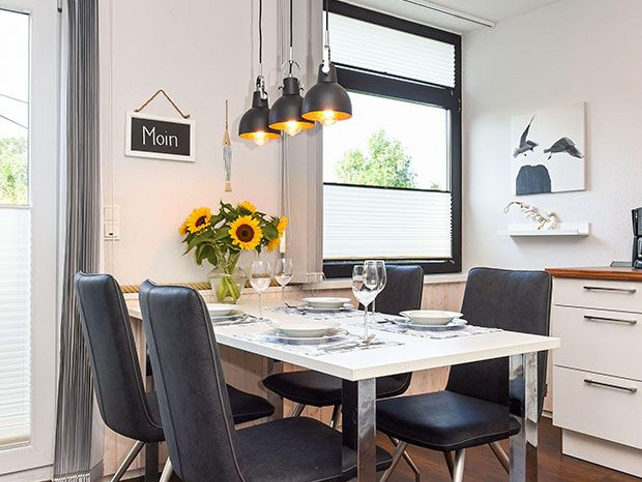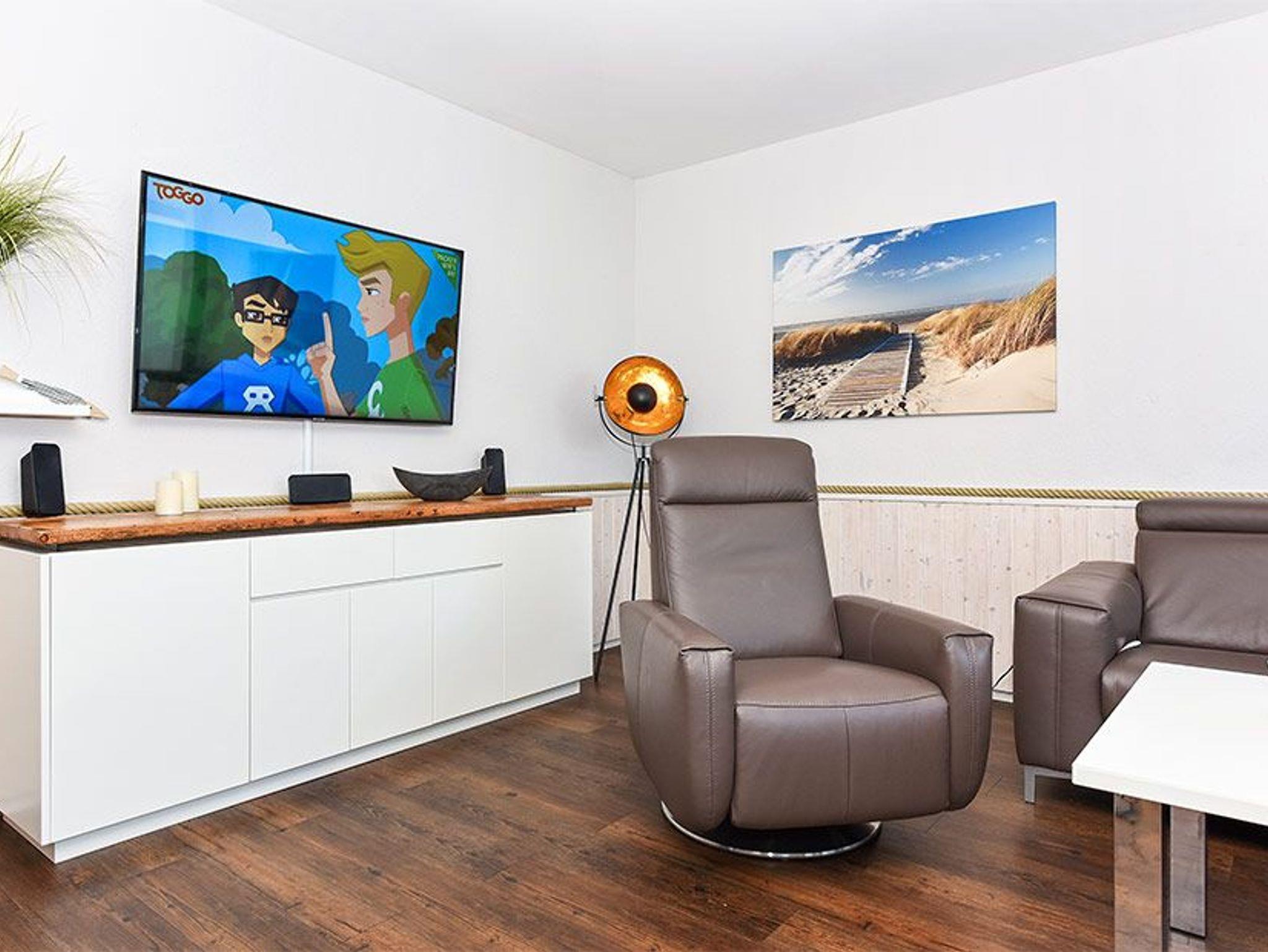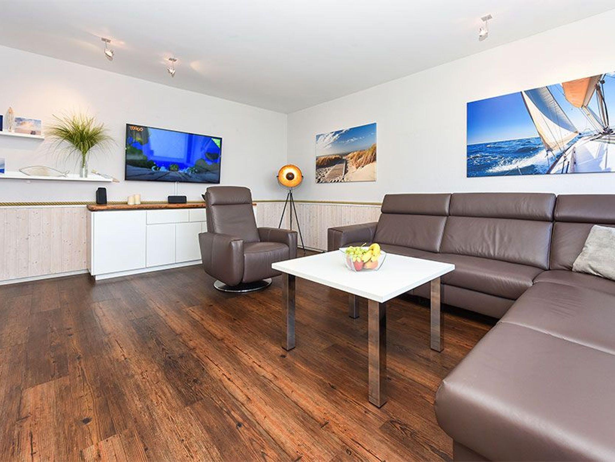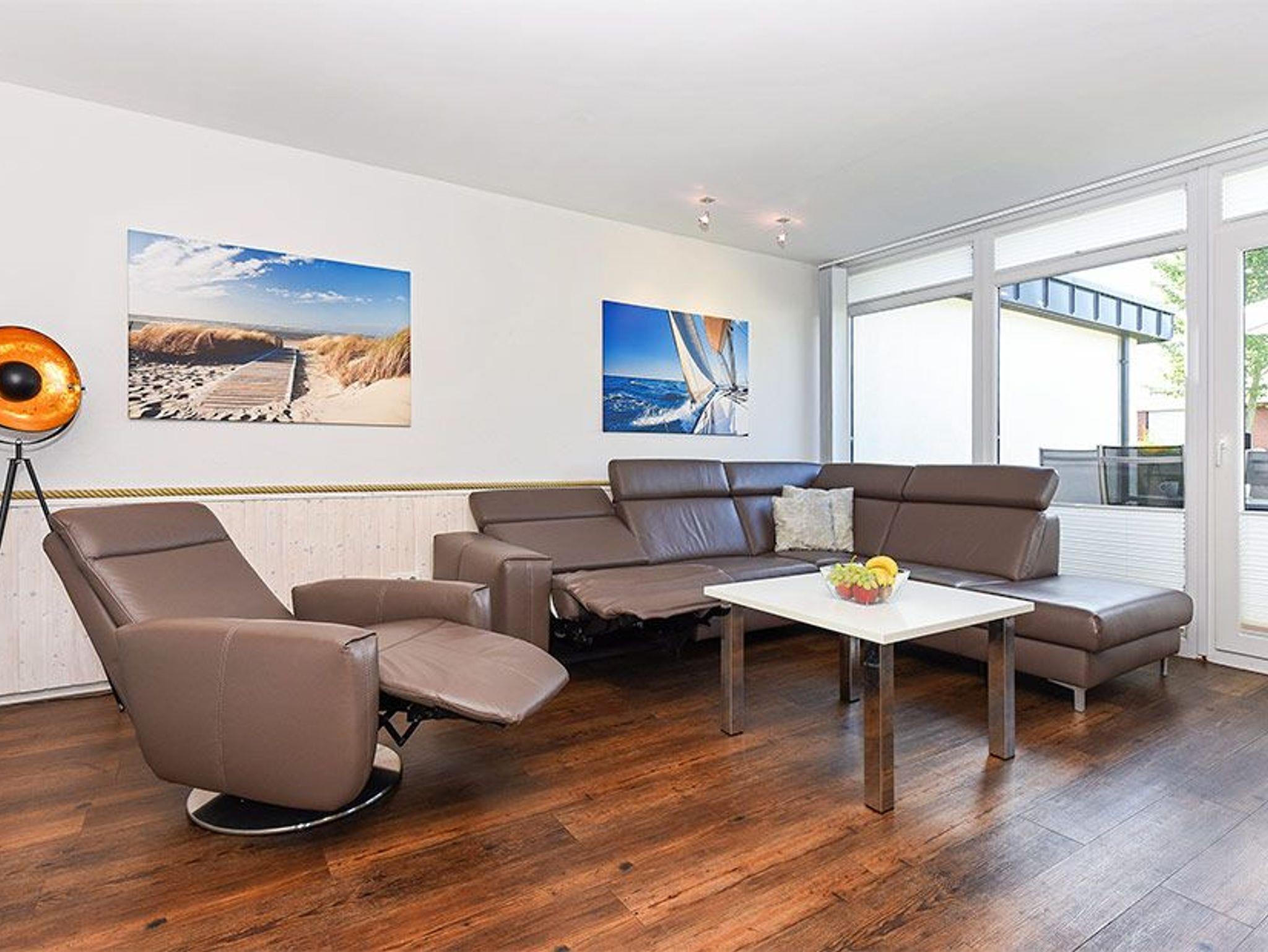 Modern eingerichtete Ferienwohnung in Bensersiel mit Terrasse, ideal für einen stilvollen Nordseeurlaub.