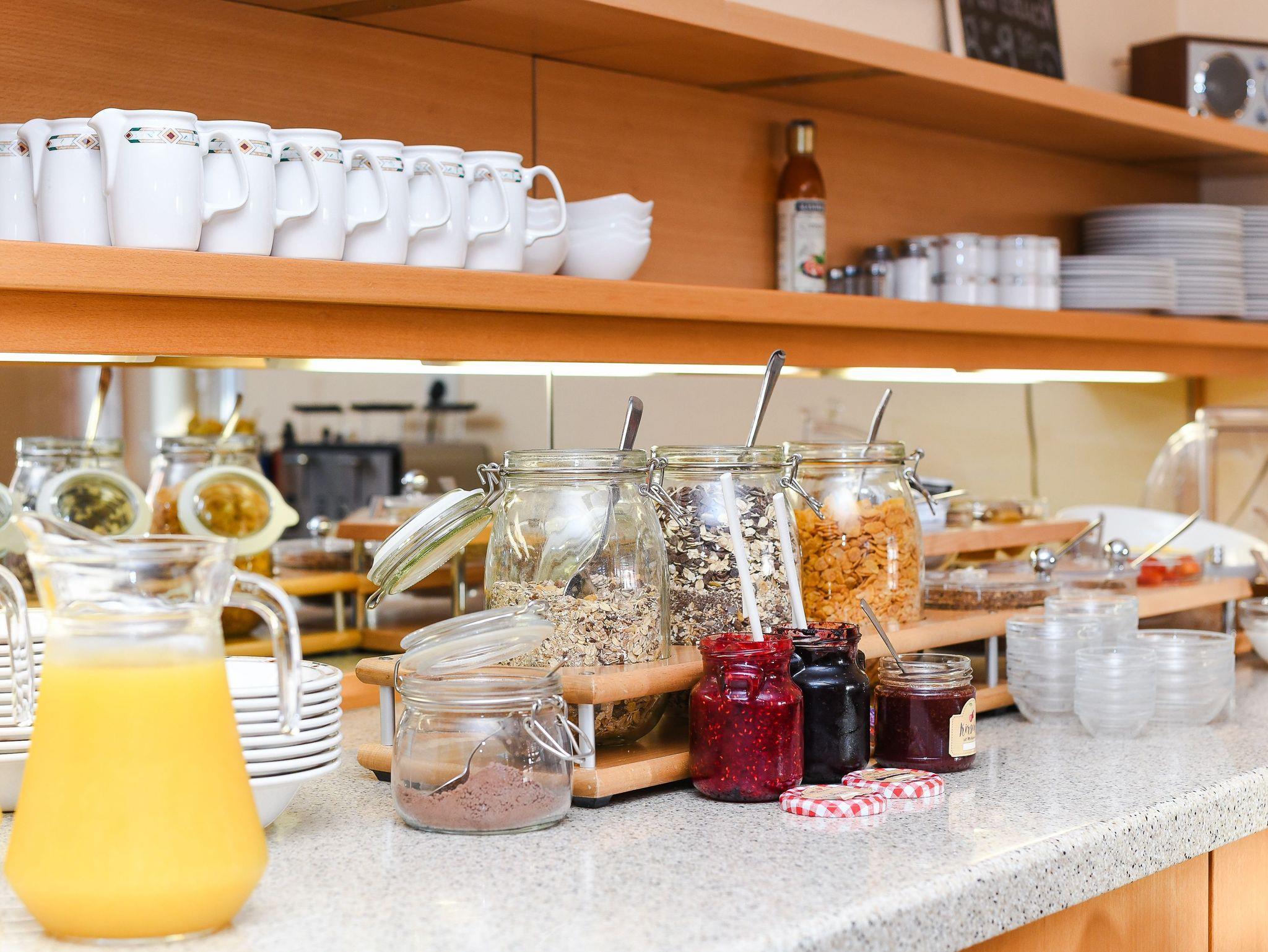 Jeder Morgen beginnt mit einem leckeren Frühstück. Im Aufenthalt in den Zimmern ist automatisch das Frühstück enthalten. Die Apartmentgäste können auf Wunsch gerne auch am Frühstück teilnehmen.