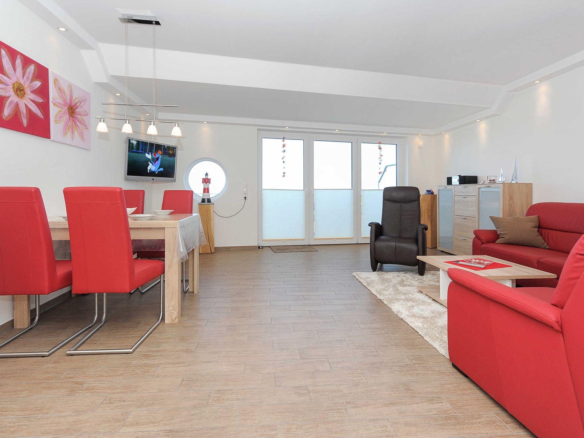 Vom Balkon aus haben Sie einen herrlichen Blick auf die Nordsee, Inseln, Strand und Hafen. Das Badezimmer verfügt über ein Fenster.