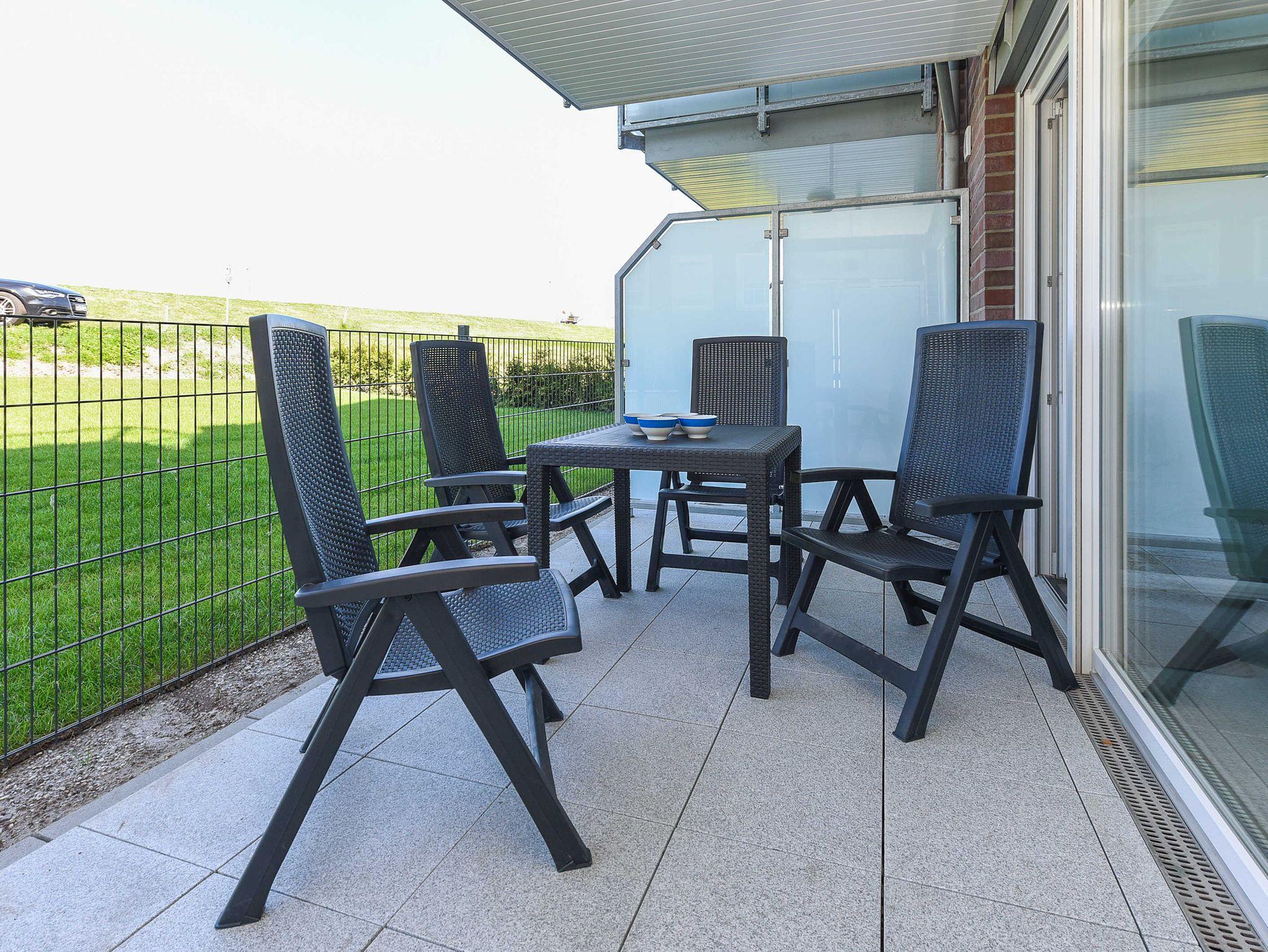 Moderne Ferienwohnung Weiße Düne in Residenz Waterkant mit Nordsee- und Hafenblick in Bensersiel.