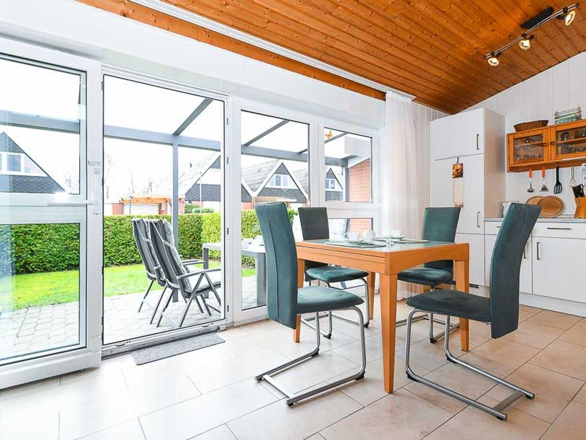 Das Ferienhaus Kerstin ist hell und freundlich gestaltet, komfortabel und modern-gemütlich eingerichtet sowie sehr gut ausgestattet. Es verfügt zum Beispiel über eine Küche mit Geschirrspülmaschine und Mikrowelle, ein modernes Boxspringbett im Elternschlafzimmer, einen Hauswirtschaftsraum mit Waschmaschine sowie über eine große geschützte Terrasse am Wohnzimmer mit direktem Gartenzugang.
