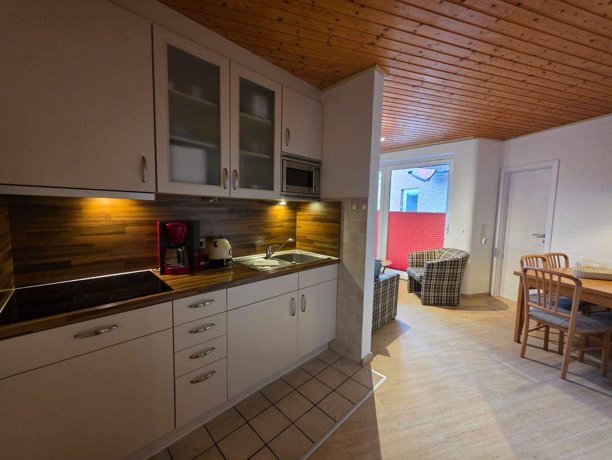Moderne Ferienwohnung Strandläufer im Gezeitenhaus Bensersiel mit WLAN, Terrasse und komfortabler Ausstattung für erholsamen Urlaub.