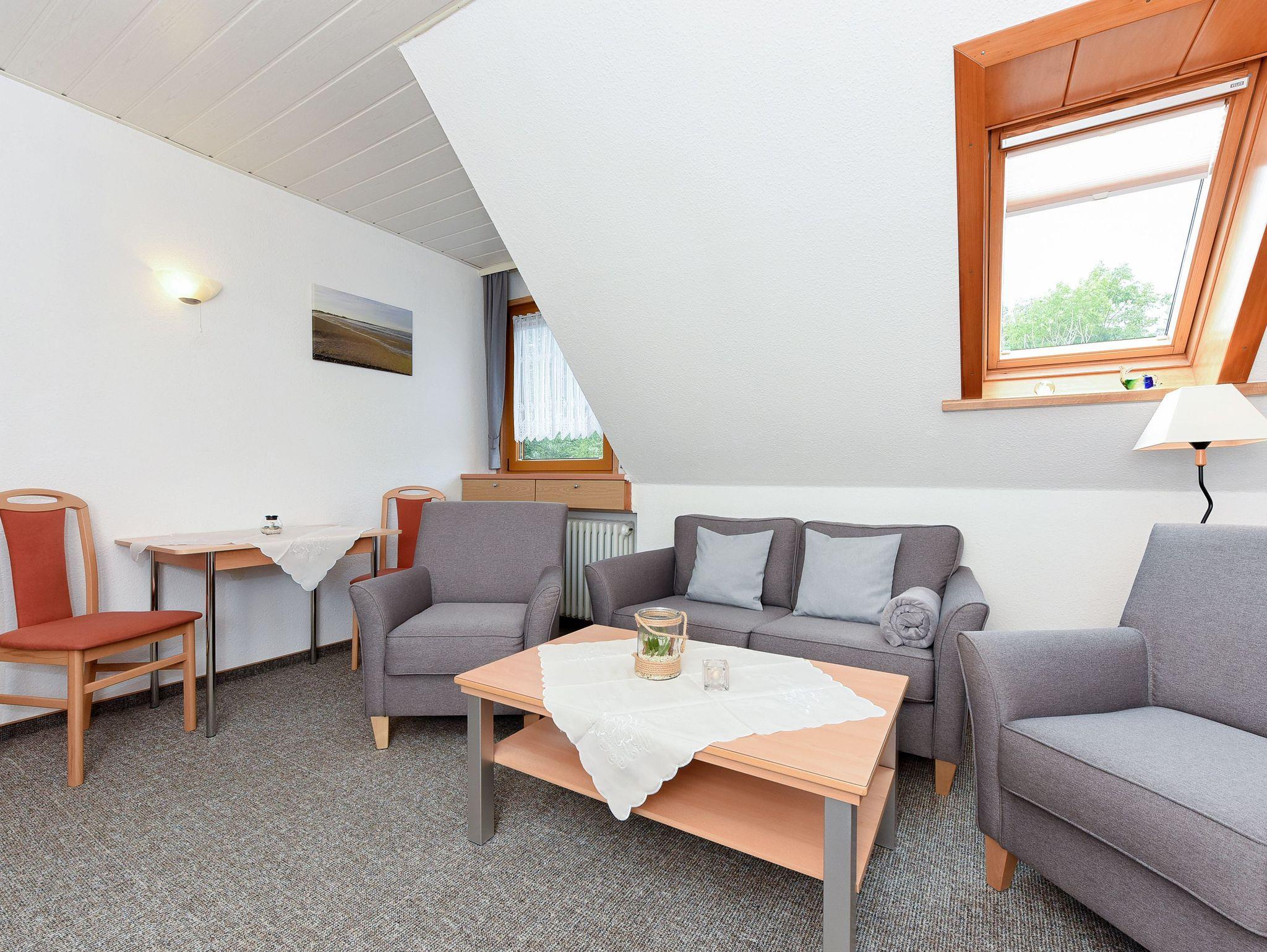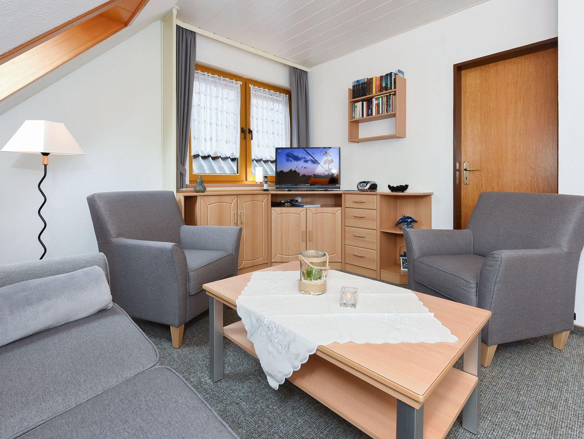 Gemütliche Ferienwohnung Mitteldeck im Haus Möwe, nur 250 m vom Deich im Nordseeheilbad Bensersiel entfernt.
