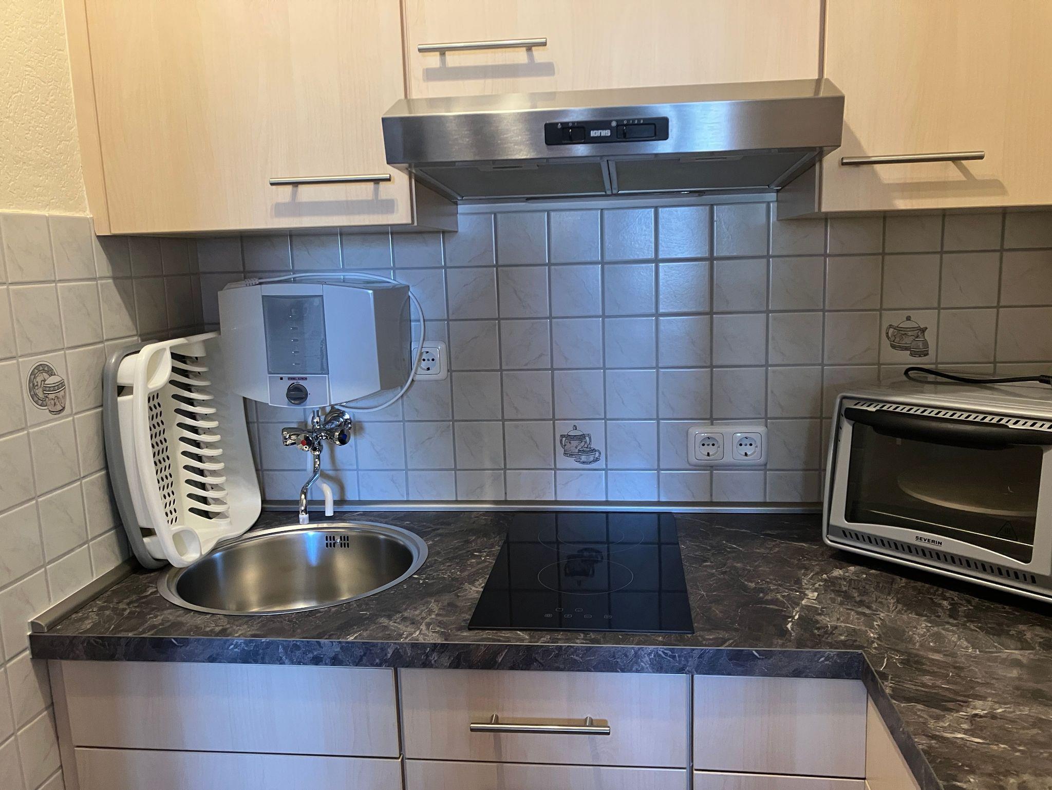 Die Ferienwohnung befindet sich im Erdgeschoss (links). Sie ist voll ausgestattet, verfügt über Wohnraum mit Küche und Minibackofen, Schlafraum seit 2015 mit zwei Einzelbetten von 90 x 200cm, Zugang zur Terrasse und Bad mit Dusche/WC. Gartenmöbel laden zum Ausruhen ein. Sie werden sich wohlfühlen und gut erholen können.