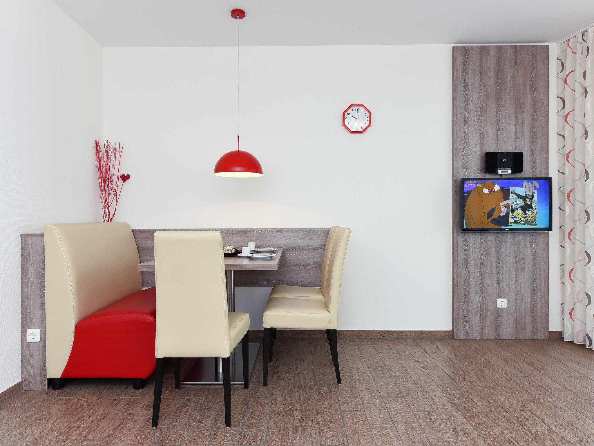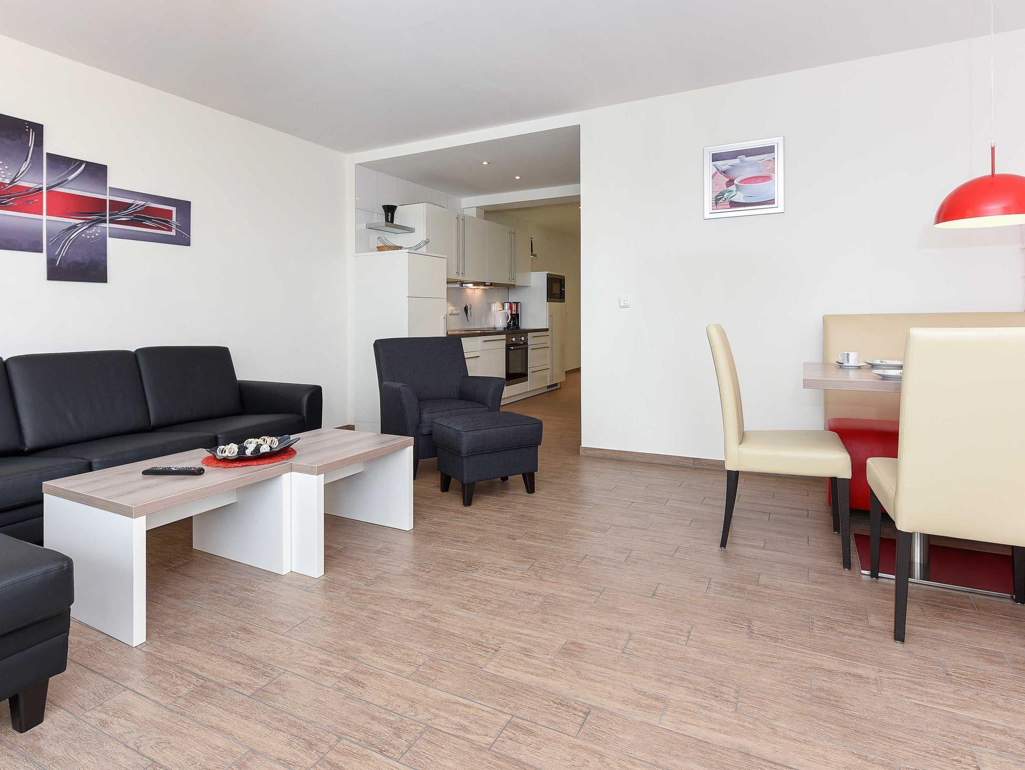 Die großzügigen und ungefähr 45 bis 64 Quadratmeter großen Ferienwohnungen in der „Residenz Hafenidyll“ für eine bis zwei Personen oder für eine bis vier Personen sind auf sehr hohem Standard, gemütlich-modern, sehr komfortabel und freundlich eingerichtet und gestaltet sowie technisch auf hervorragendem Stand ausgerüstet.