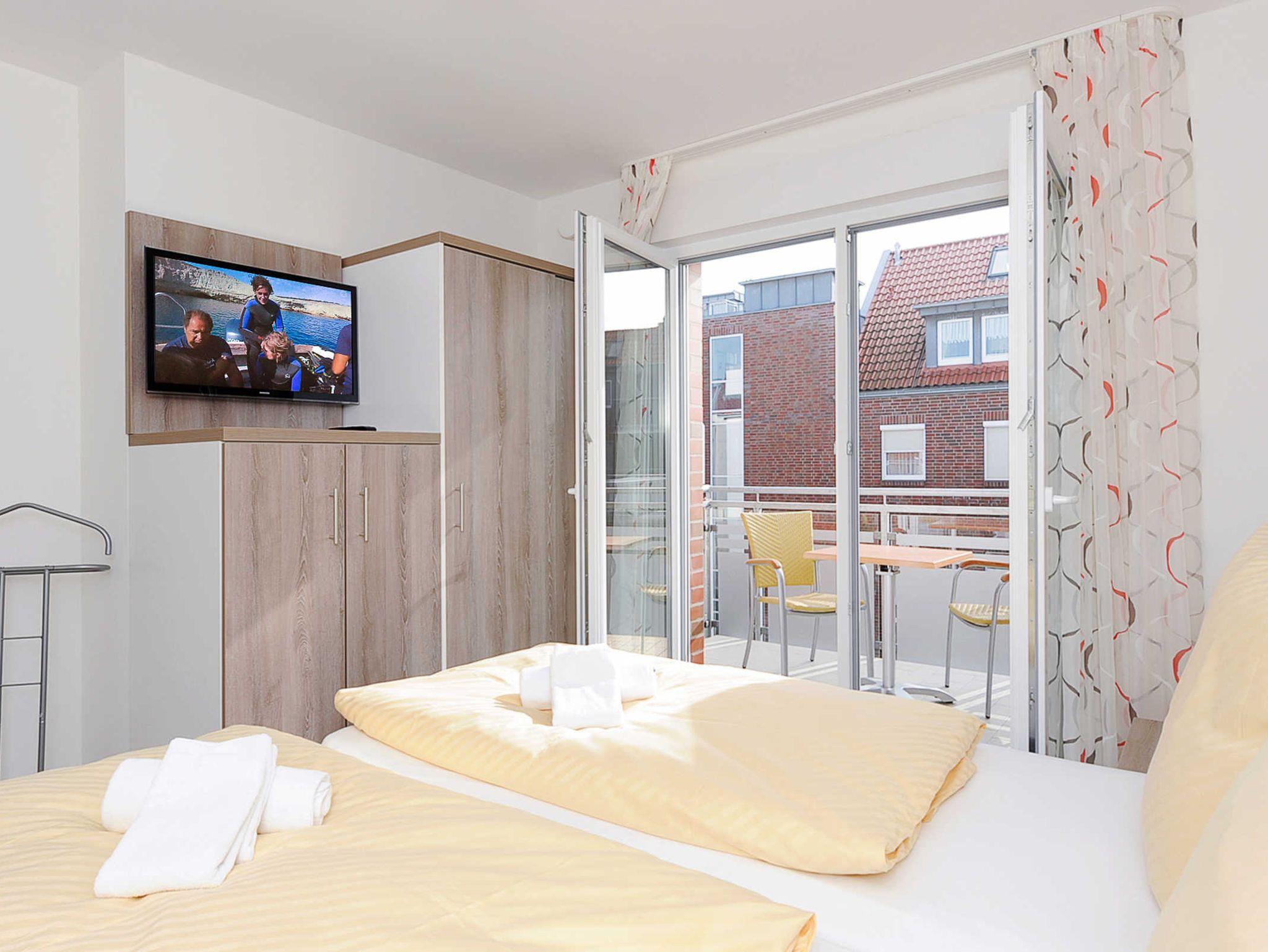 Vom Balkon aus haben Sie einen herrlichen Blick auf die Nordsee, Inseln, Strand und Hafen.