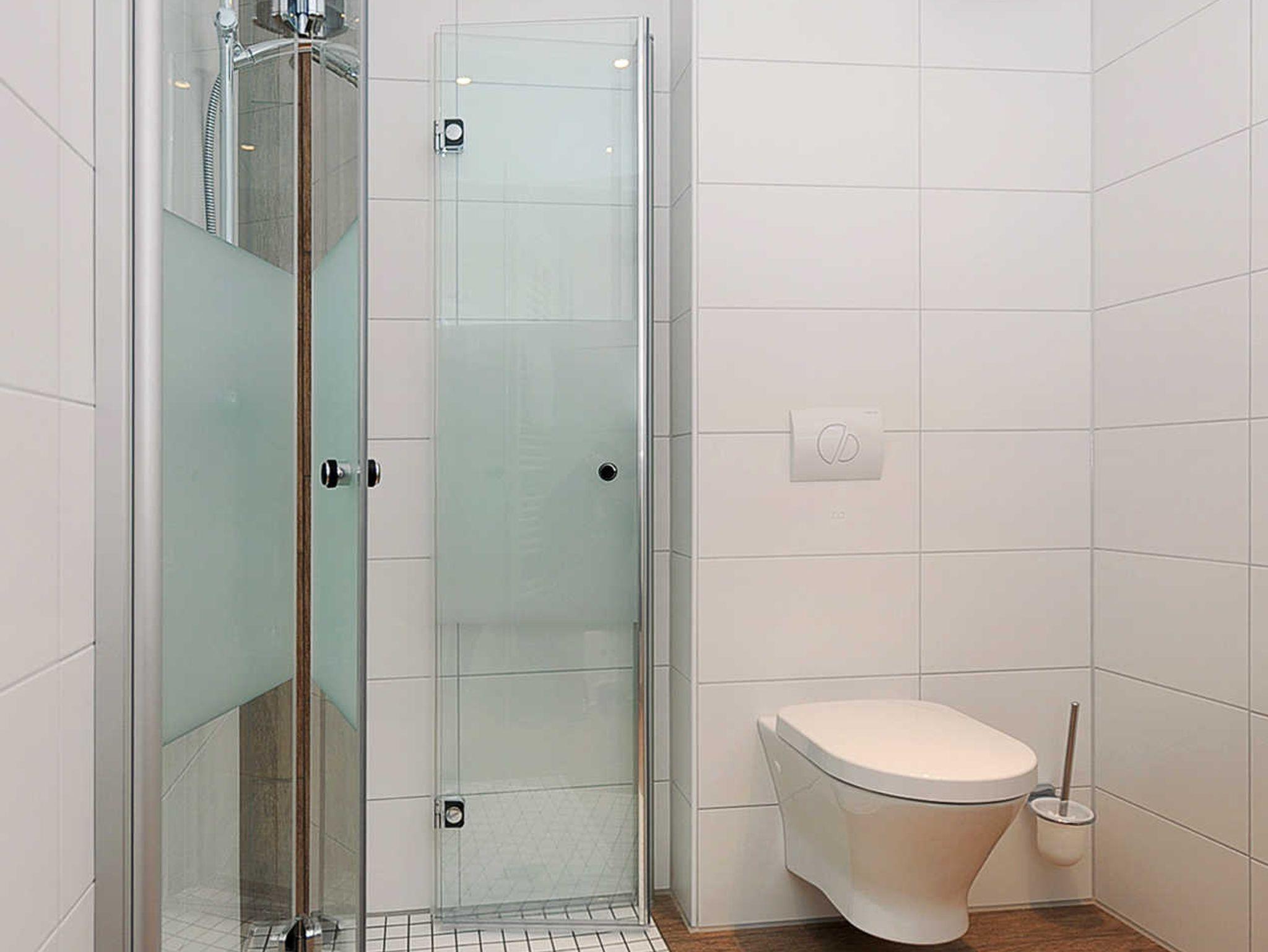 Badezimmer mit Dusche, Waschtisch und WC