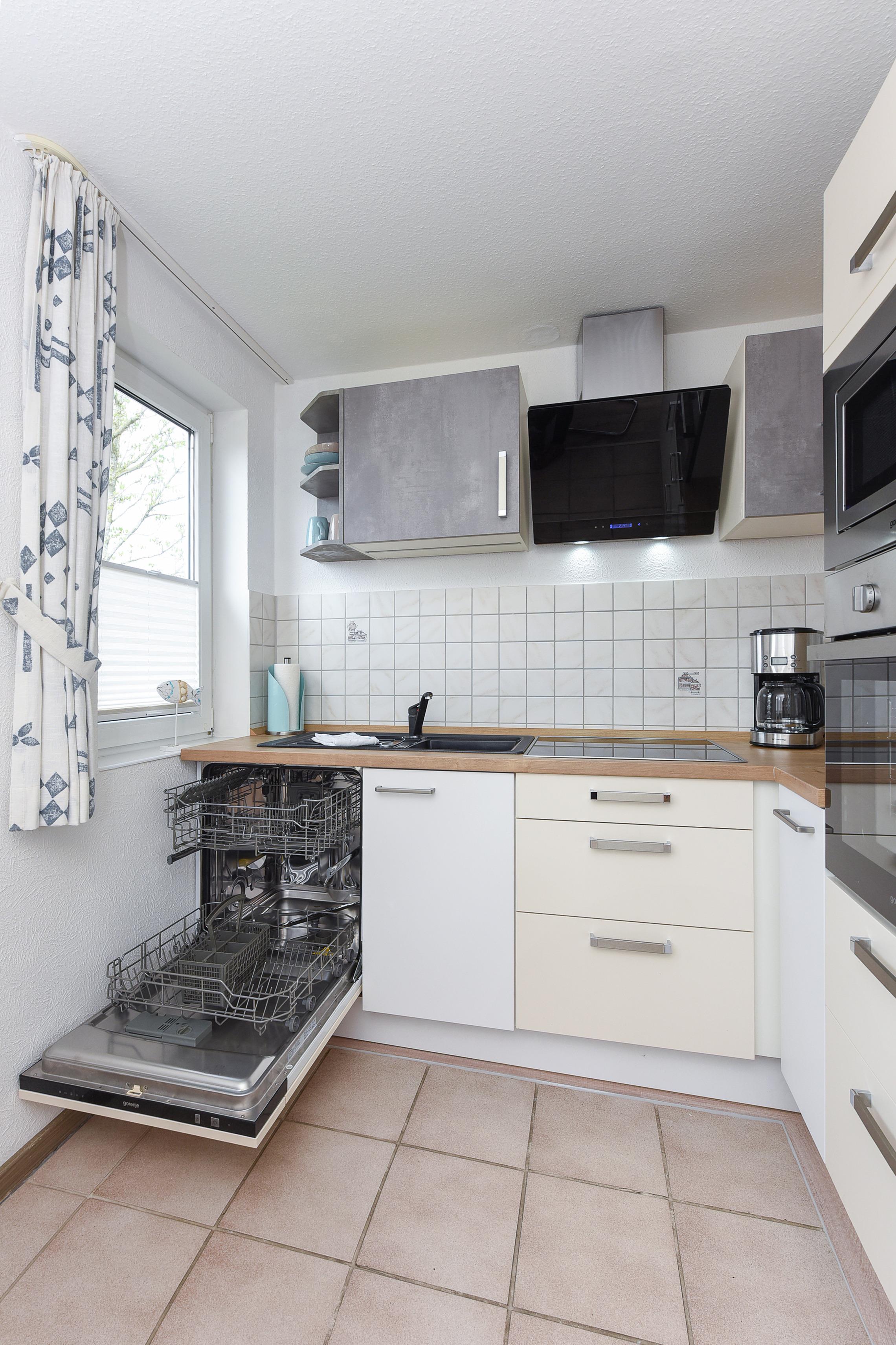 Die toll ausgestattete Küche bietet nicht nur einen Kühlschrank und Ofen, sondern auch eine Mikrowelle und Kaffeemaschine!