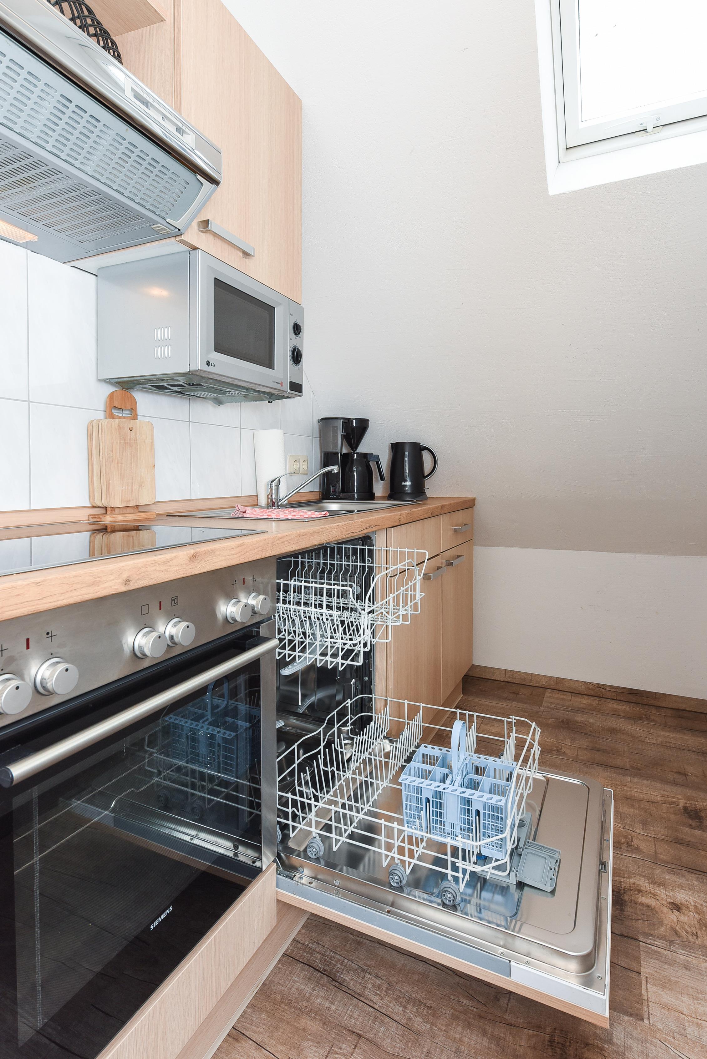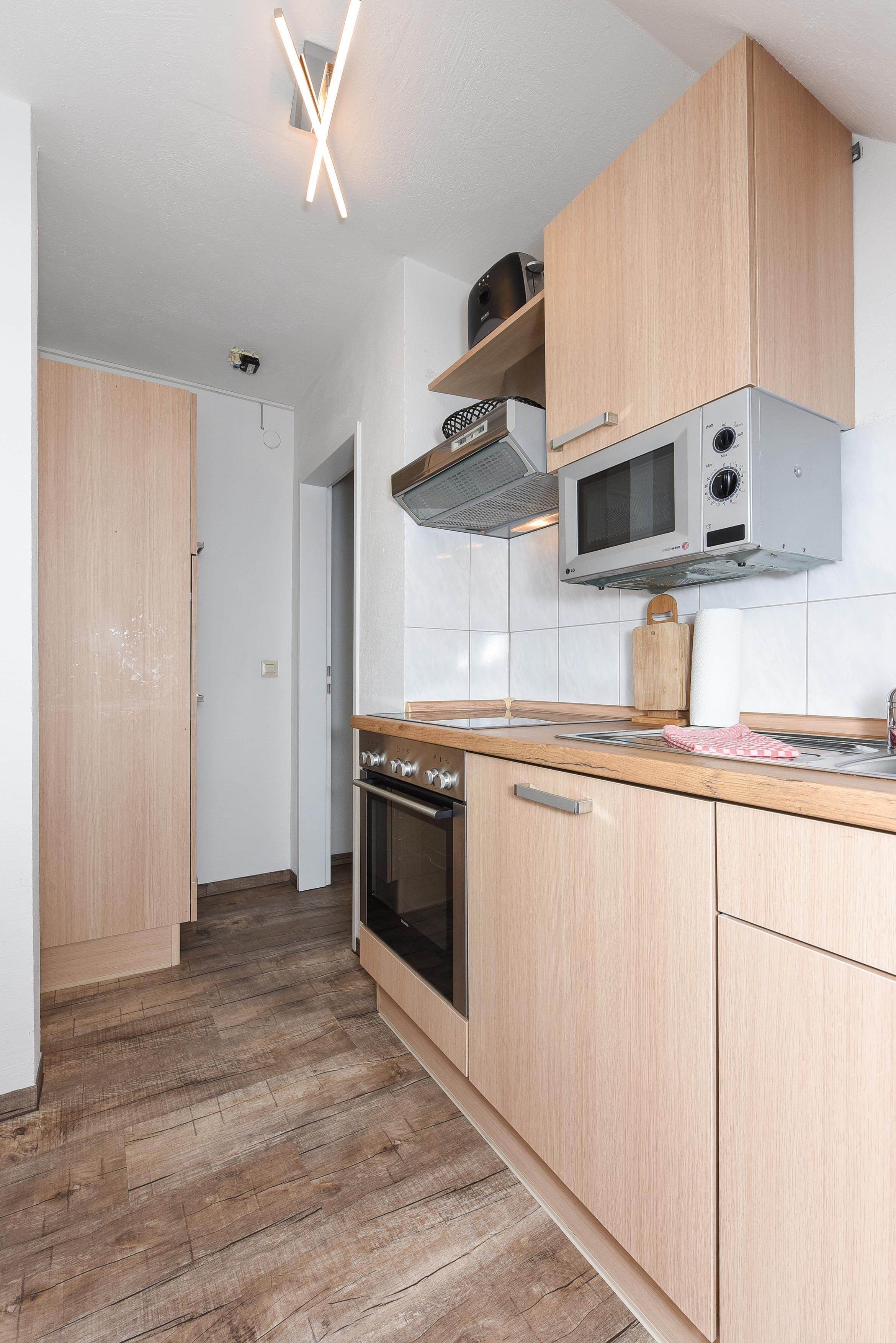 Der Balkon bietet frische Luft und Entspannung direkt an Ihrer Unterkunft. Die toll ausgestattete Küche bietet nicht nur einen Kühlschrank und Ofen, sondern auch eine Mikrowelle und Kaffeemaschine!