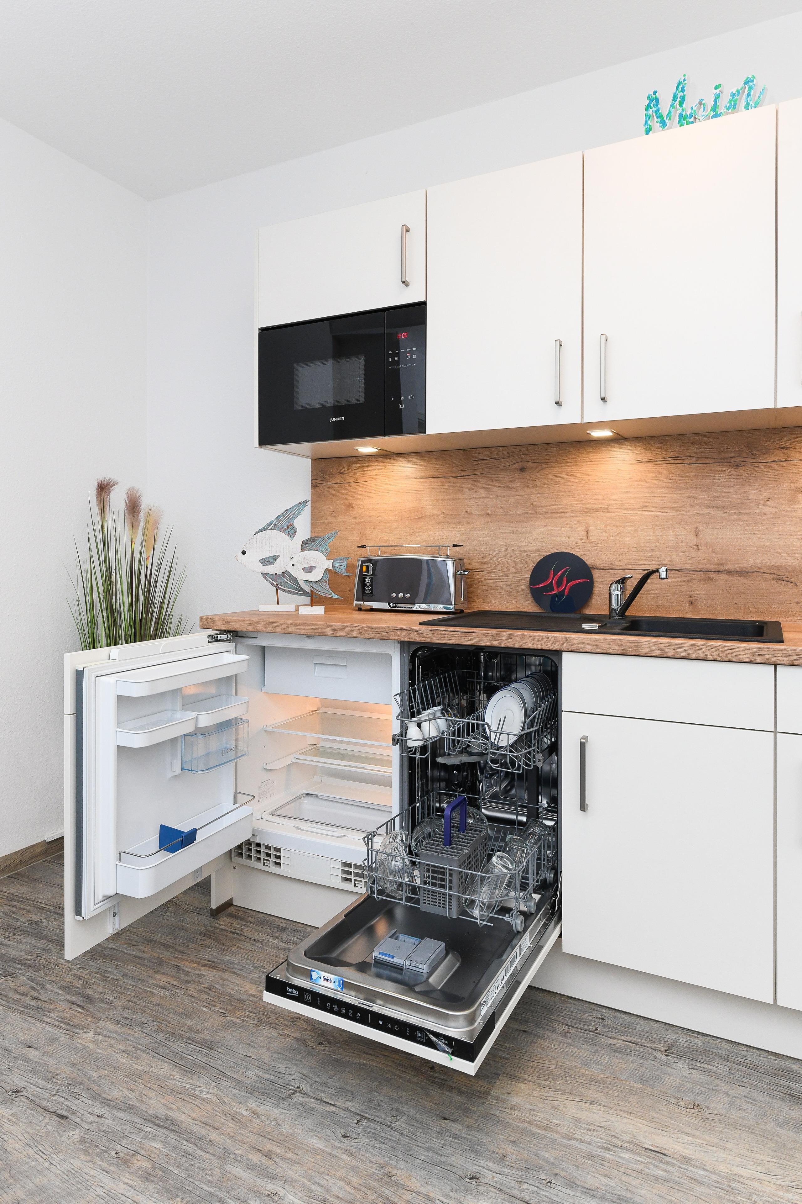 Genießen Sie Ihren Urlaub in vollen Zügen, bei schönem Wetter auch draußen auf der Terrasse. Die toll ausgestattete Küche bietet nicht nur einen Kühlschrank und Ofen, sondern auch eine Mikrowelle und Kaffeemaschine!