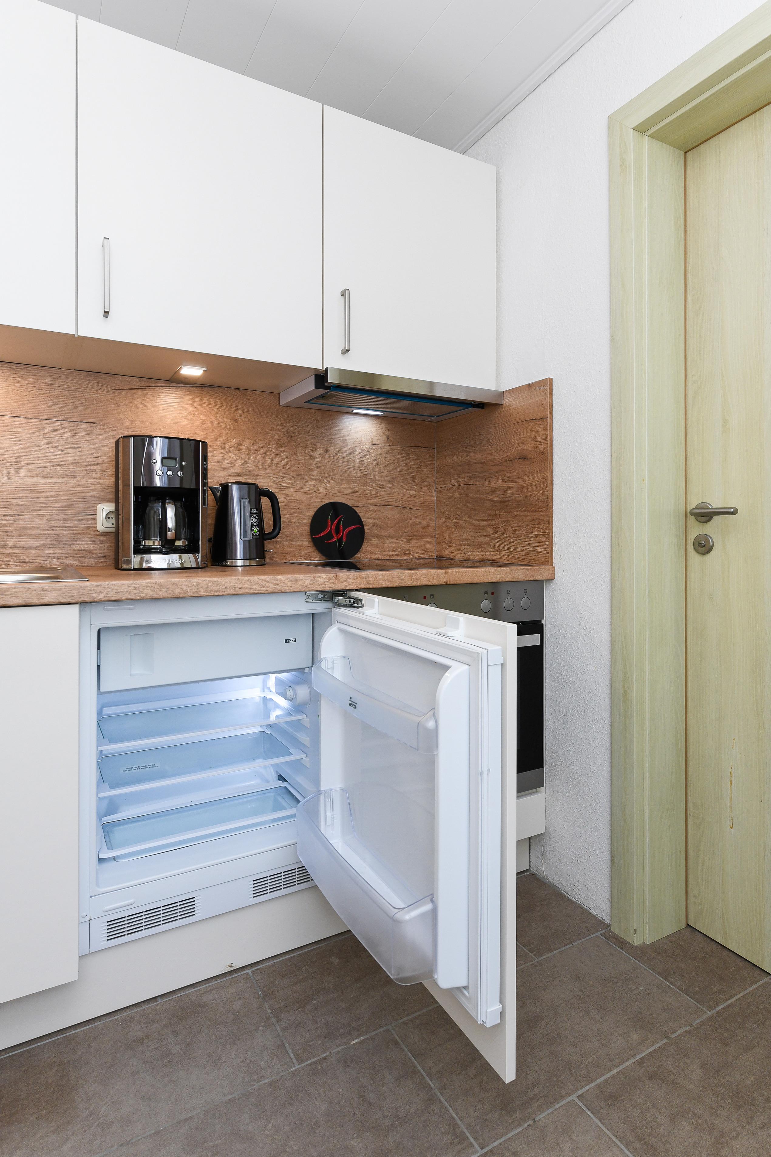Richtige Urlaubsstimmung kommt auf der schönen Terrasse der Ferienwohnung auf. Die gut ausgestattete Küche besitzt unter anderem einen Kühlschrank, einen Herd zum Kochen und sogar eine Spülmaschine.