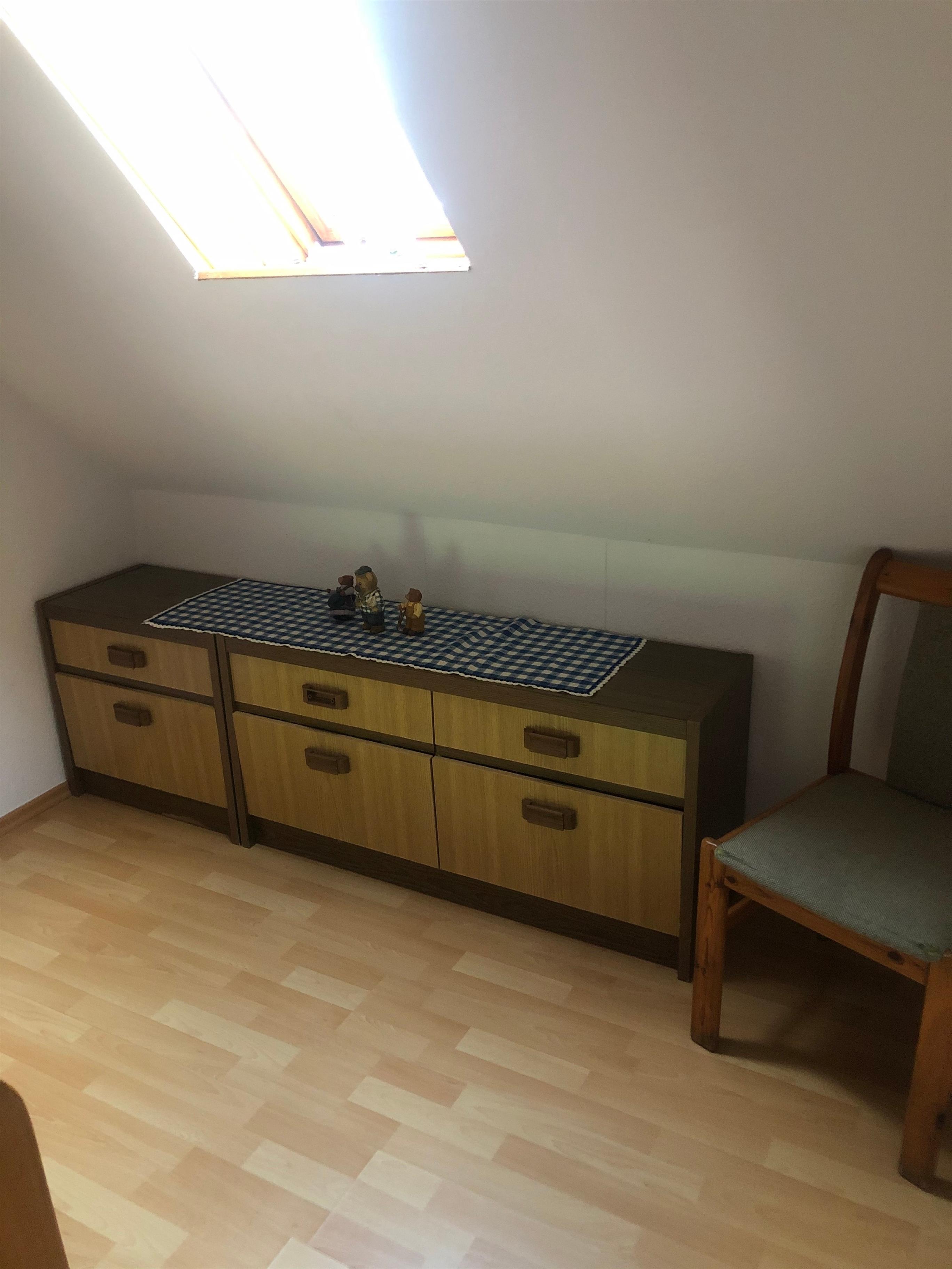 Im Obergeschoß des Hauses befinden sich 2 geräumige Schlafzimmer (Doppelzimmer mit Kinderbett, 3-Bett-Zimmer).