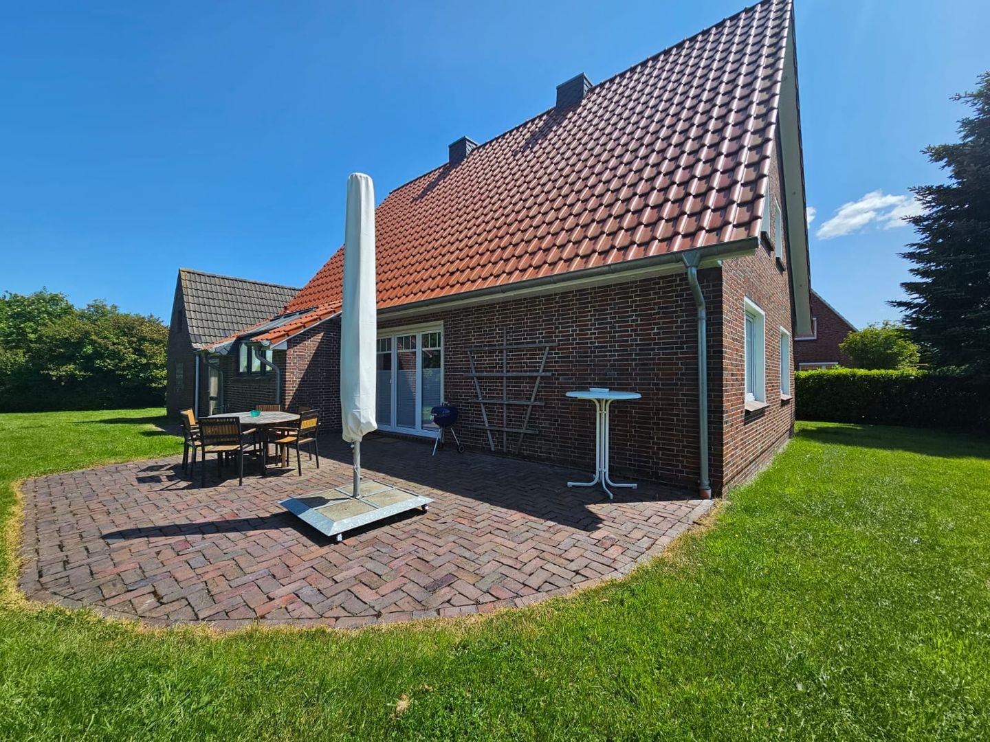 Das Herzstück der Unterkunft ist der weitläufige, vollständig eingezäunte Garten mit einer Gesamtfläche von 1.000 m². Hier können Sie die frische Nordseeluft genießen, während Ihr Hund sicher herumtoben kann. Auf der möblierten Terrasse mit Kugelgrill lassen sich entspannte Grillabende verbringen. Dank der ruhigen Lage finden Sie hier die ideale Umgebung, um abzuschalten und neue Energie zu tanken.