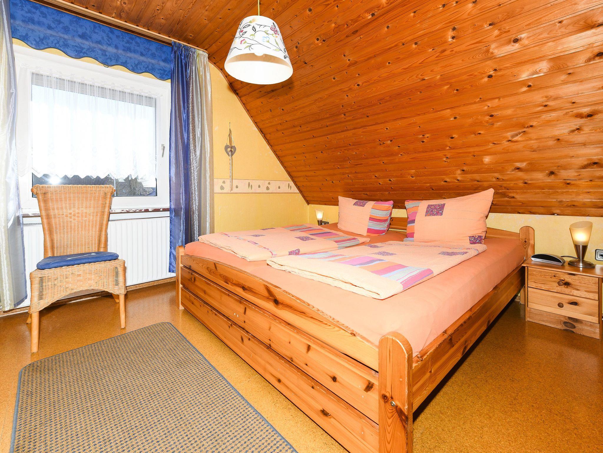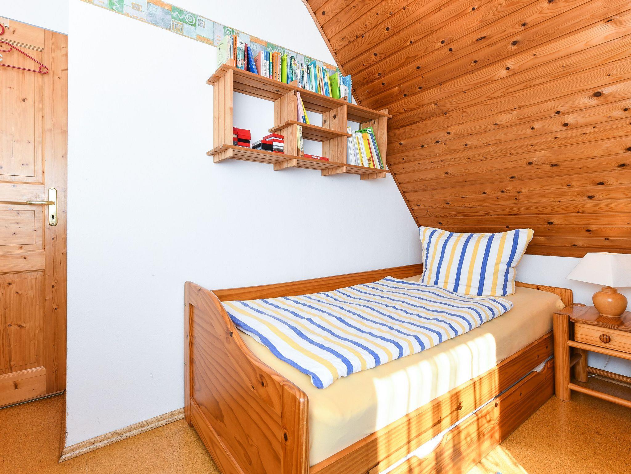 Größe ca. 70 Quadratmeter, Wohnzimmer, Küche, Schlafzimmer, zweites separates Schlafzimmer, drittes separates, Schlafzimmer, Badezimmer mit Dusche, Waschtisch und WC, Obergeschoss, Terrasse am Garten, überdachte Terrasse, optimal für 2 bis 6 Personen und zusätzlich 2 Kleinkinder.