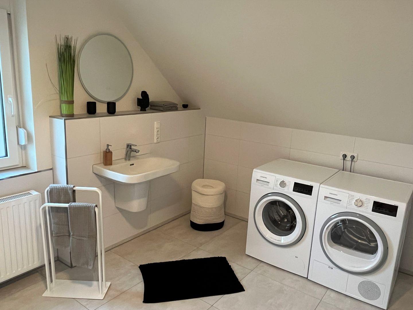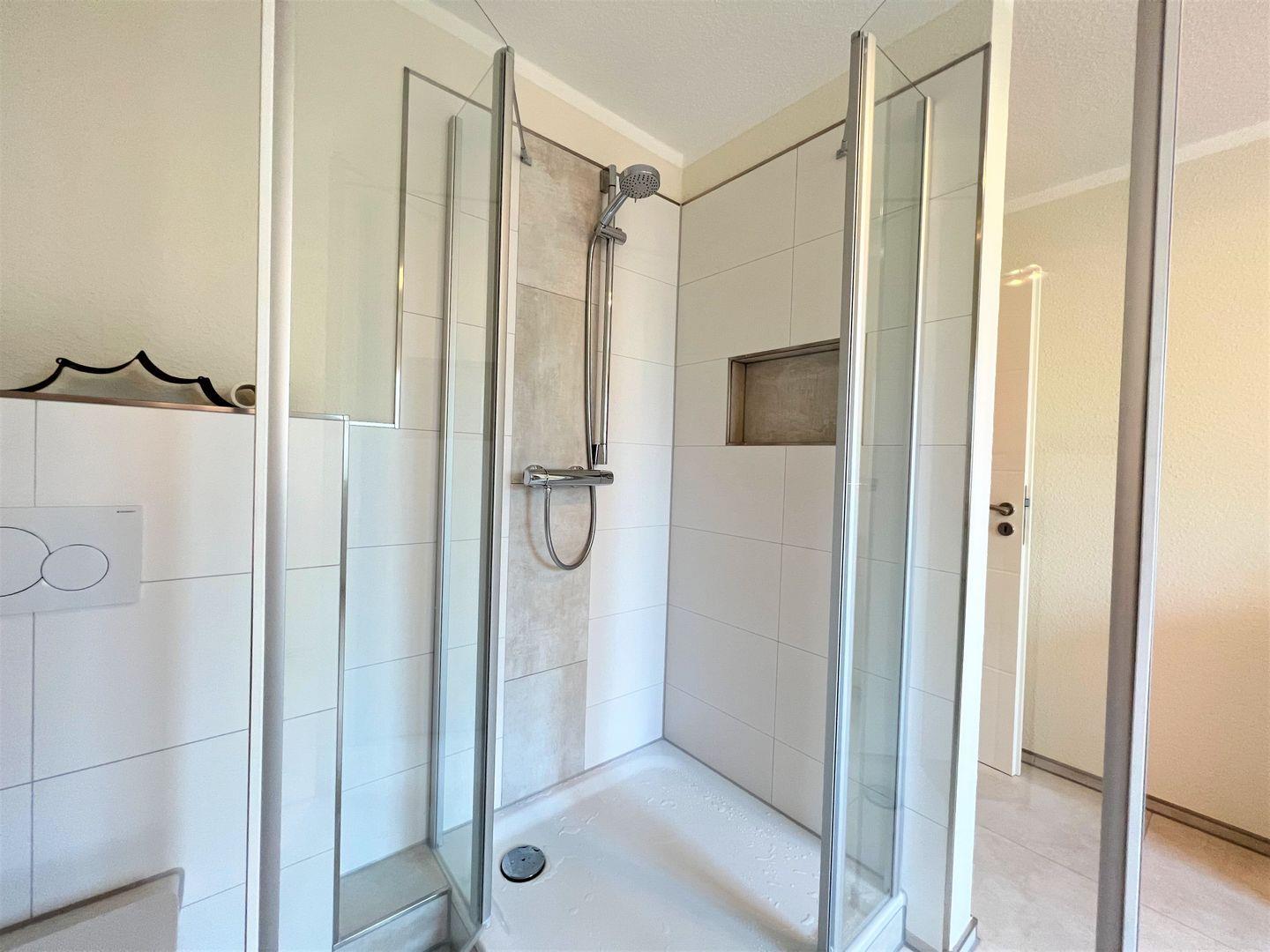 Es besteht aus einem geräumigen, modernen Wohn-Eß und Küchenbereich, einem Schlafzimmer und einem großzügigen Duschbad mit Tageslicht. Waschmaschine und Trockner ergänzen das moderne Bad.