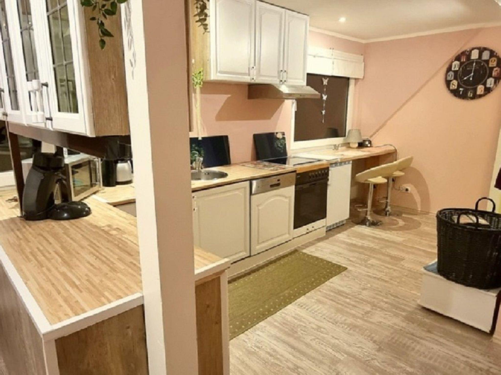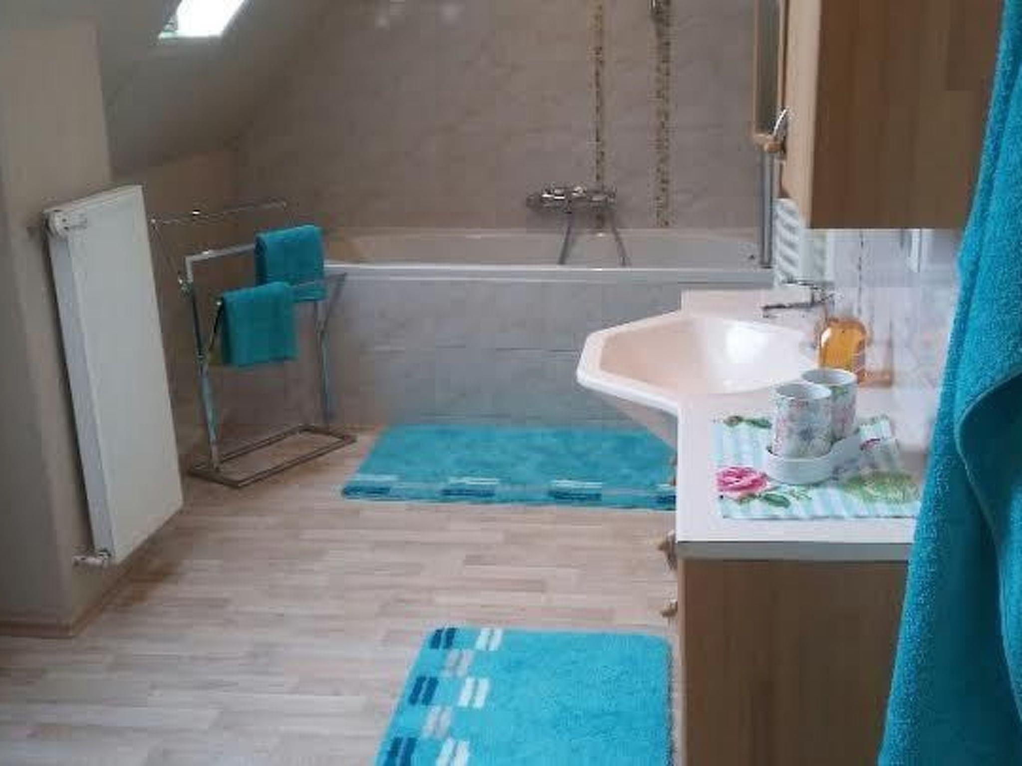 Renovierte Ferienwohnung befindet sich im ersten Stock des Hauses und ist über eine Außentreppe zu erreichen. Die 70 m² große Wohnung bietet Platz für 2 Erwachsene und 2 Kinder. Vom lichtdurchfluteten Eingang, der über die Terrasse erreichbar ist, kommt man in die voll ausgestattete Küche mit Herd, Backofen, Geschirrspüler, Kaffeemaschine, Toaster, Kühlschrank und einer Essecke. Angrenzend, durch einen Kaminofen unterteilt, befindet sich das helle Wohnzimmer mit gemütlichen Möbeln, Liegesofa (1 x 90 cm) und Flachbild Sat.-TV. Das geräumige Badezimmer ist mit einer Badewanne und integrierter Dusche ausgestattet. Die beiden gemütlichen Schlafzimmer grenzen aneinander. Das Erste verfügt über ein Doppelbett mit den Maßen 180 x 200 cm und der zweite Schlafraum bietet ein 180 x 200 cm großes Doppelbett. Ein Reisebett wird bei Bedarf gerne zur Verfügung gestellt. In jedem Zimmer der Ferienwohnung befinden sich Heizkörper und zusätzlich zwischen Küche und Wohnzimmer der Kaminofen. Der Internetzugang hat eine Leistung von 100 Mbit/s.
