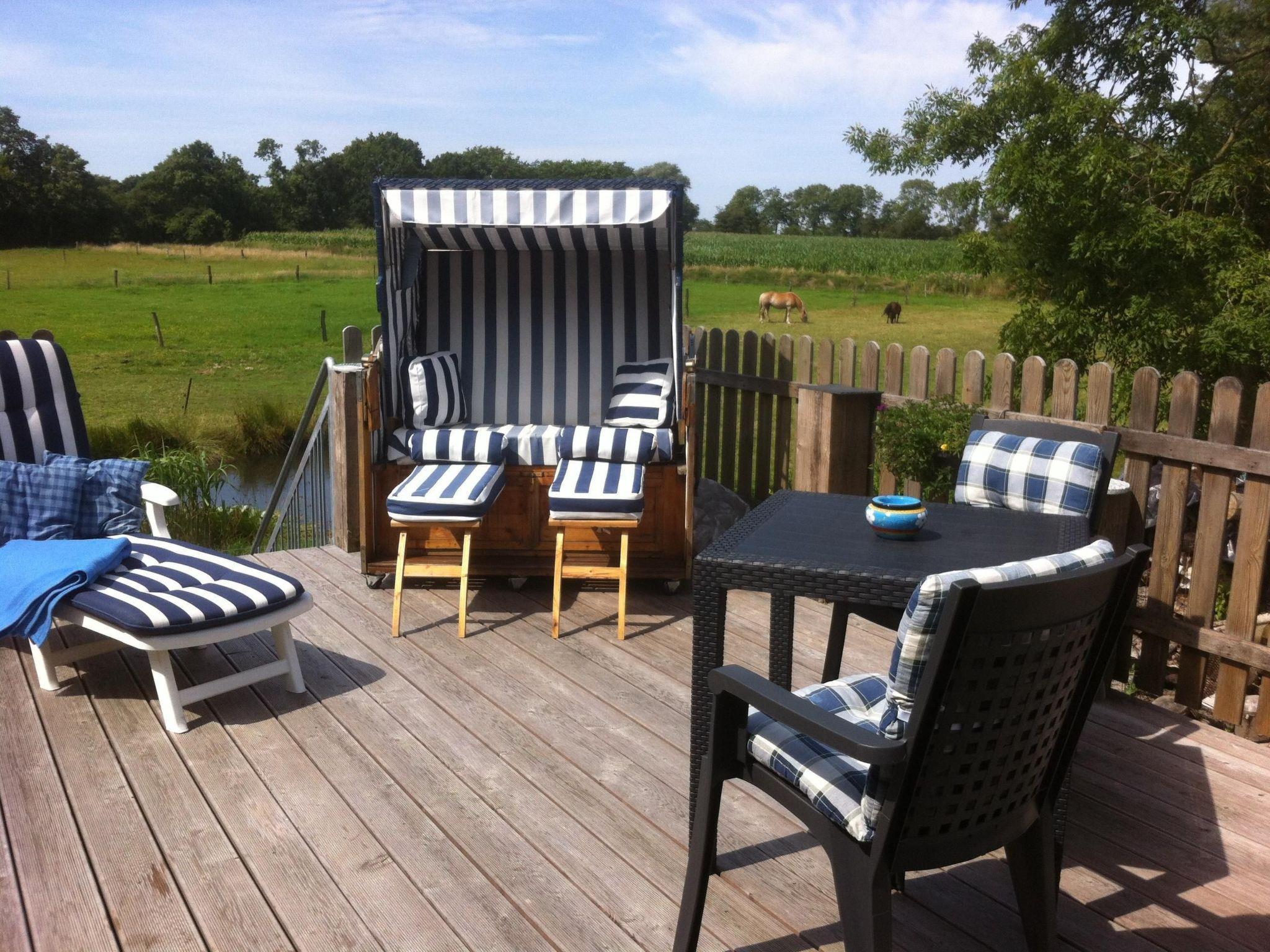 An dieser Stelle präsentiert sich Ihnen ein freistehender ehemaliger Hof mit weitläufigem Grundstück, dessen ehemaliges Nutzgebäude die beiden Ferienwohnungen im ersten Obergeschoss beherbergt. Die eine Ferienwohnung liegt links, die andere rechts im Obergeschoss. Die Vermietern wohnt in unmittelbarer Nähe auf dem Anwesen. Ihr Feriendomizil liegt in einer verkehrsberuhigten Seitenstraße in Ortsrandlage, umgeben von Wiesen und Feldern, ideal für Fahrradausflüge ans Wattenmeer. Der überschaubare Ort bietet sowohl Restaurants als auch eine Bäckerei in fußläufiger Nähe.Ehemaliges Landhaus, aufwendig restauriert mit zwei Ferienwohnungen, privaten Außenbereichen, großem Garten, Hunde herzlich willkommen.